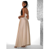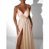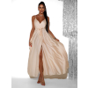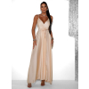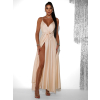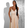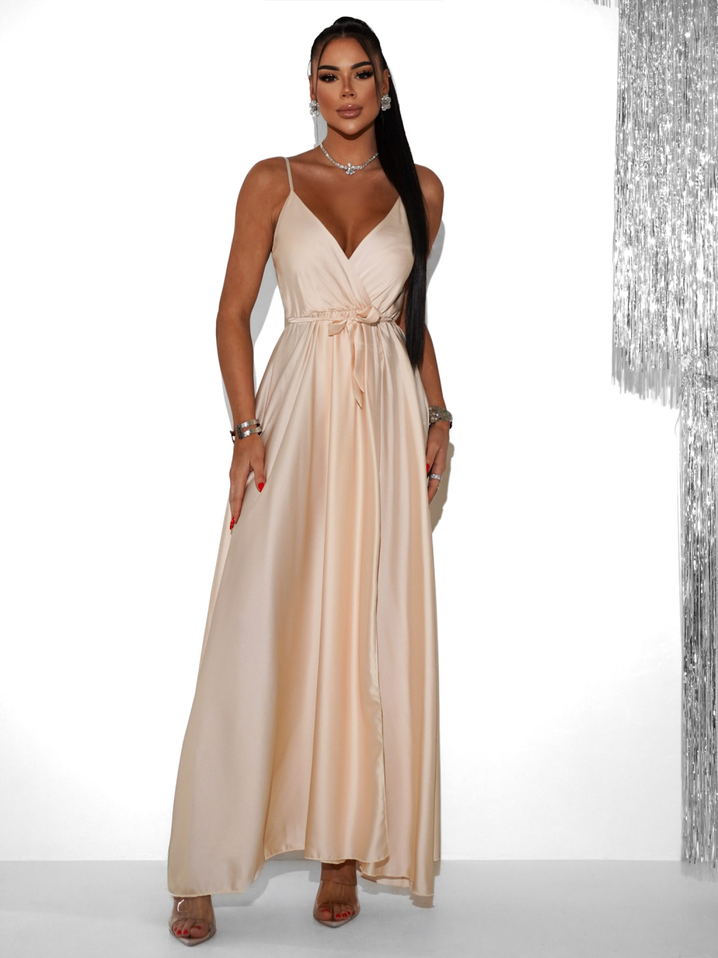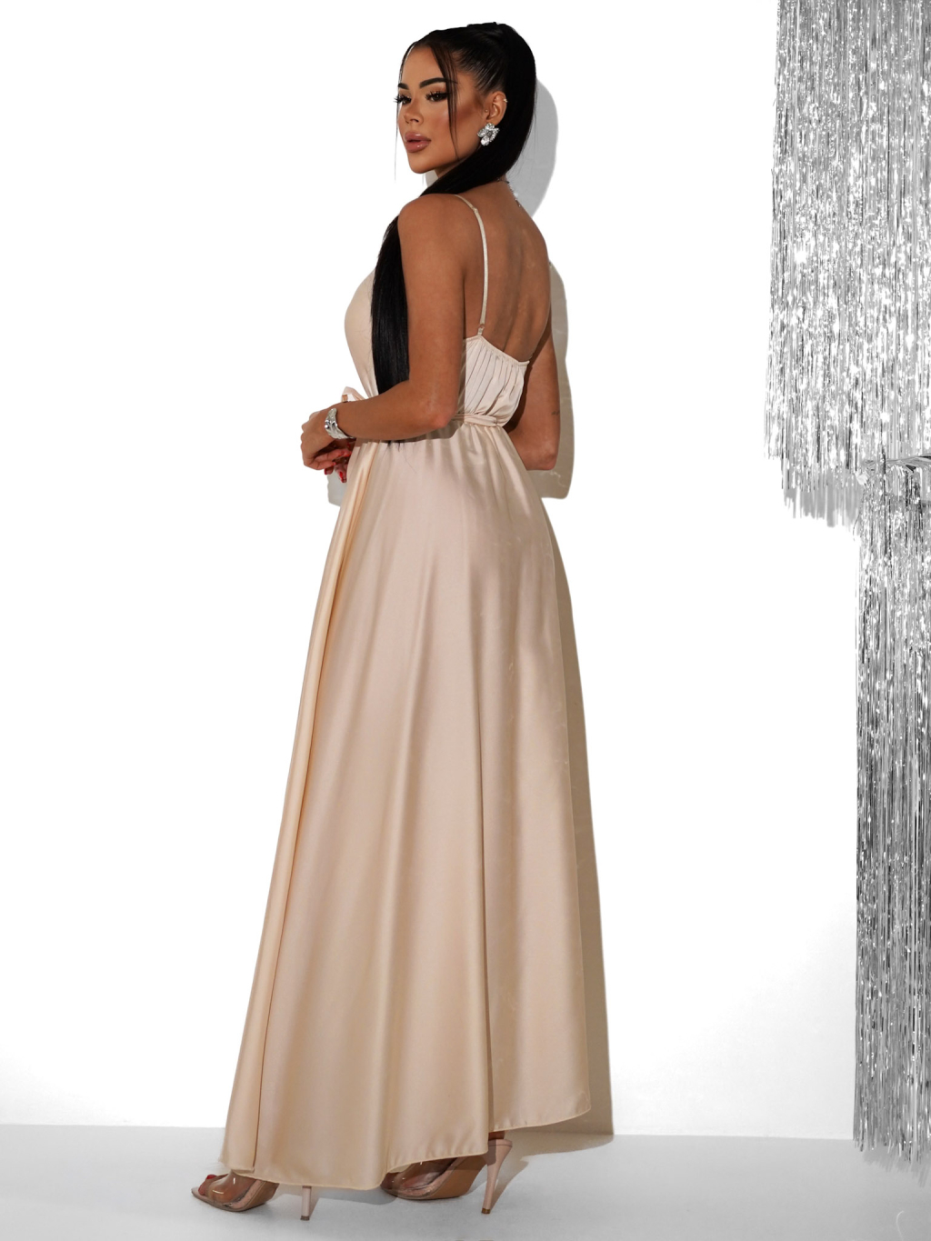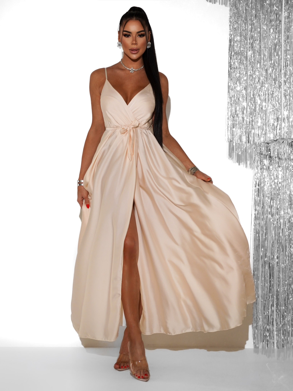 Krémové saténové dlhé šaty FAIRYTALE s výstrihom