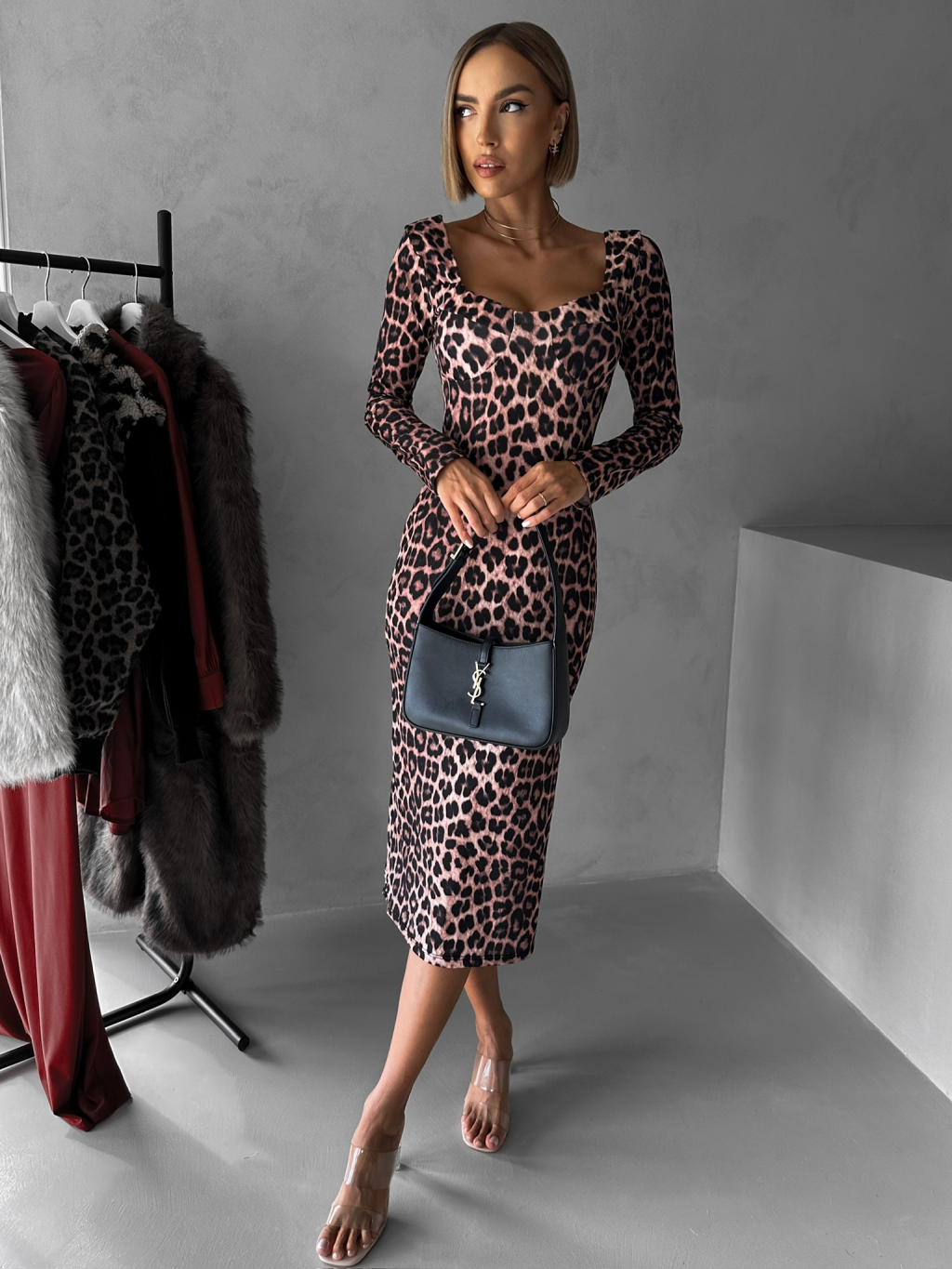 Leopardie vypasované šaty KOTILDA s dlhým rukávom