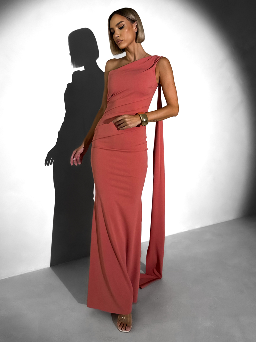 Lososové elegantné dlhé šaty ELANESSE s vlečkou