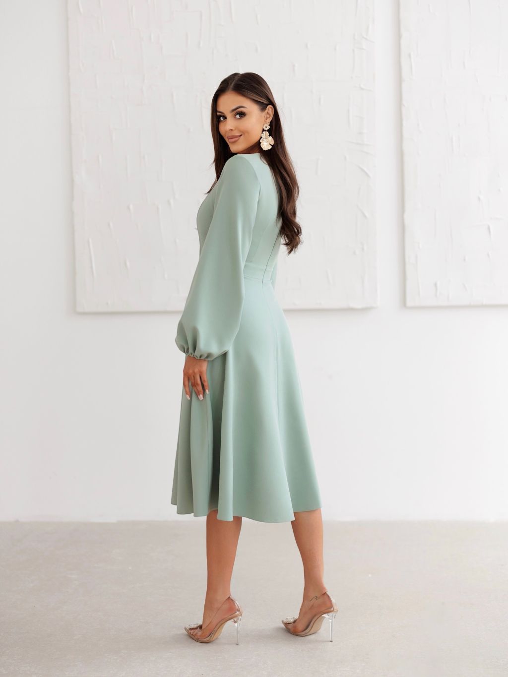 Mintové elegantné midi šaty MARAYA