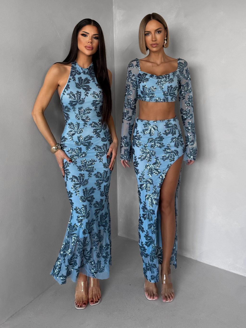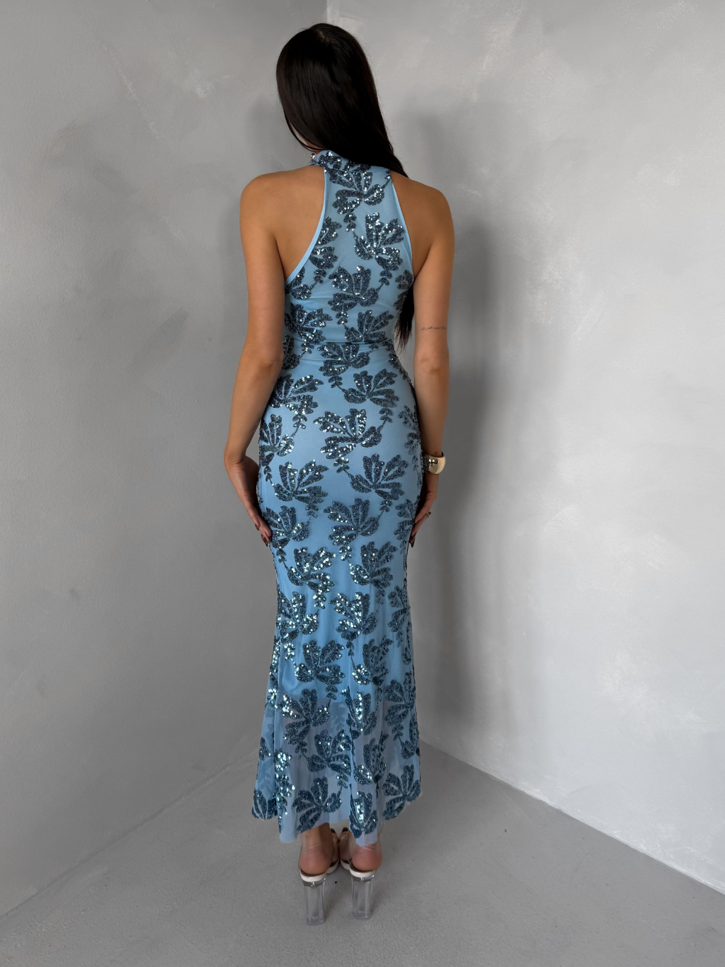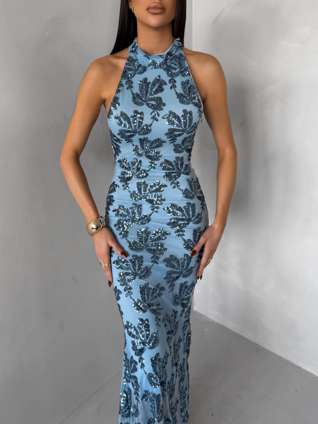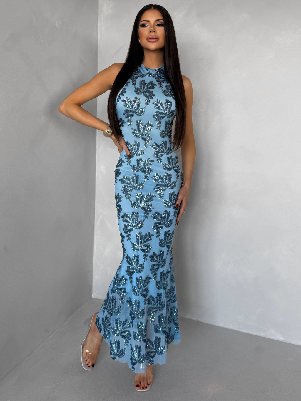 Modré spoločenské dlhé flitrované šaty SOLVAYA