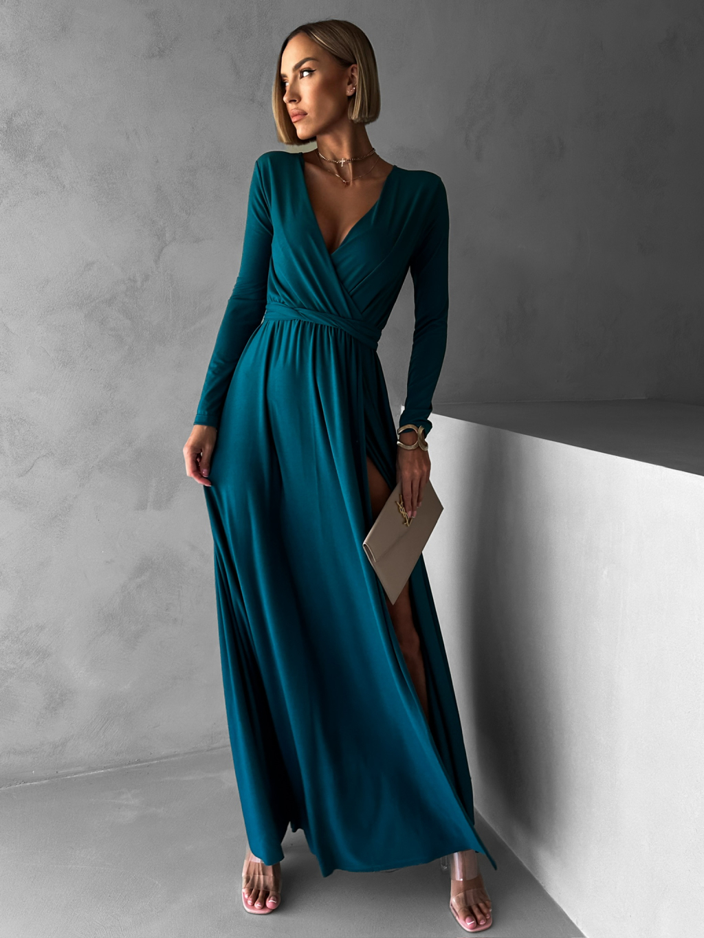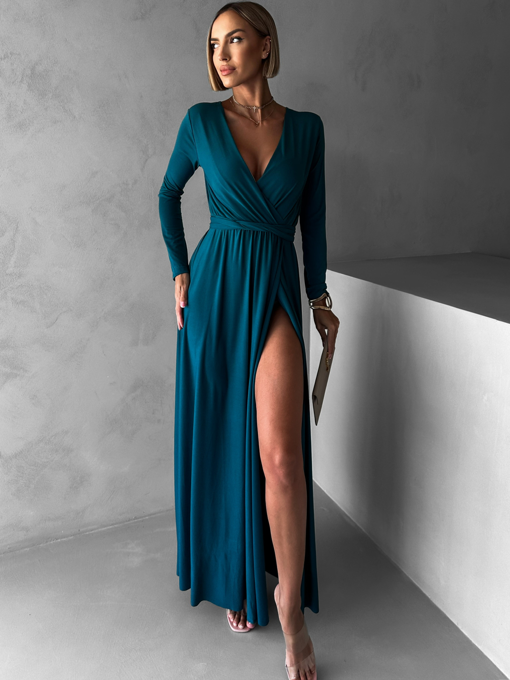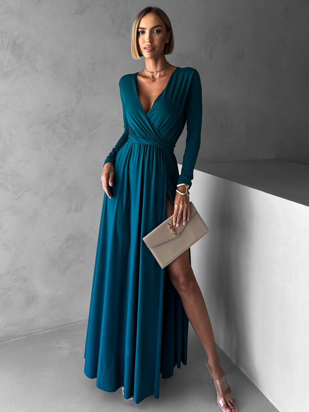 Petrolejové dlhé šaty JOELLIAN s dlhým rukávom