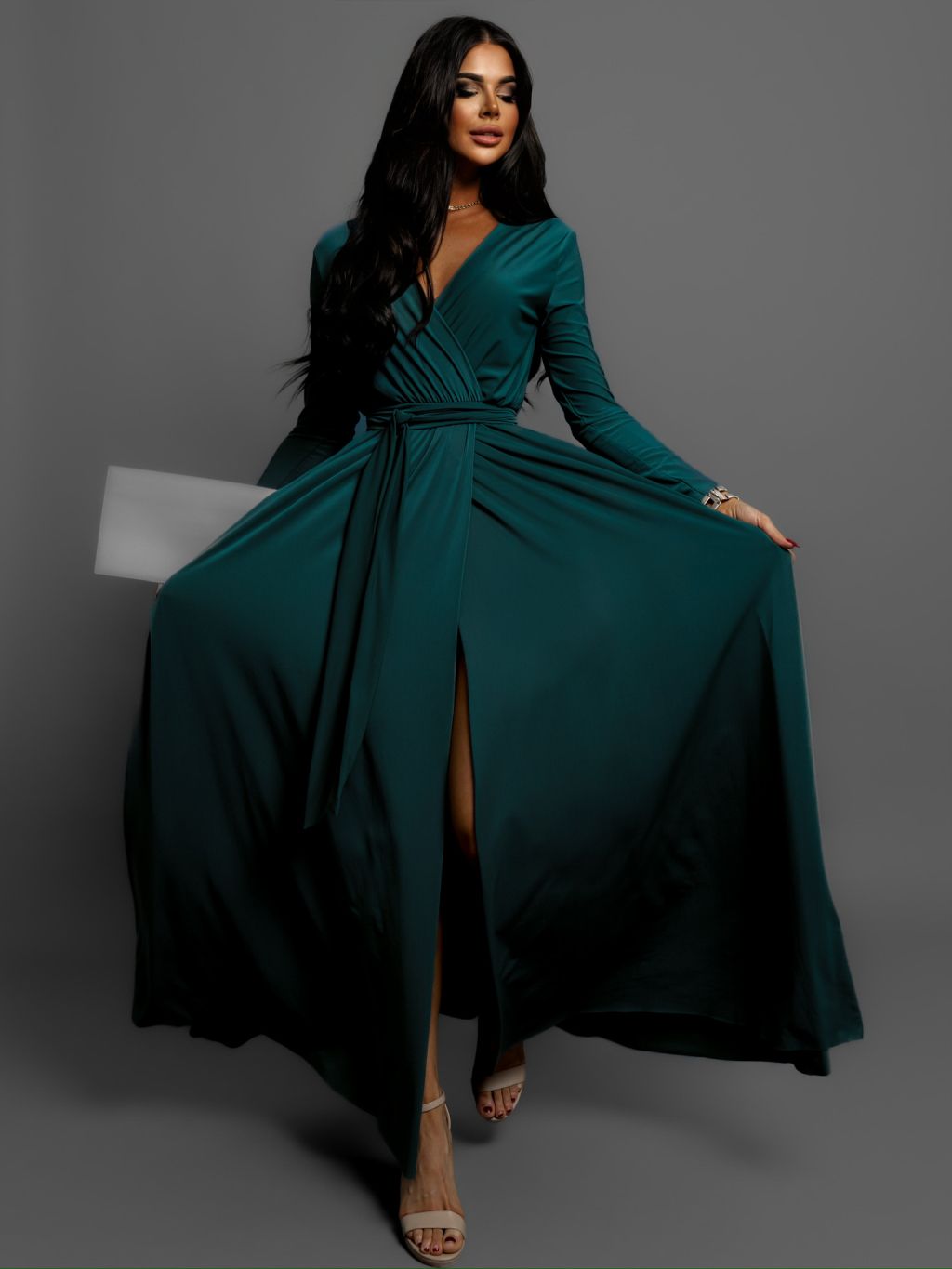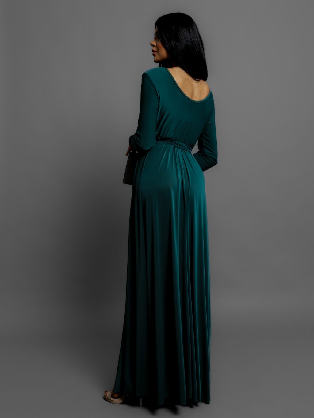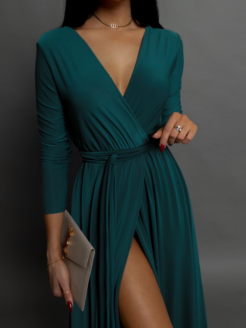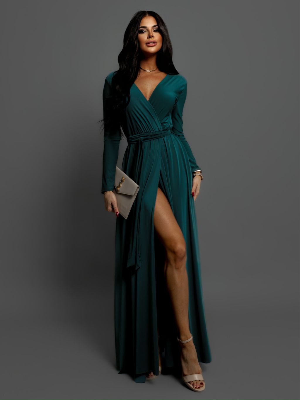 Petrolejové dlhé šaty JOELLIAN s dlhým rukávom