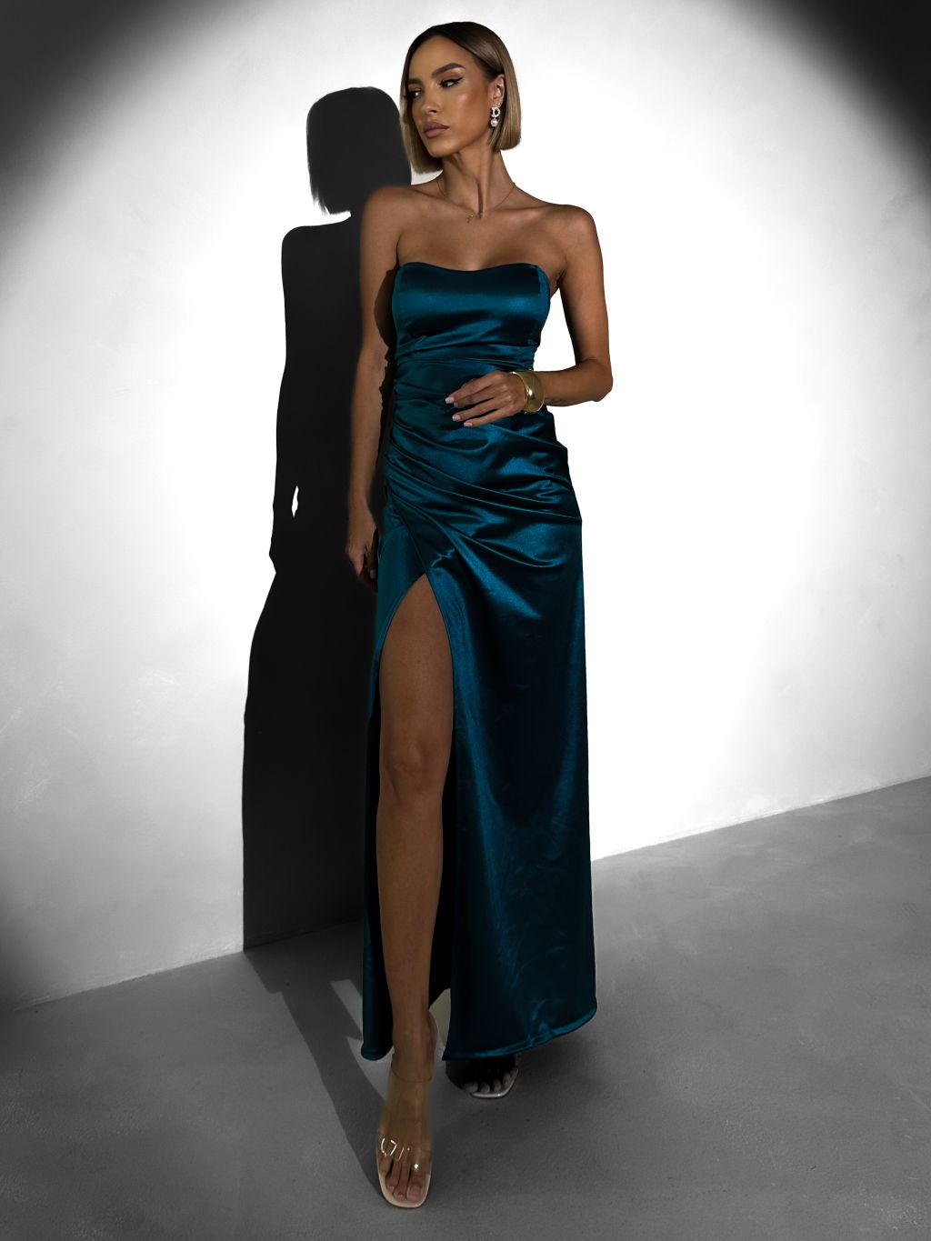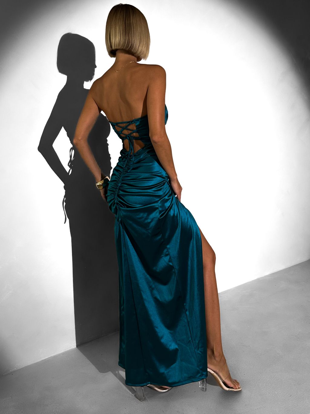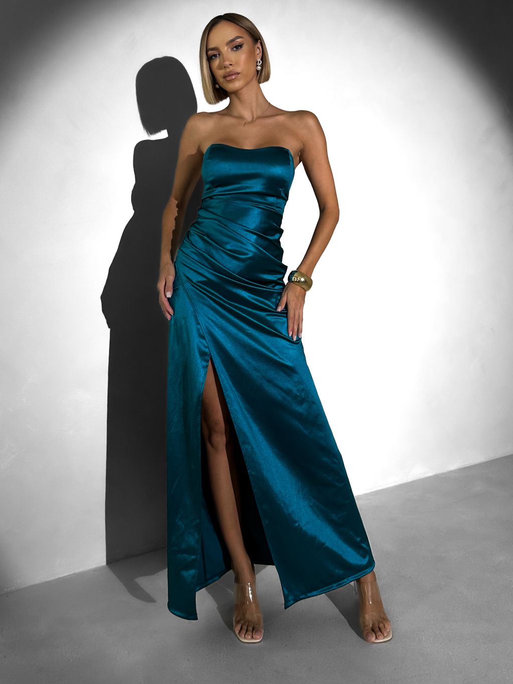 Petrolejové spoločenské korzetové dlhé šaty KARLOT