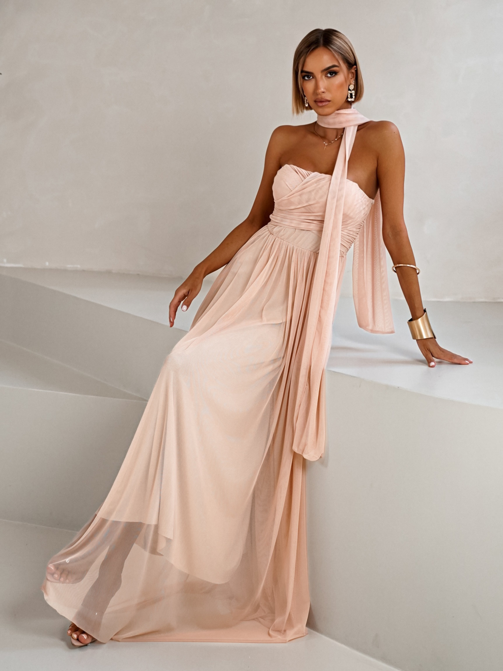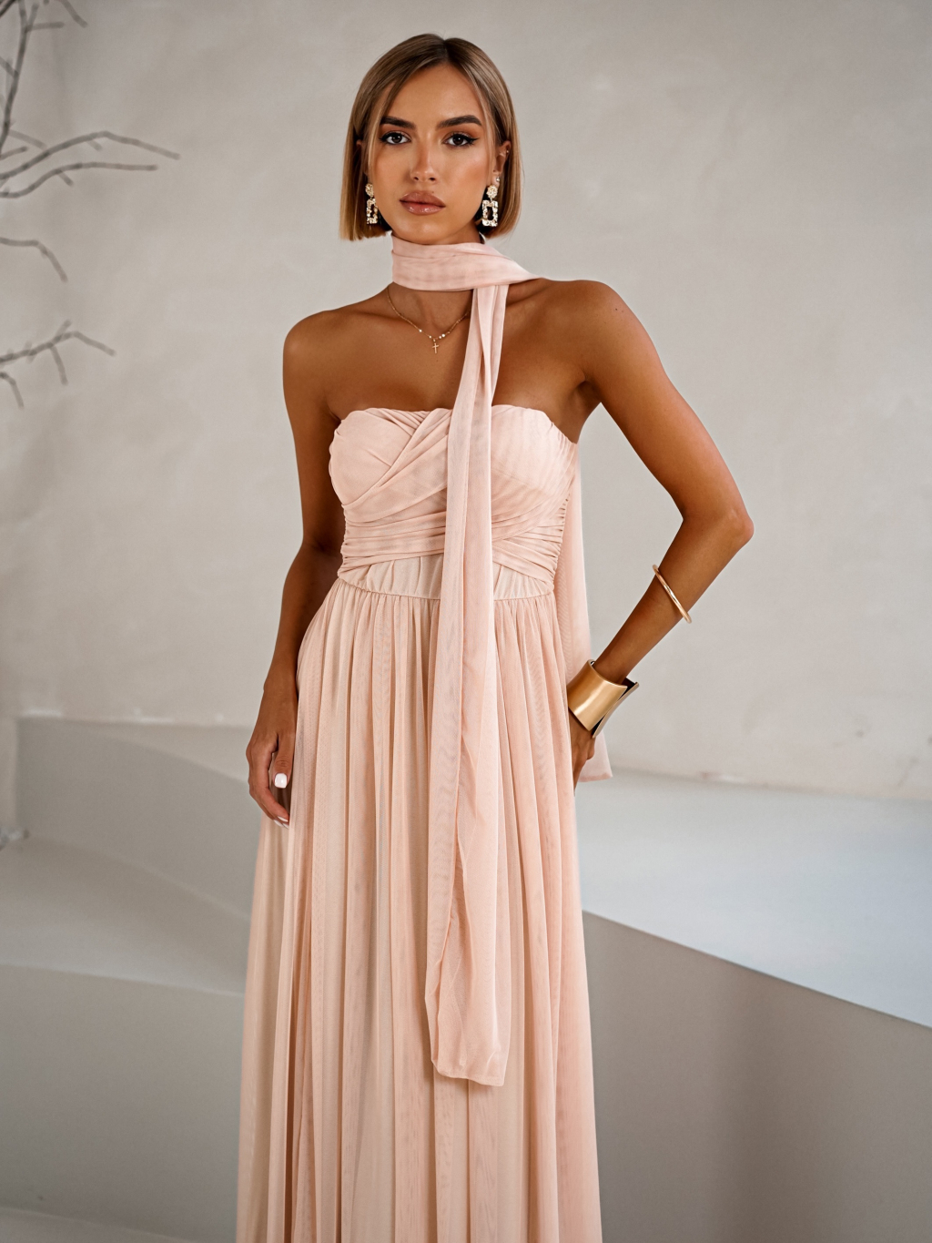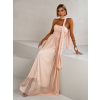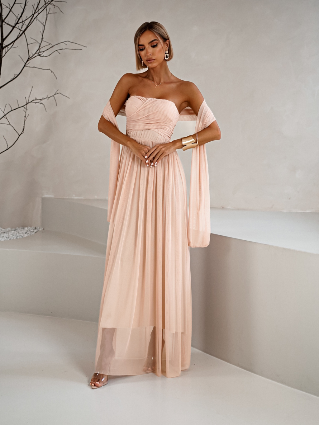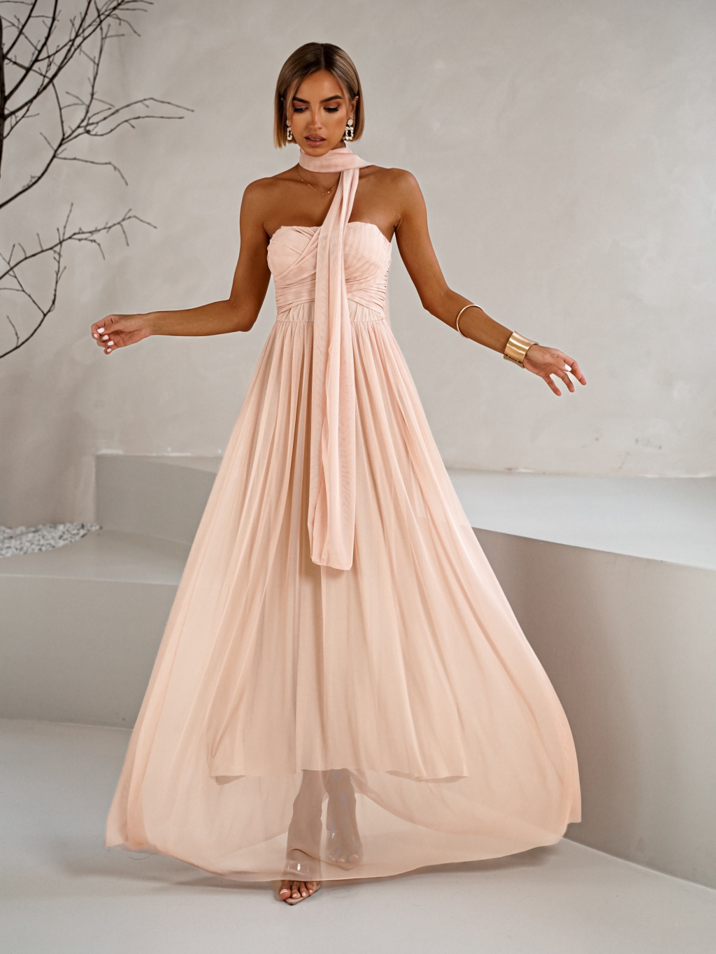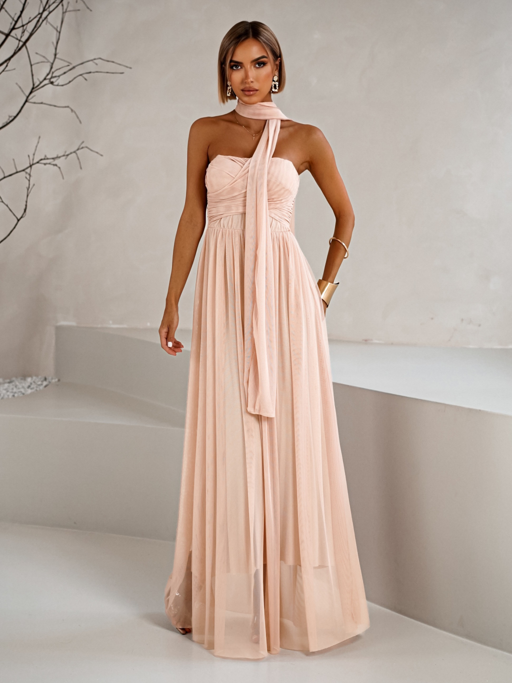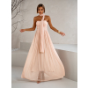Púdrové tylové spoločenské šaty BOLEMIR s vlečkou