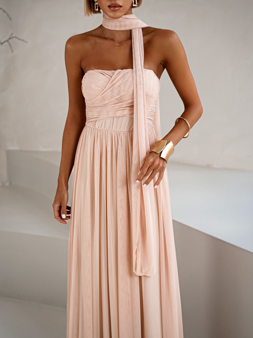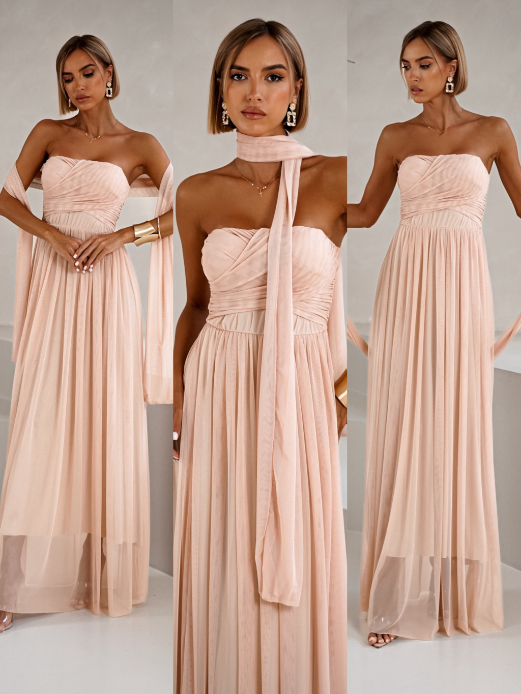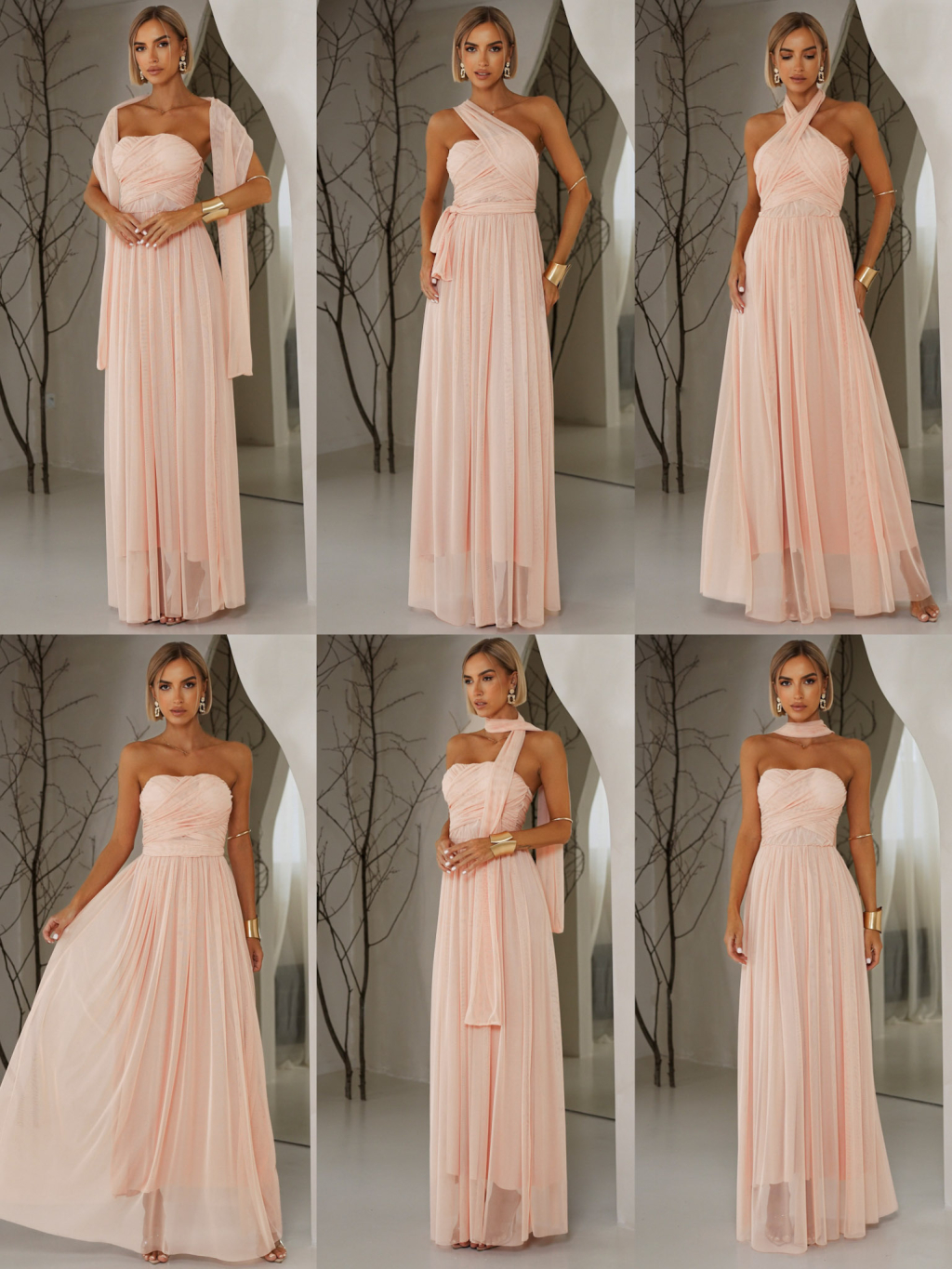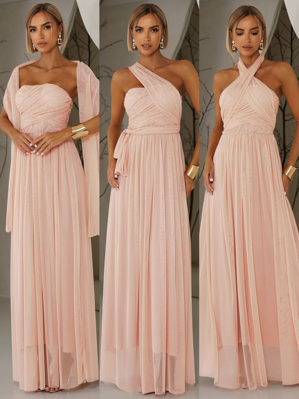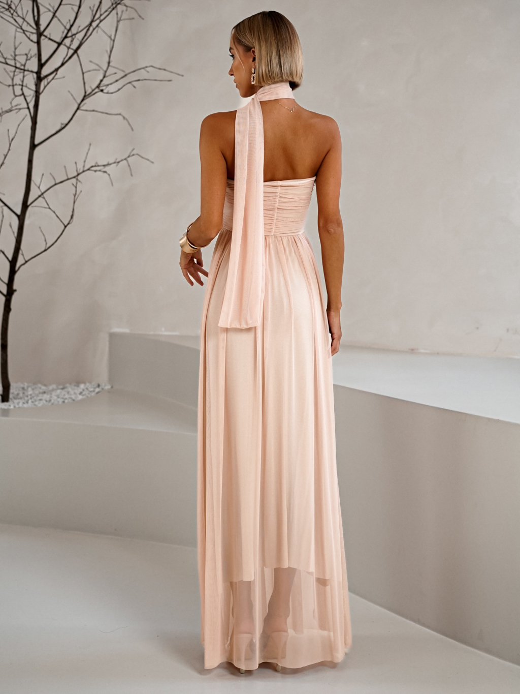 Púdrové tylové spoločenské šaty BOLEMIR s vlečkou