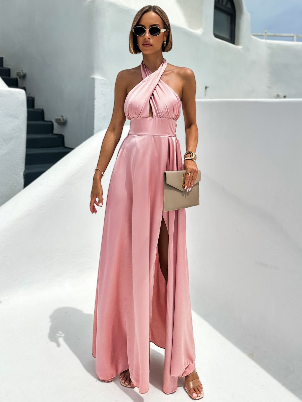Ružové dlhé saténové šaty EMERIK