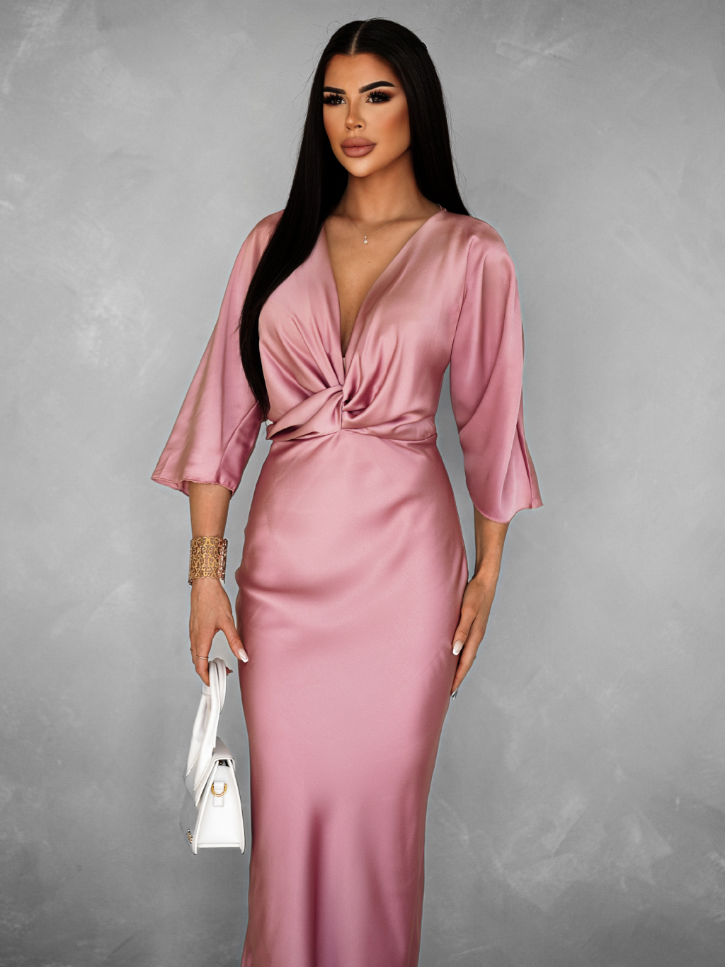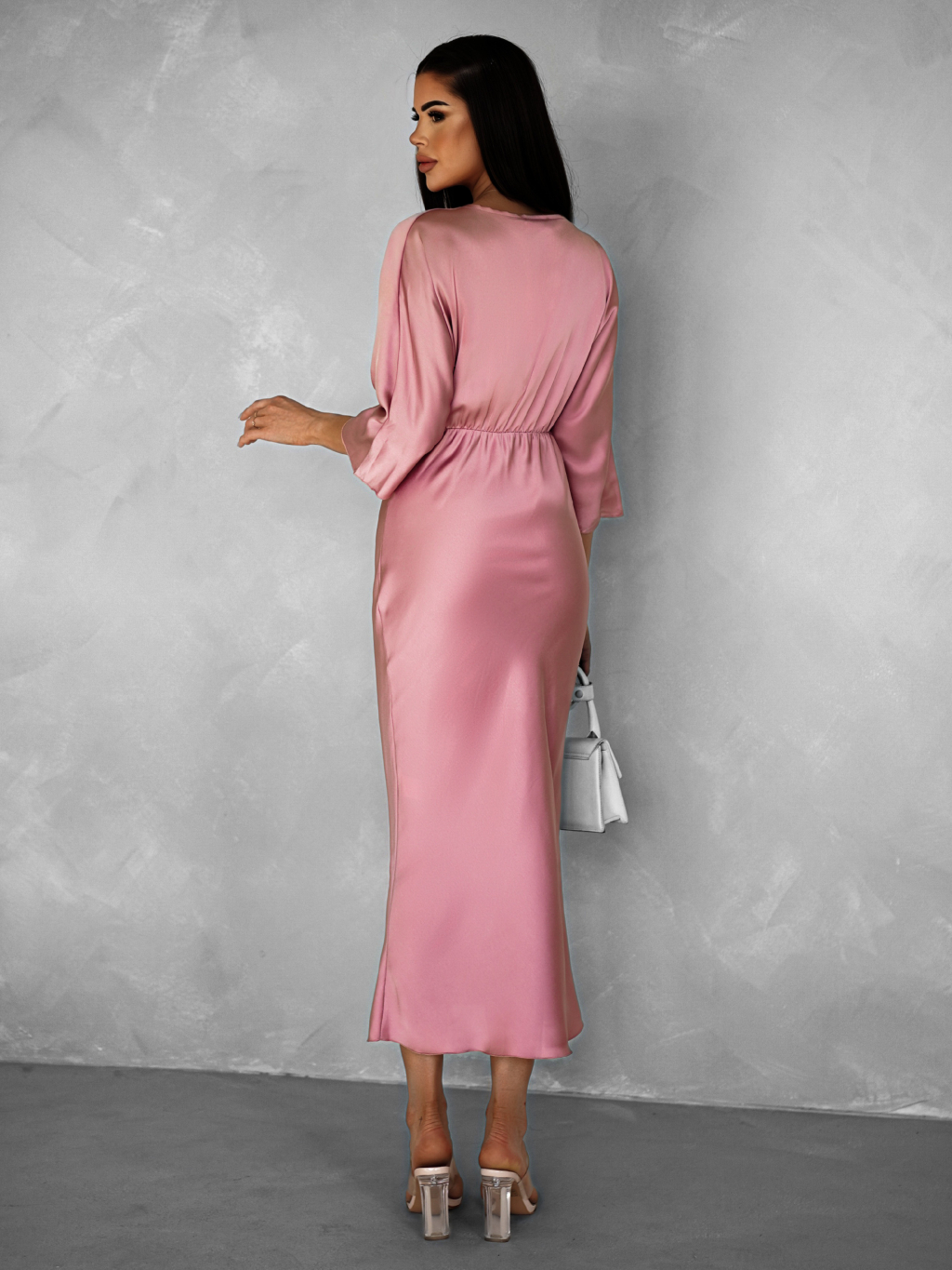 Ružové saténové midi šaty GAVYE s 3/4 rukávom
