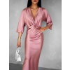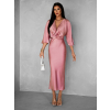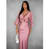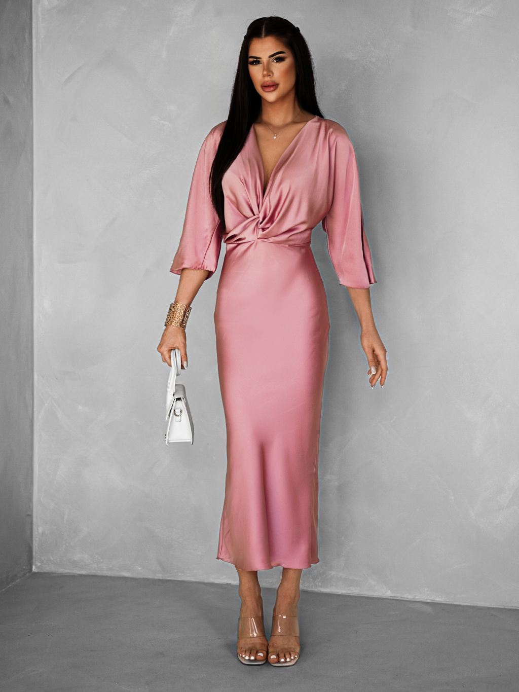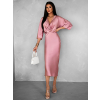 Ružové saténové midi šaty GAVYE s 3/4 rukávom