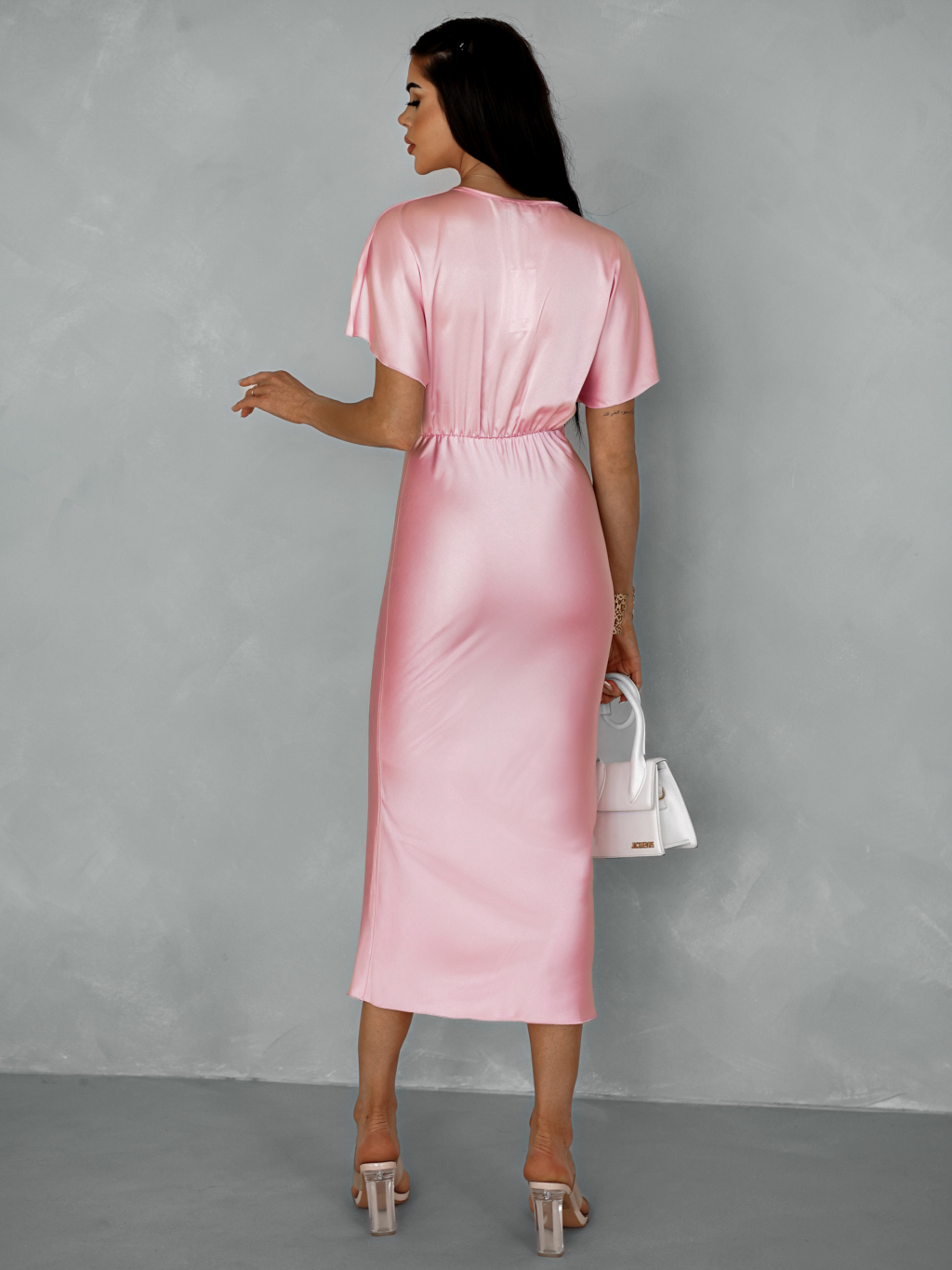 Ružové saténové midi šaty MIRIAM s krátkym rukávom