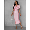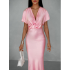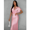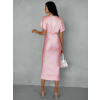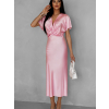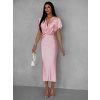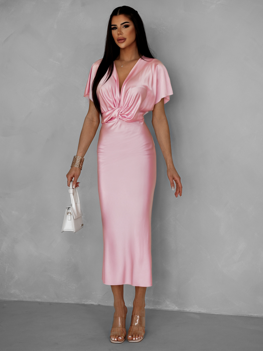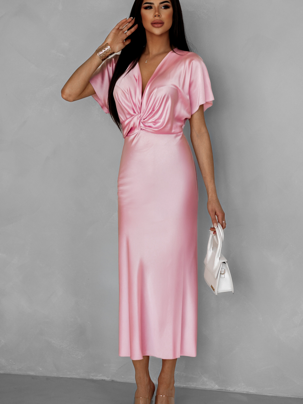 Ružové saténové midi šaty MIRIAM s krátkym rukávom