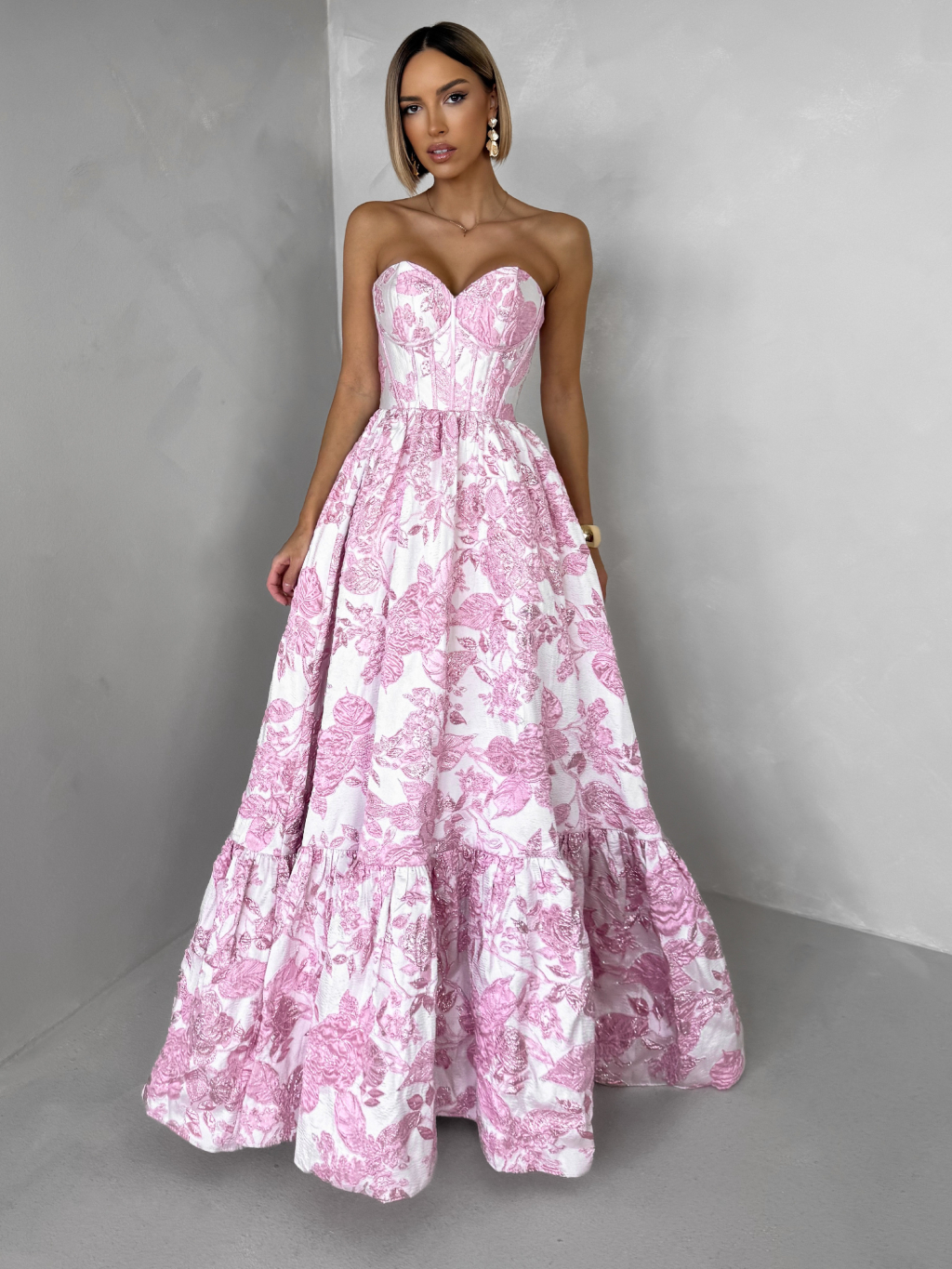 Ružové spoločenské dlhé šaty VENOLIA s kvetinovým vzorom