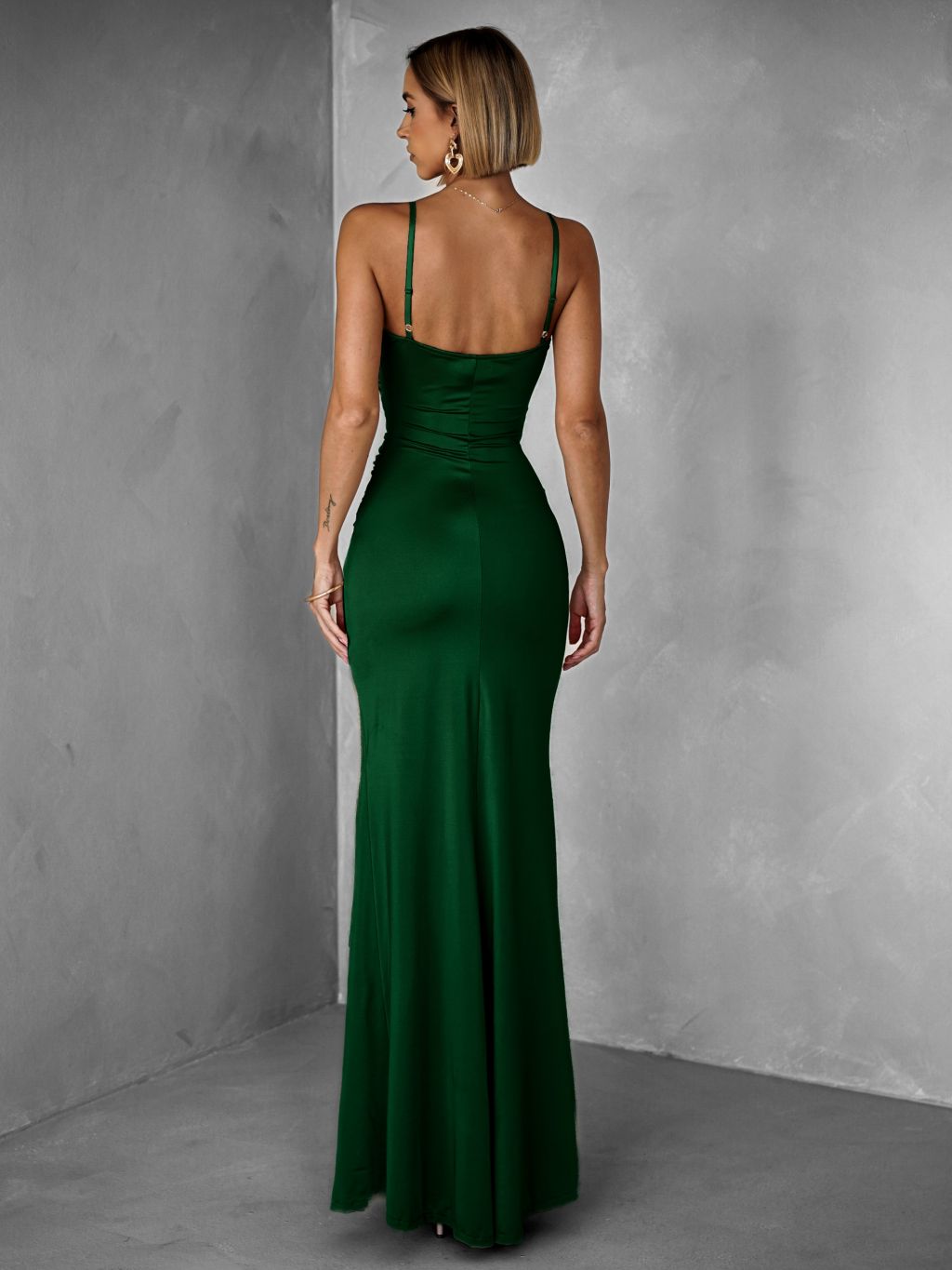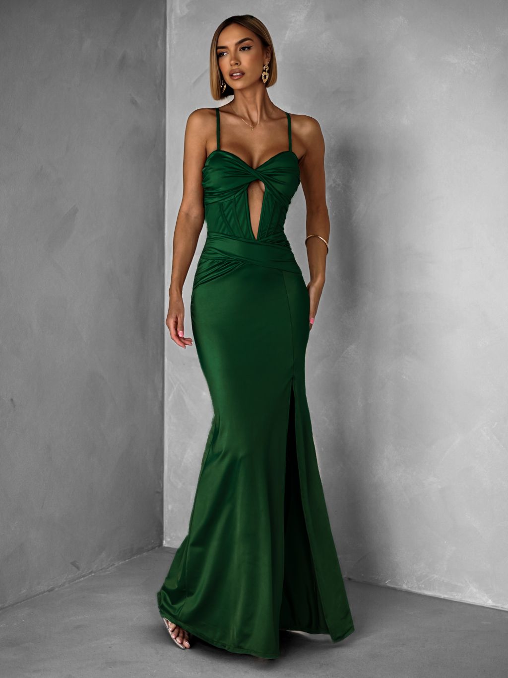 Smaragdové dlhé spoločenské šaty LIMONA s prestrihmi