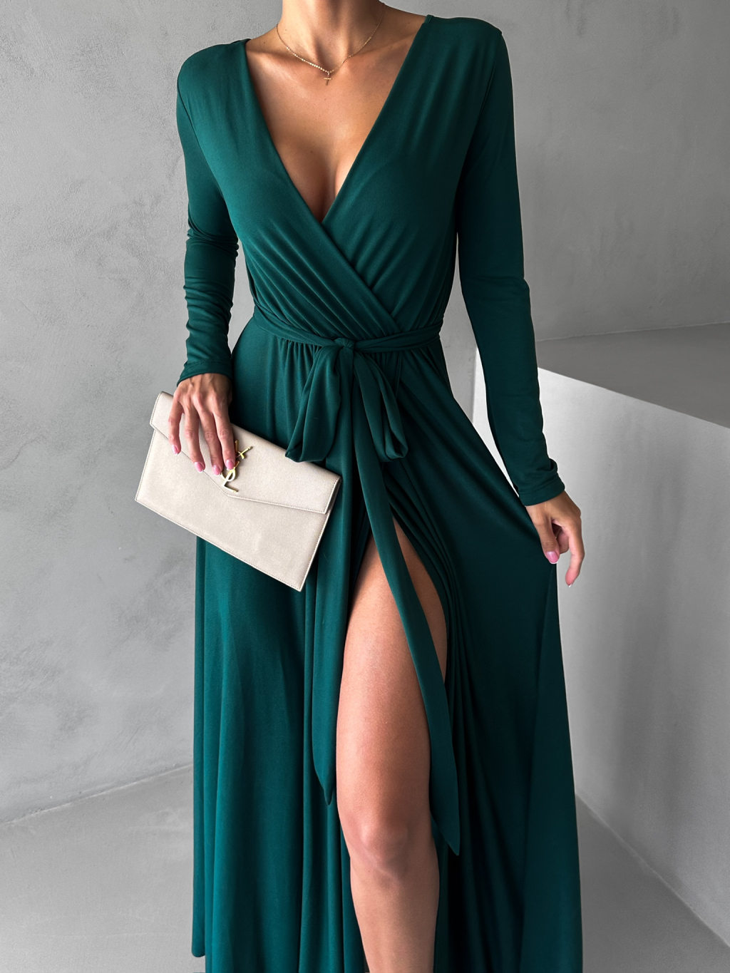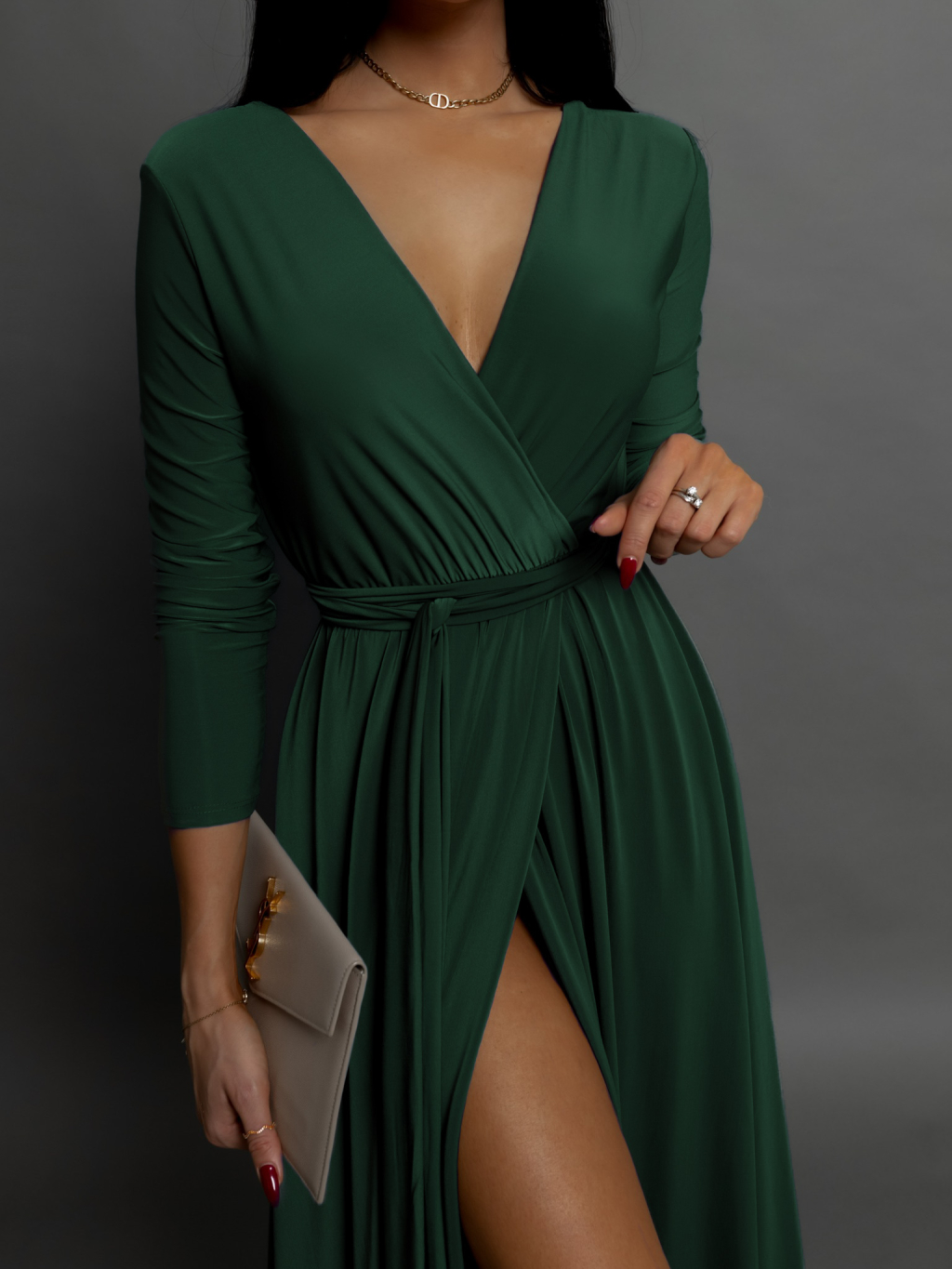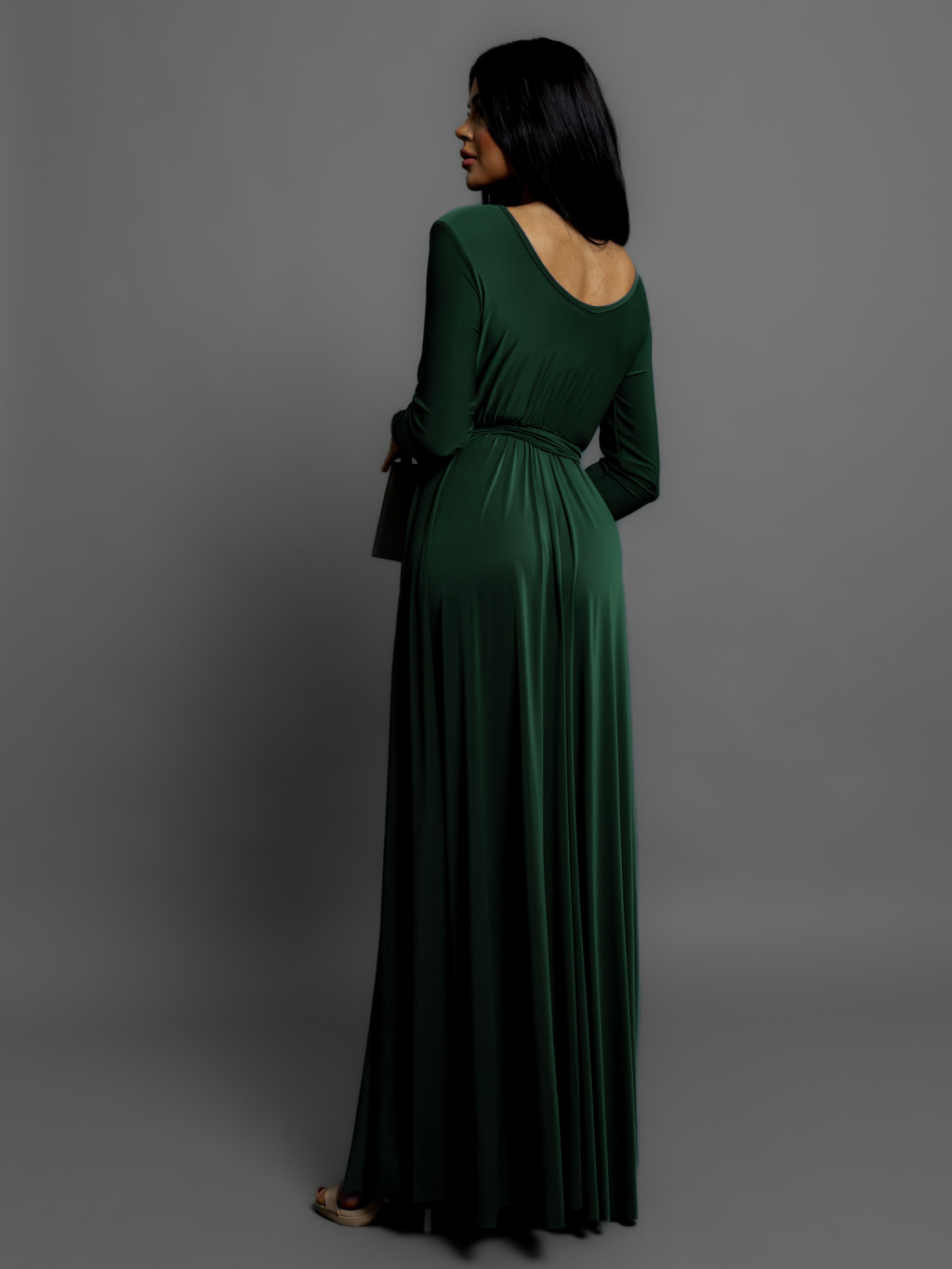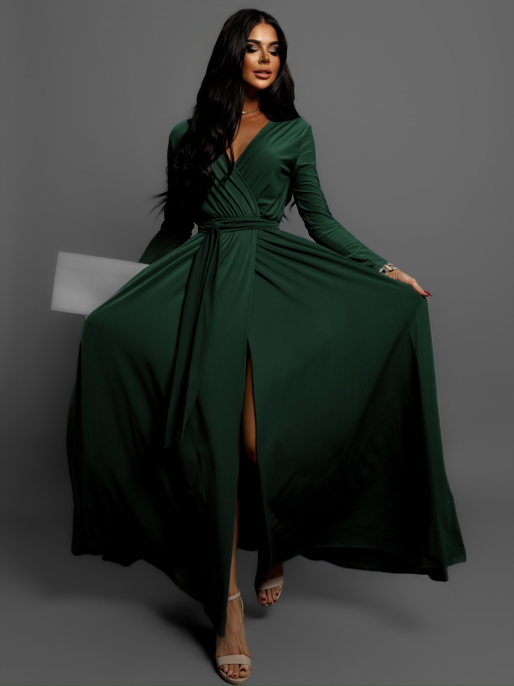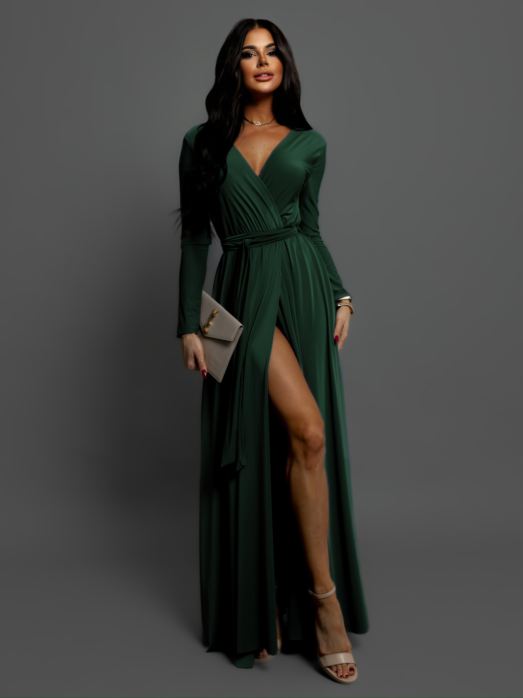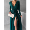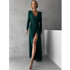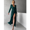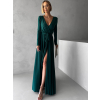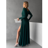 Smaragdové dlhé večerné šaty JOELLIAN s dlhým rukávom