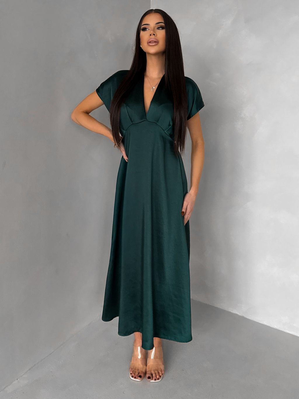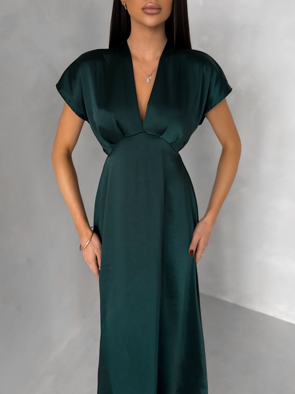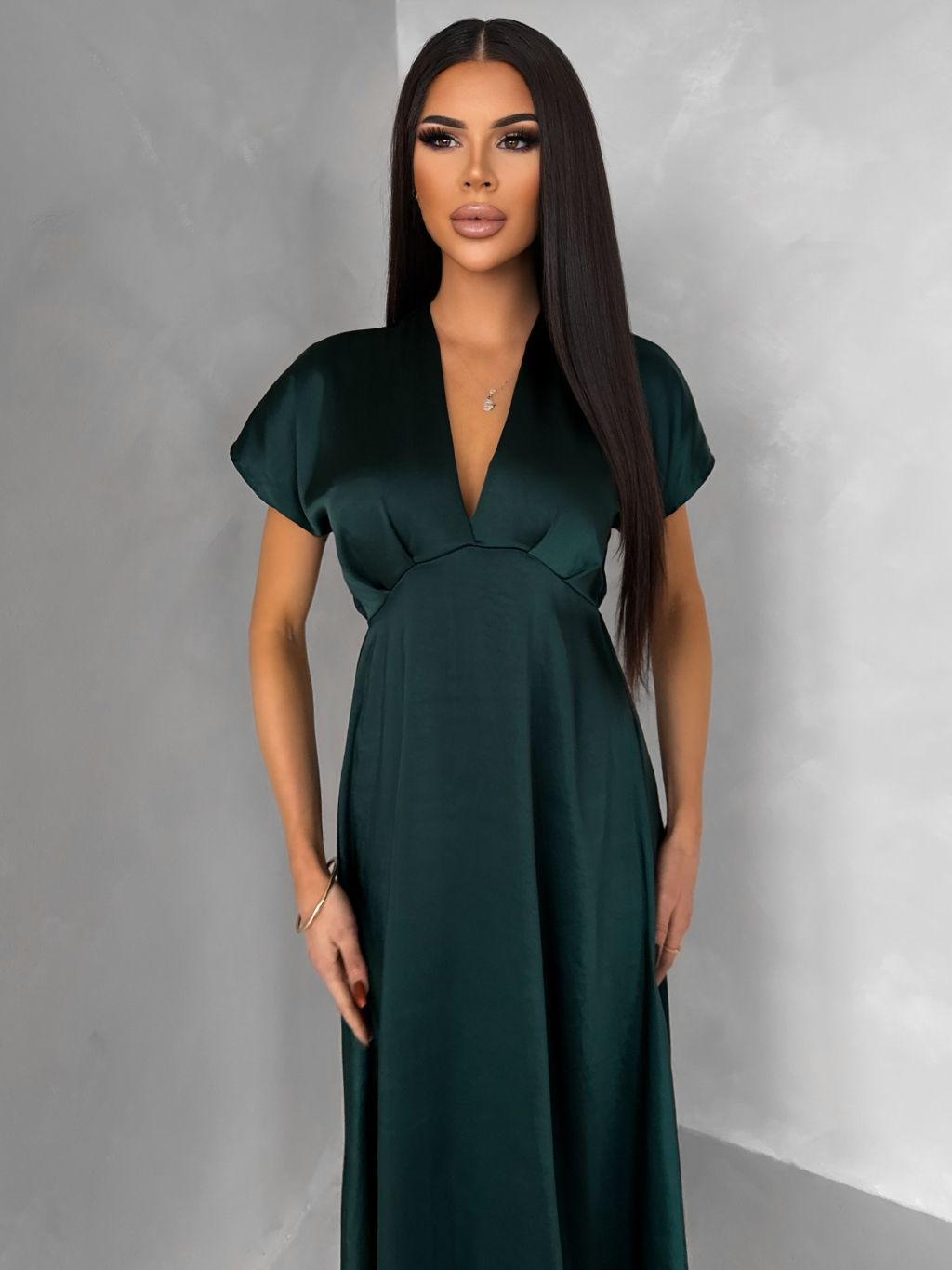 Smaragdové elegantné jednoduché midi šaty OMNIS