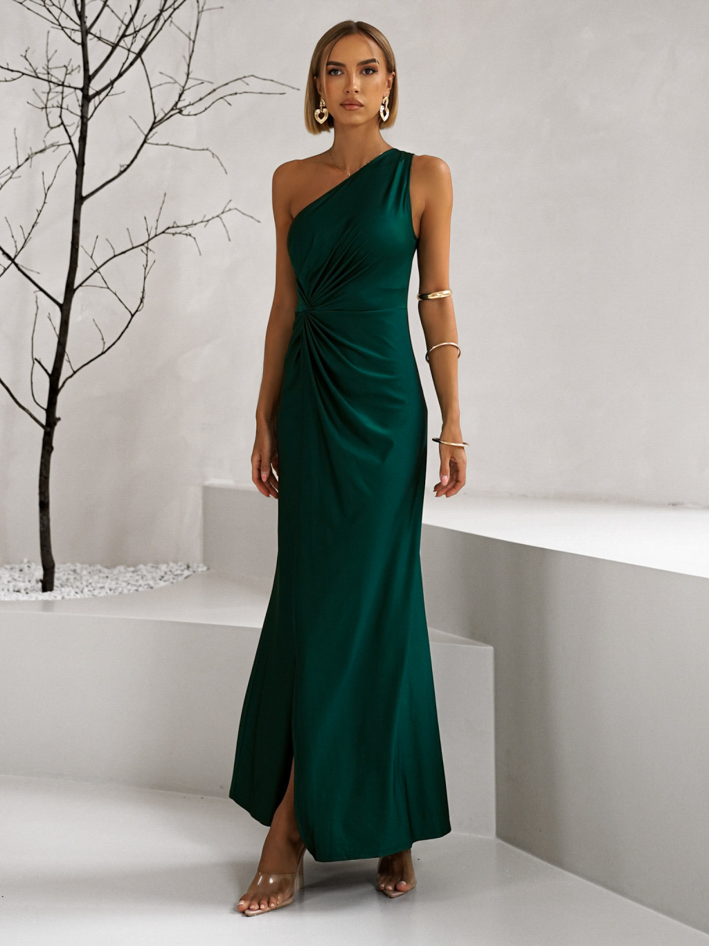Smaragdové elegantné šaty FIAMMAR na jedno rameno