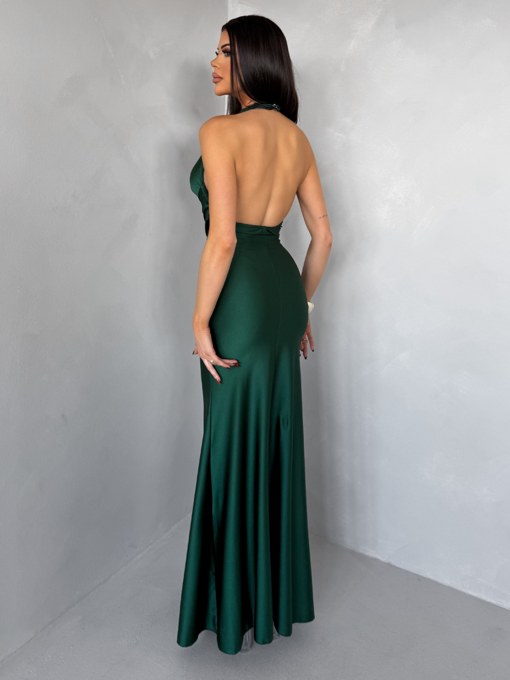 Smaragdové saténové dlhé spoločenské šaty CELESTIA s vlečkou