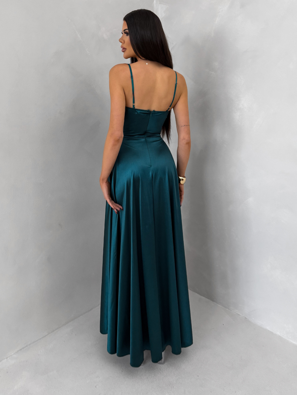 Smaragdové saténové dlhé spoločenské šaty LUNOREX