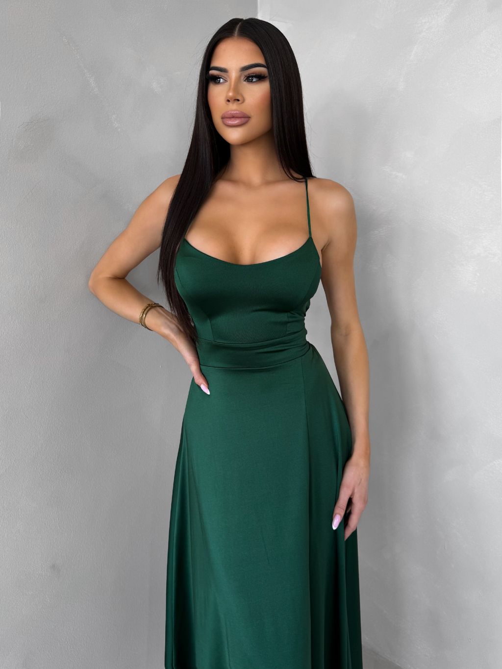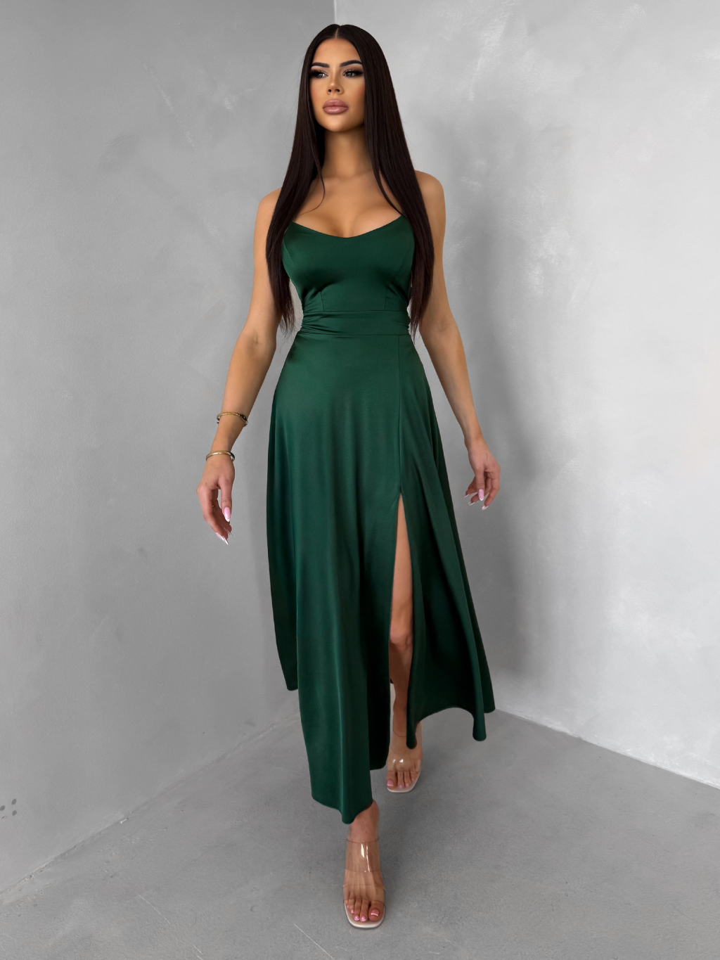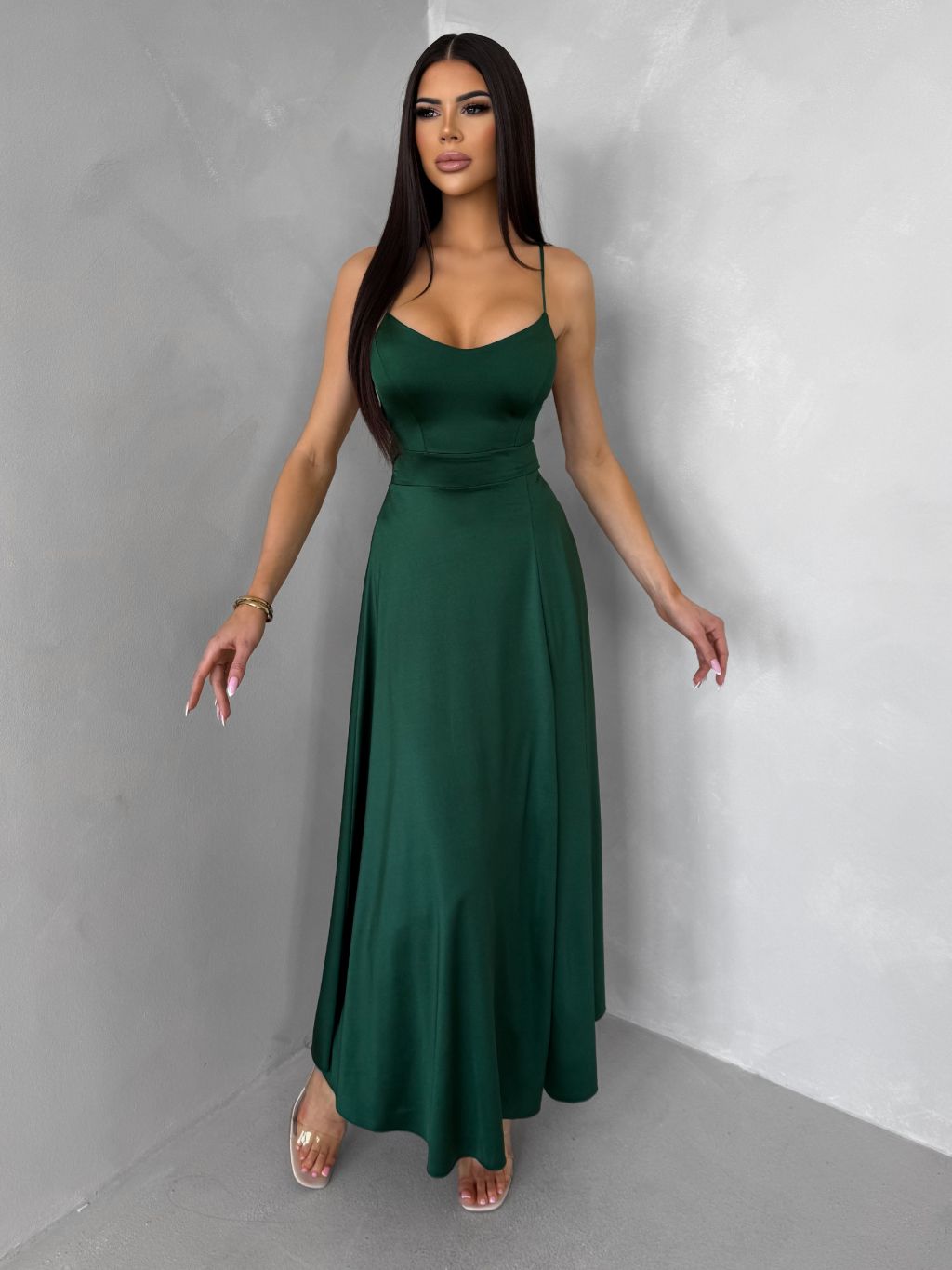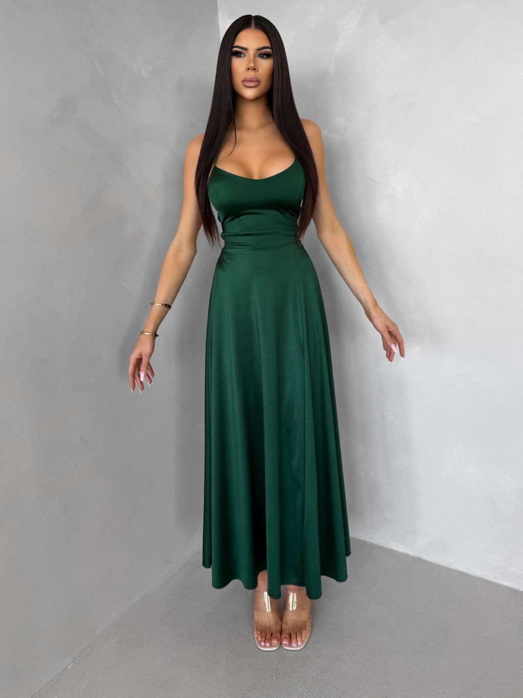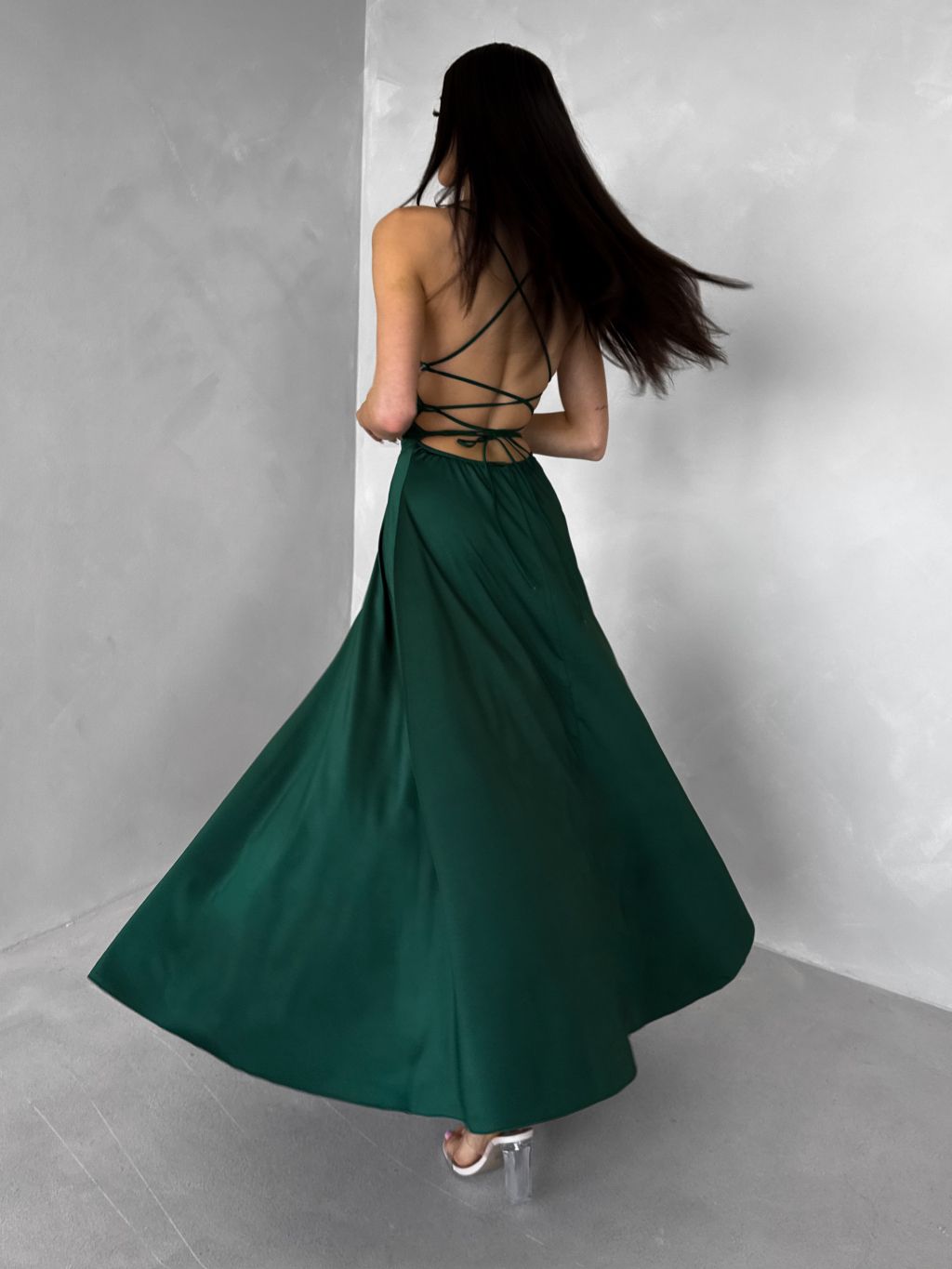 Smaragdové saténové elegantné midi šaty SIMUEL so šnurovaním
