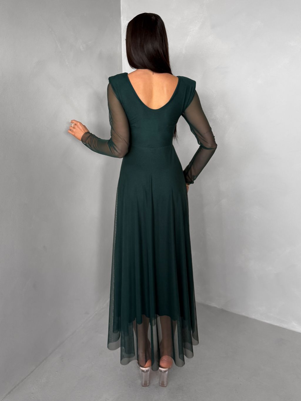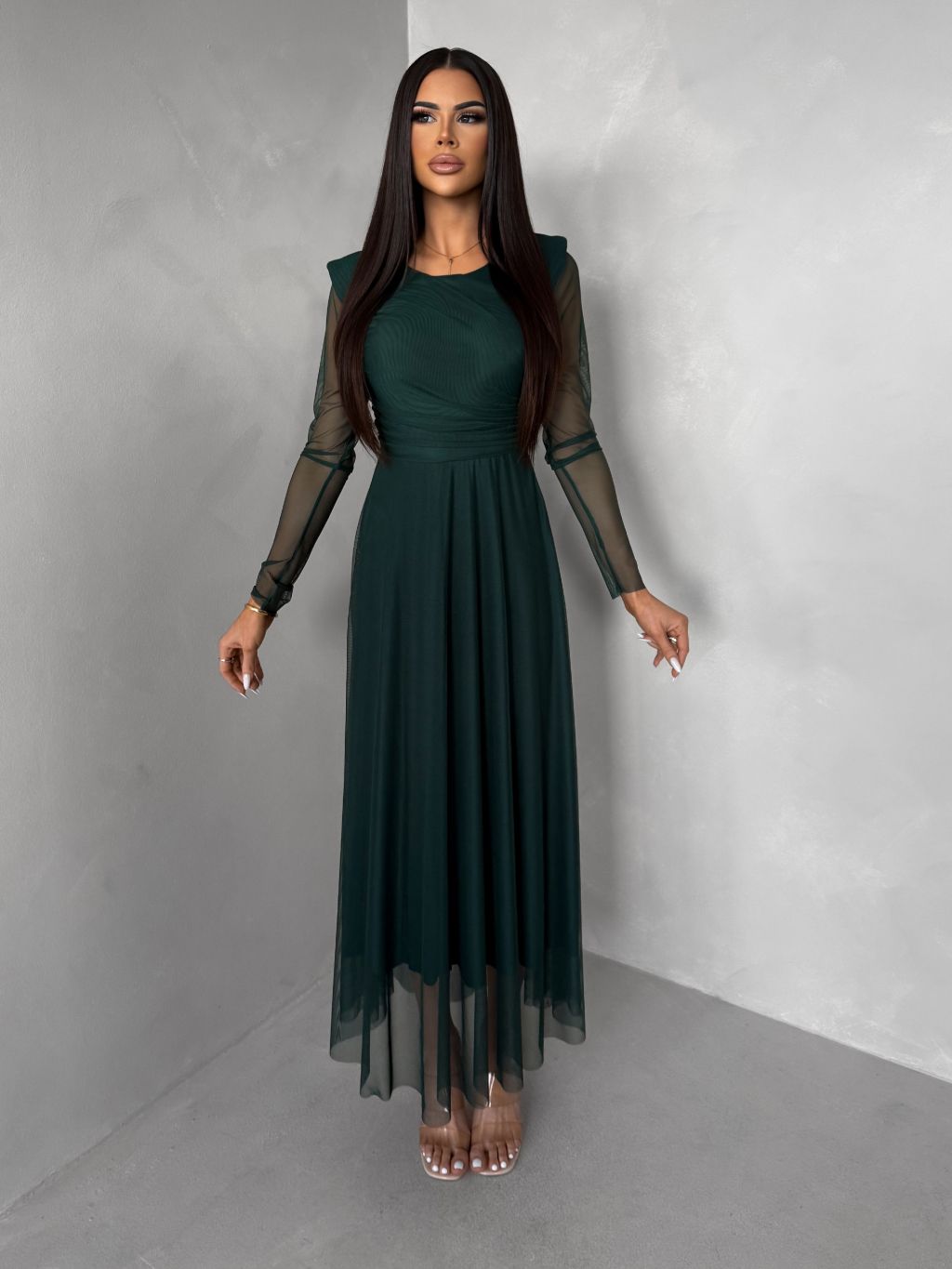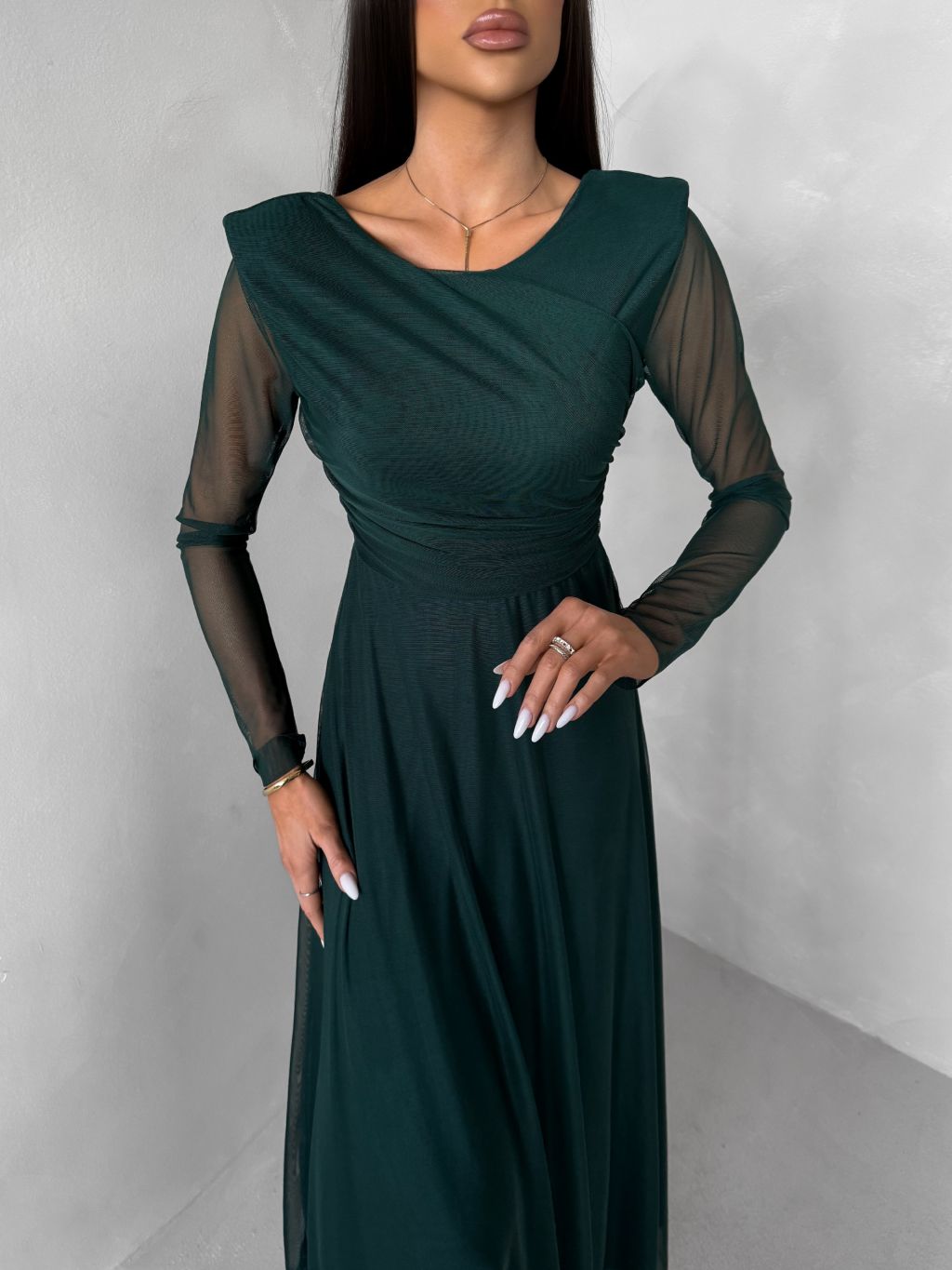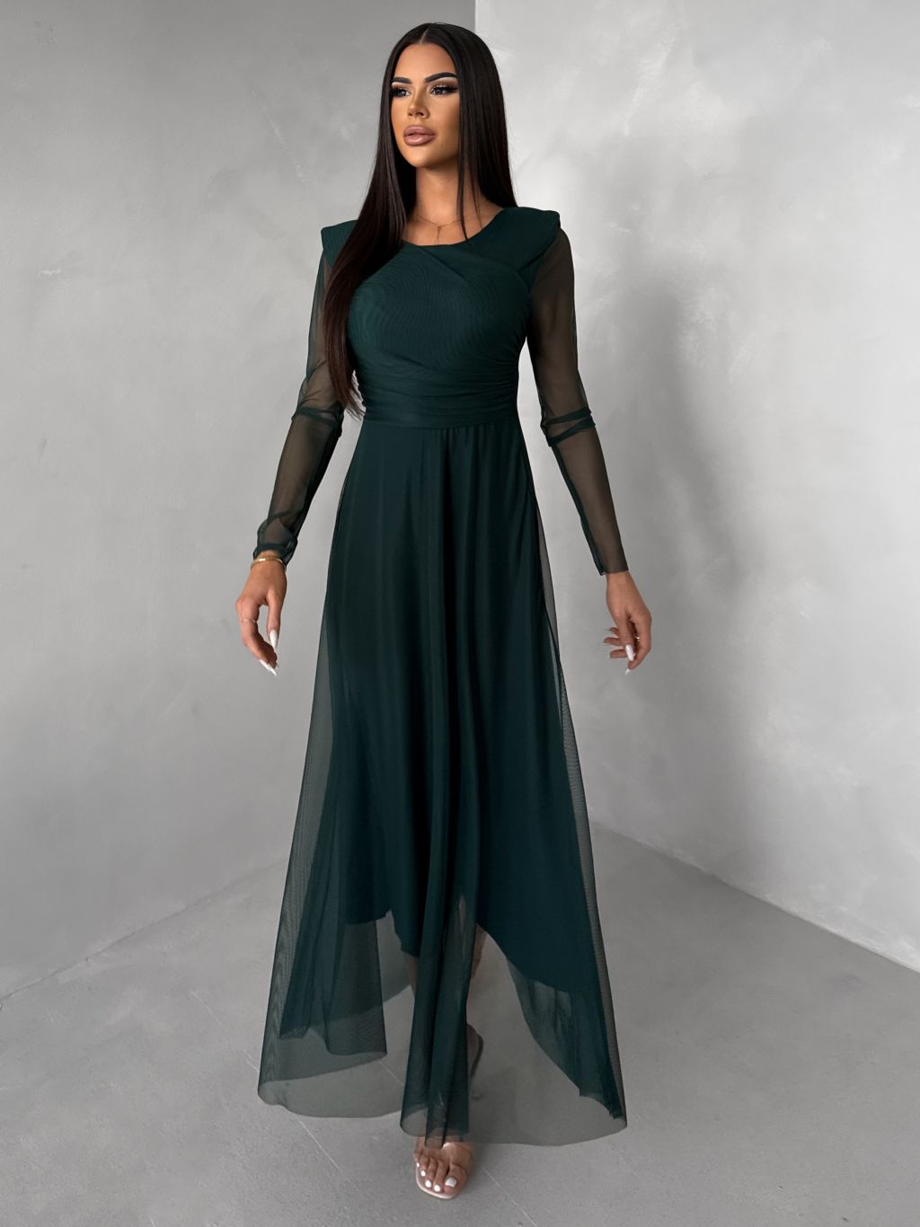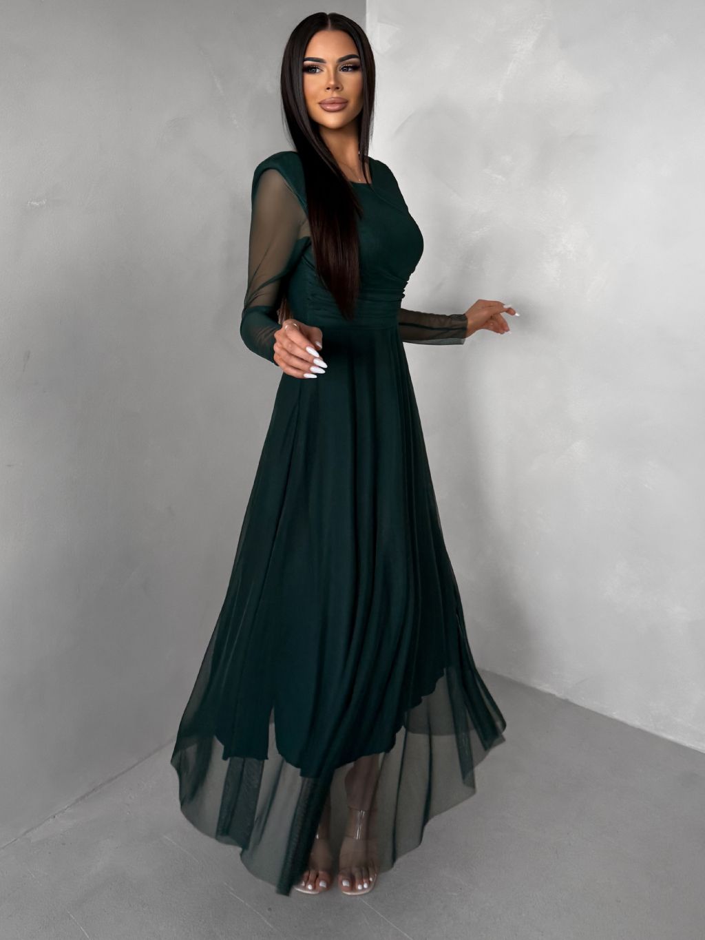 Smaragdové tylové spoločenské šaty ASHER s dlhým rukávom