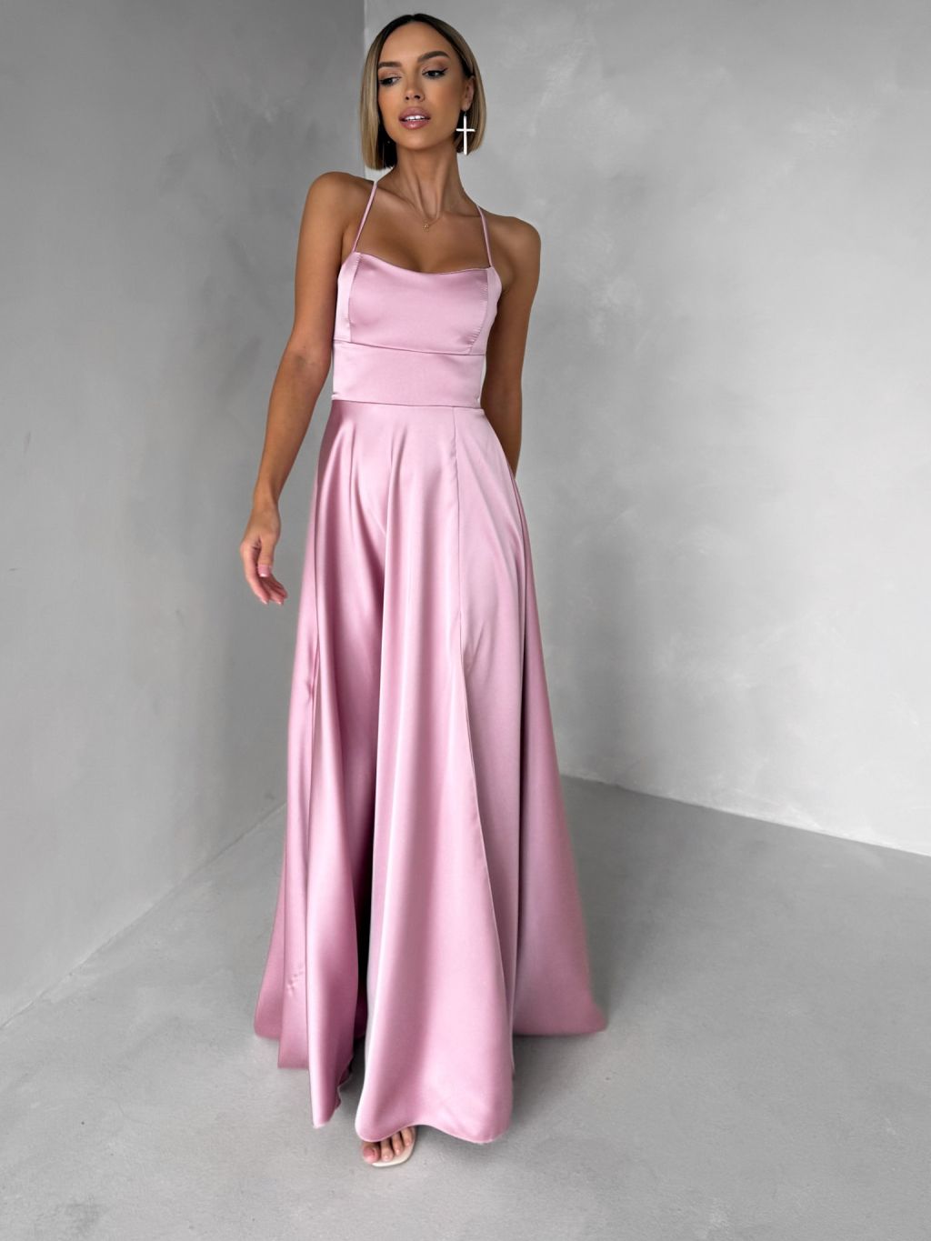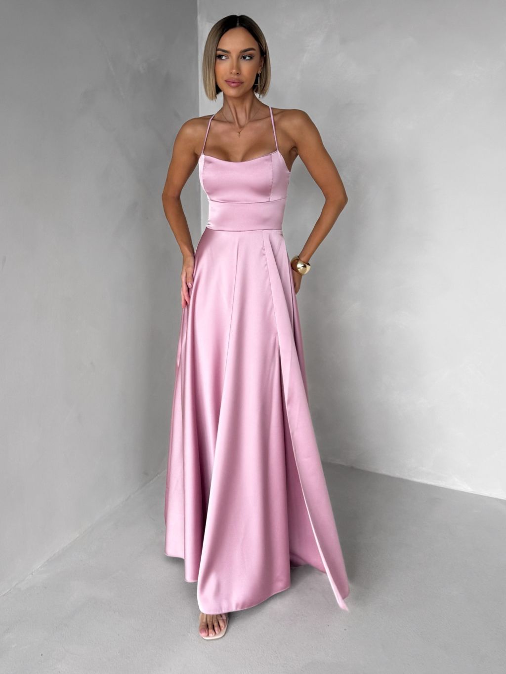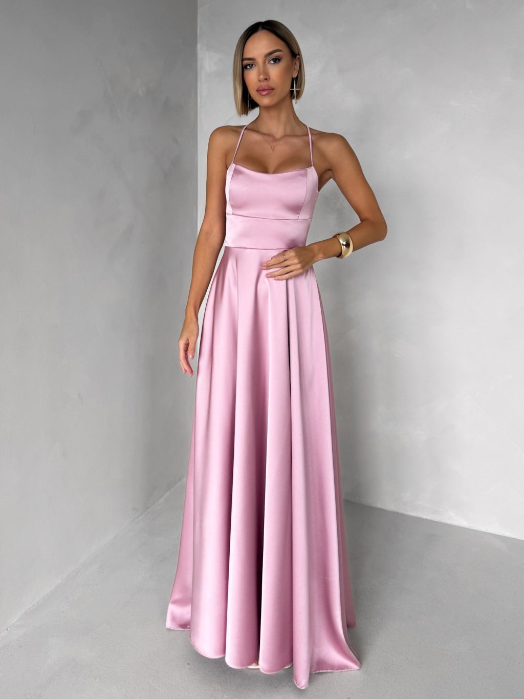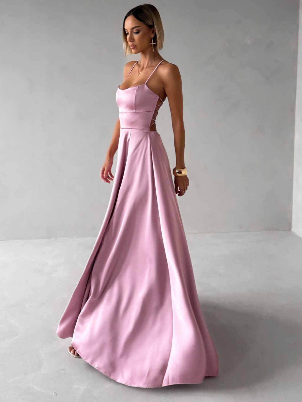 Staroružové dlhé plesové šaty CELLINES so šnurovaním