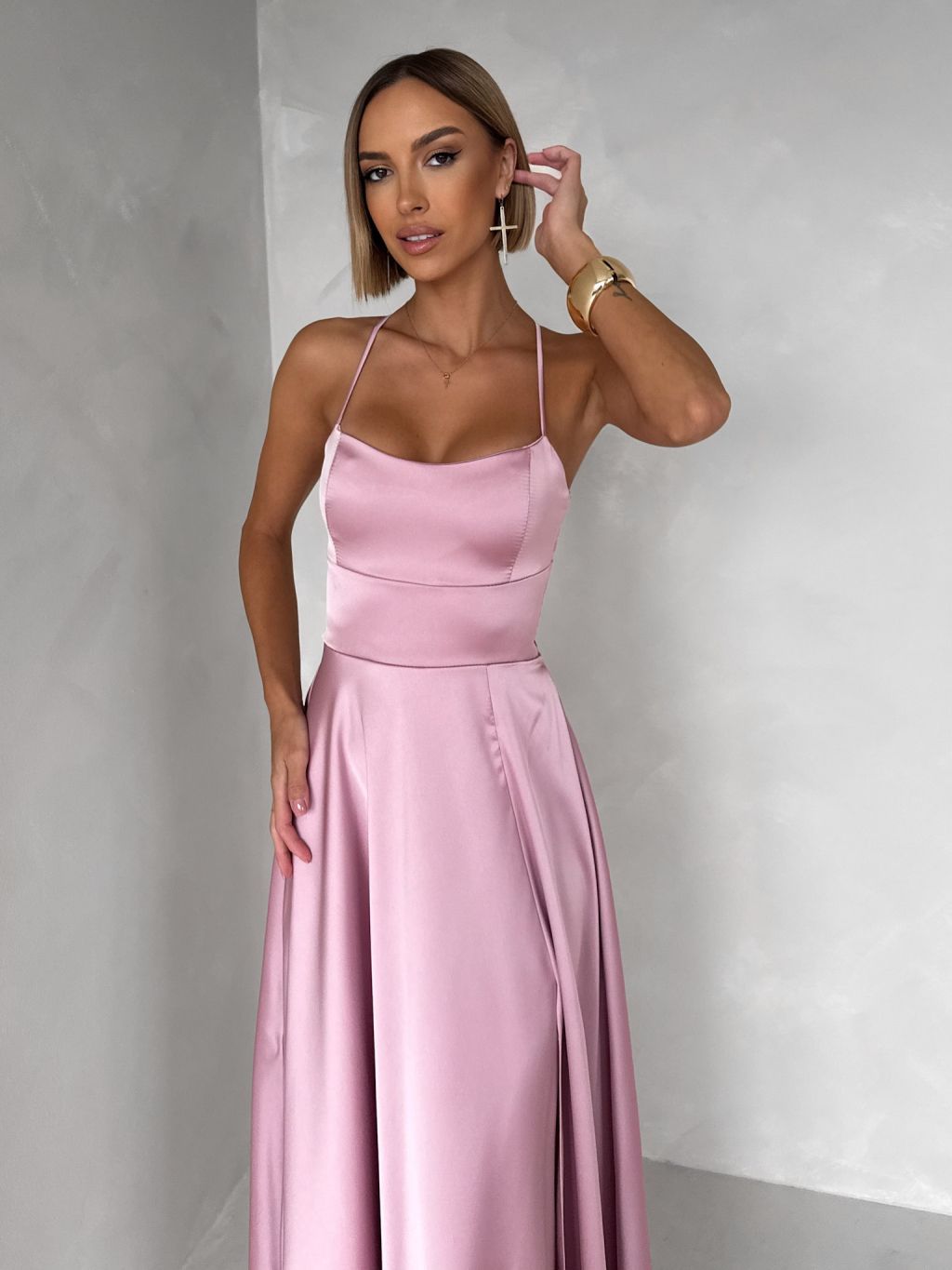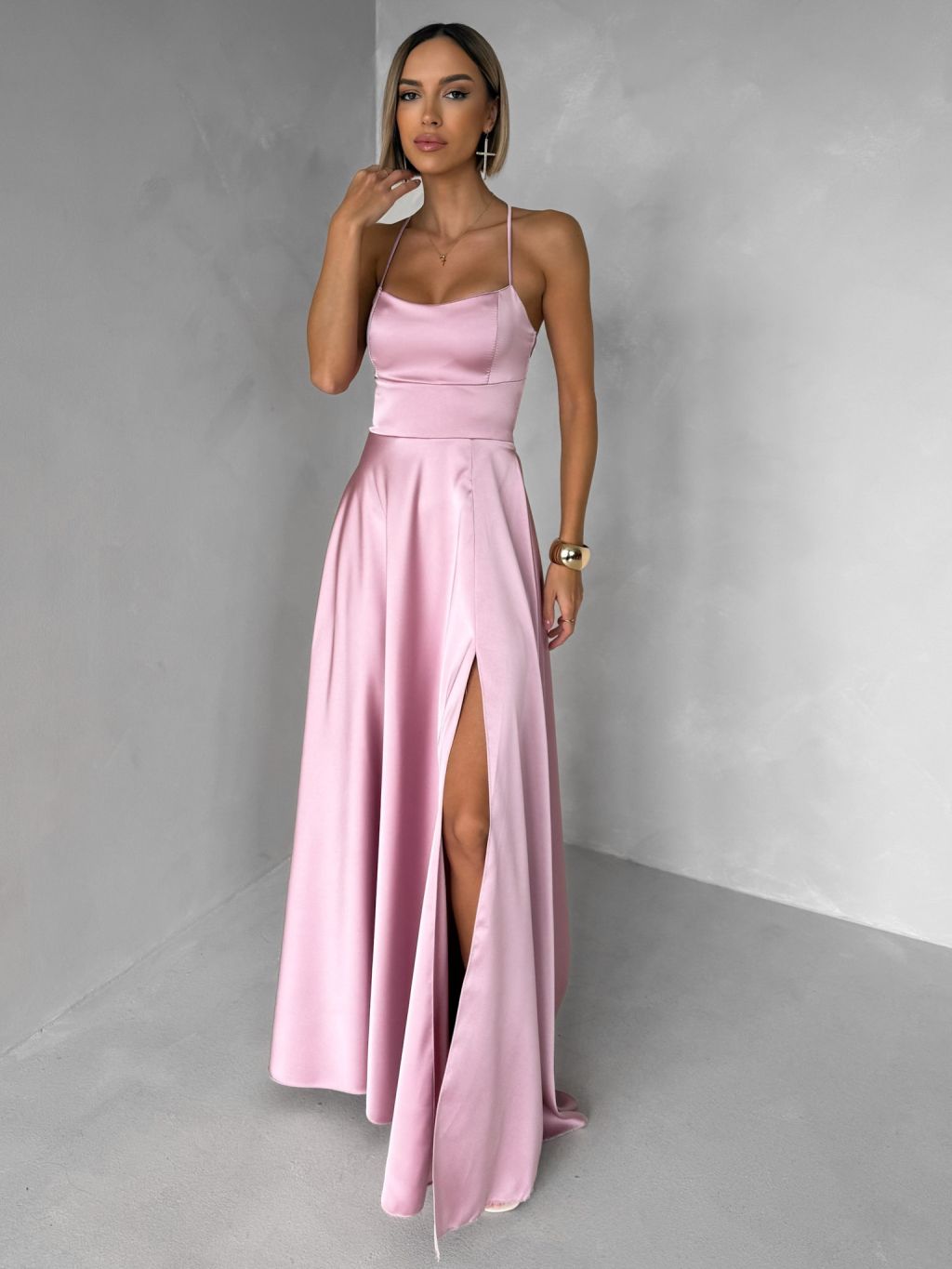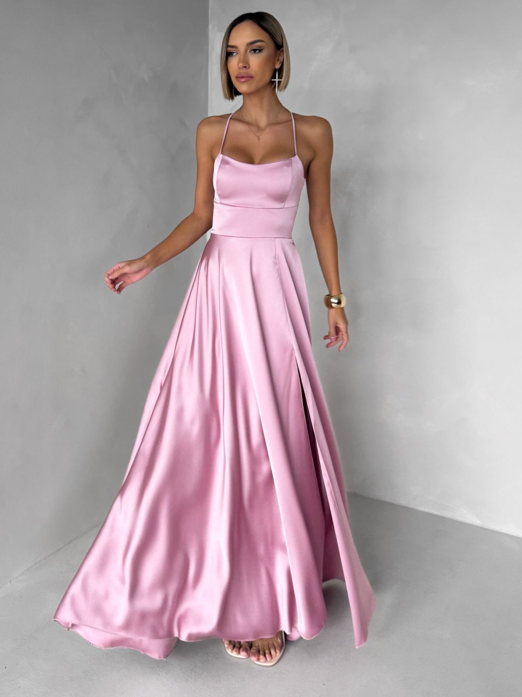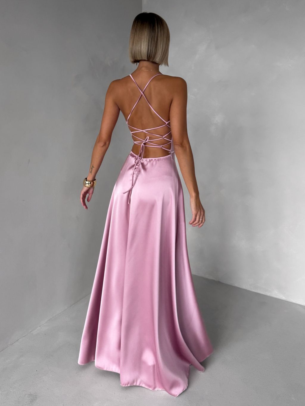 Staroružové dlhé plesové šaty CELLINES so šnurovaním