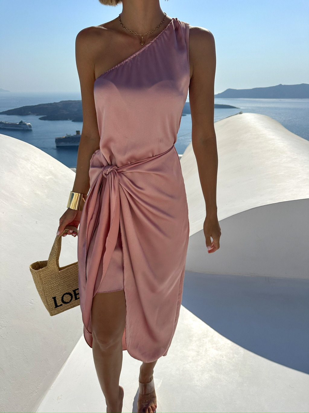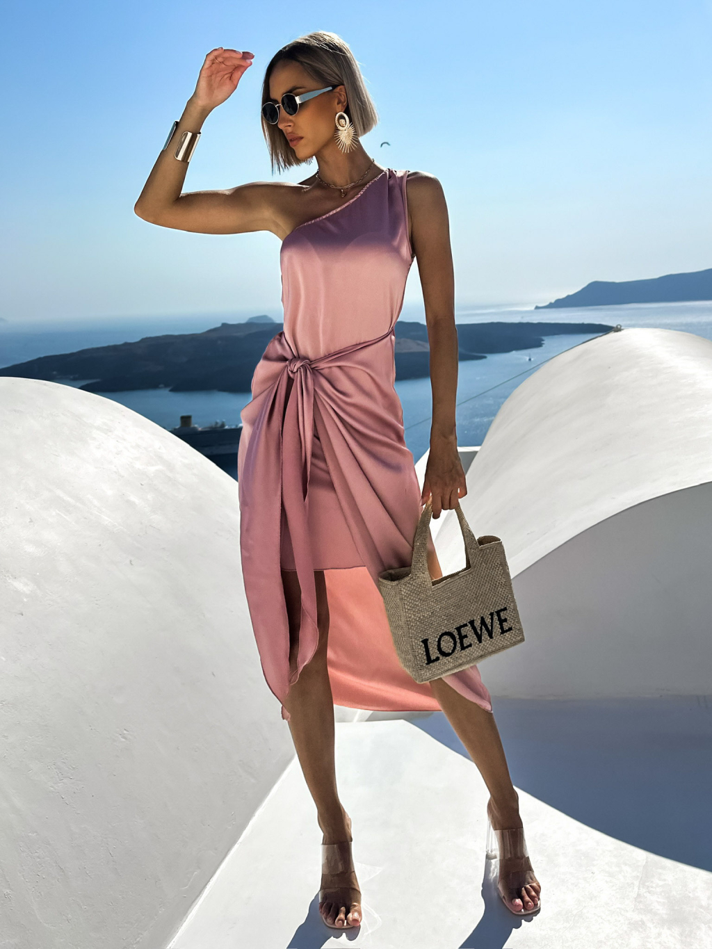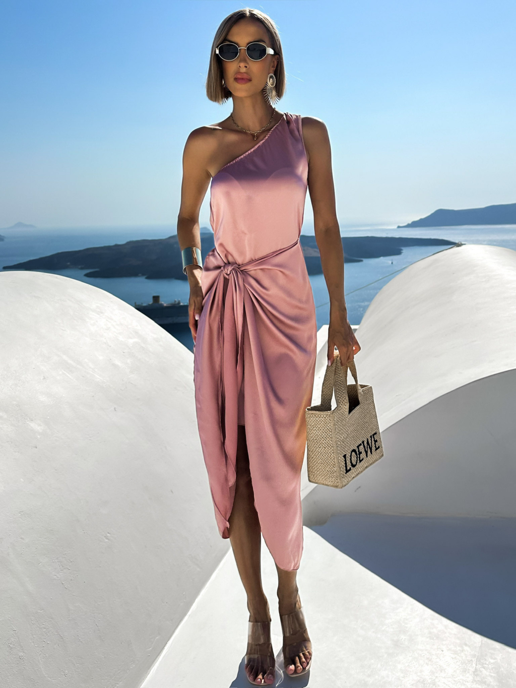 Staroružové saténové elegantné šaty LIBIOSI na jedno rameno