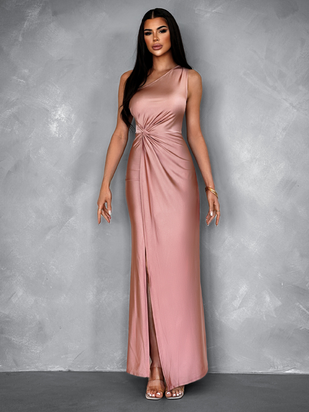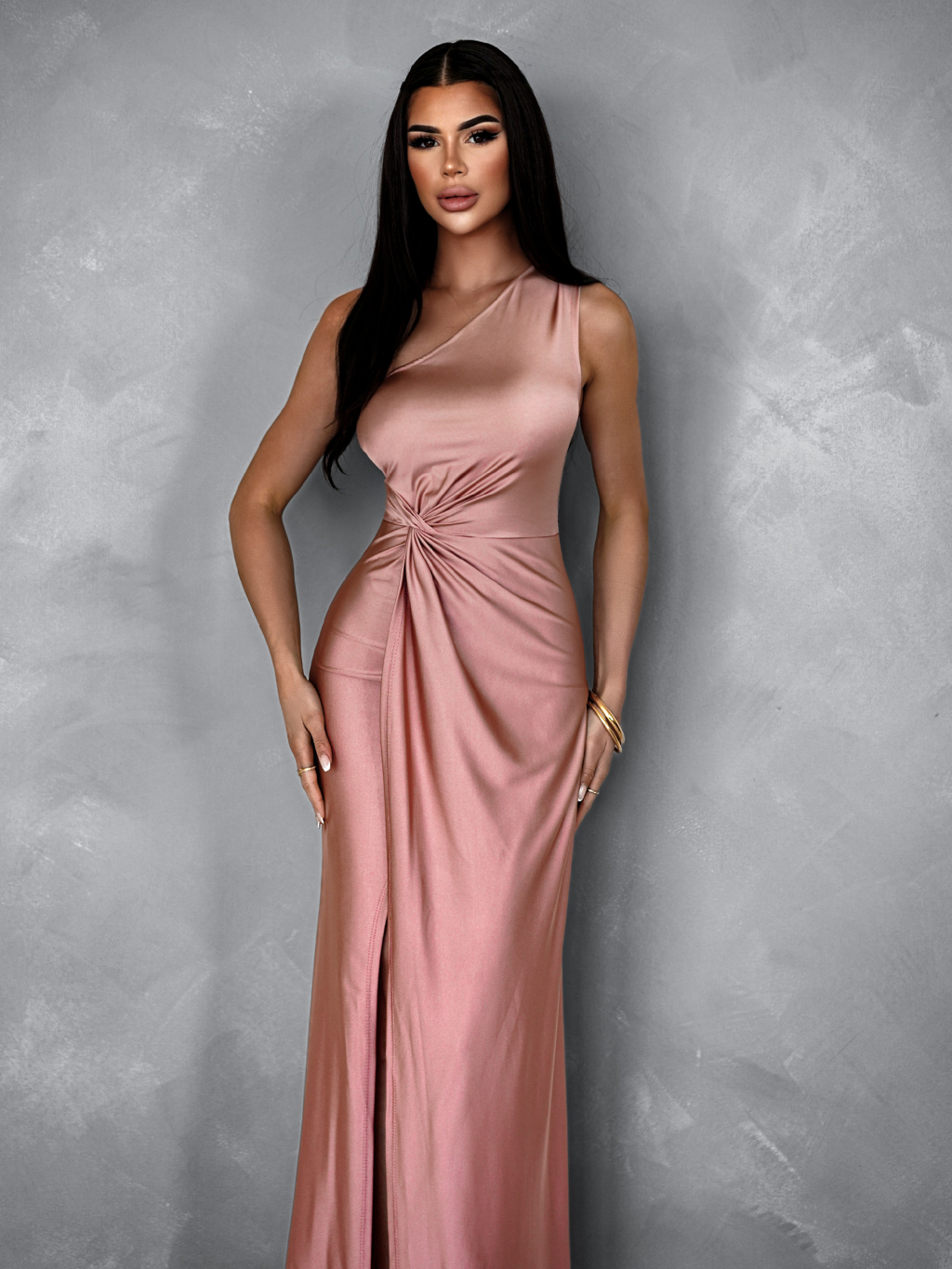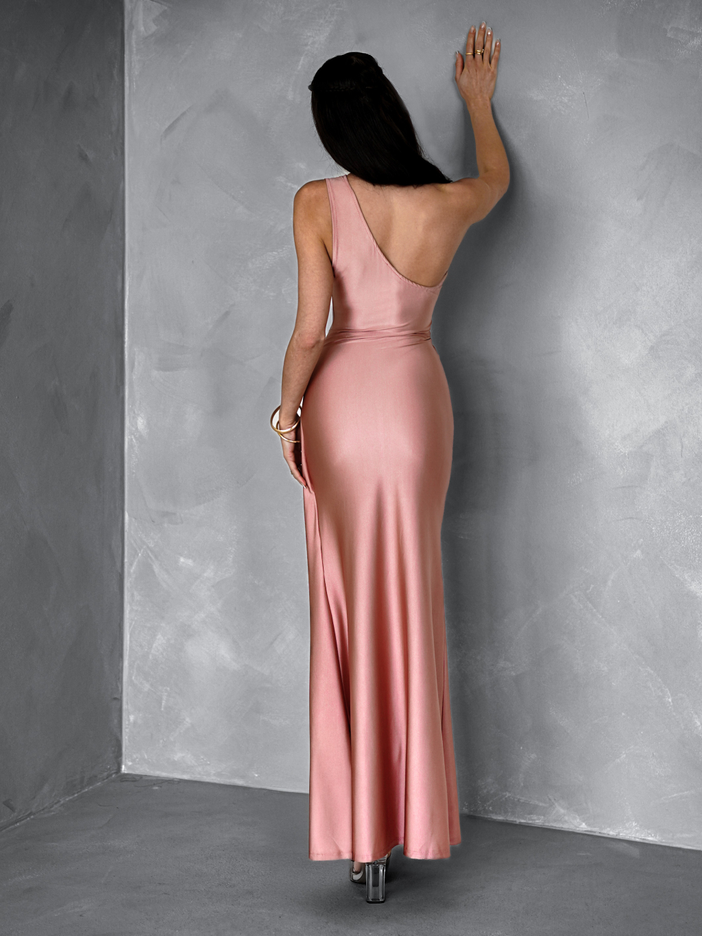Staroružové saténové šaty FIAMMAR na jedno rameno