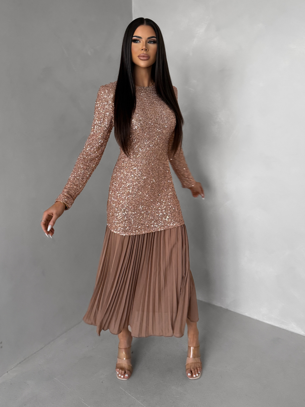 Staroružové spoločenské dlhé trblietavé šaty TARGET