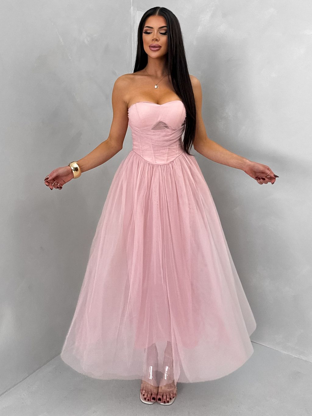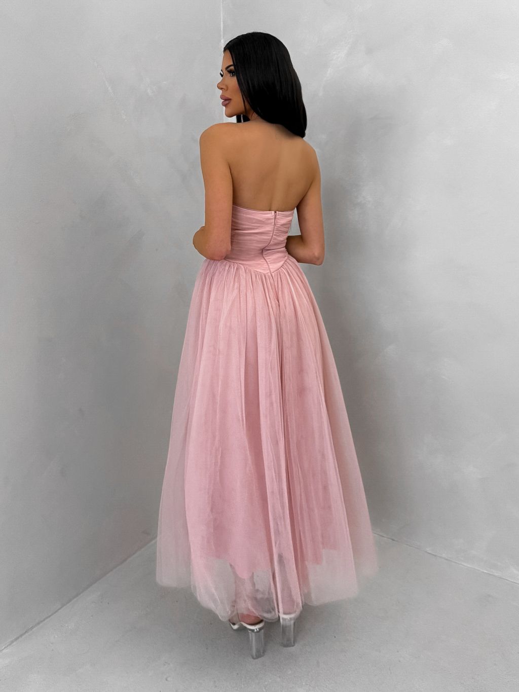 Staroružové spoločenské tylové midi šaty SOLAVIE
