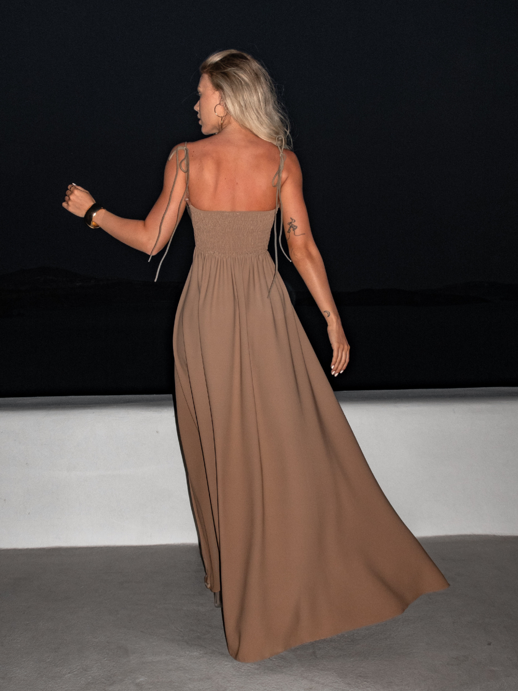 Svetlo hnedé dlhé šaty LERDISEL na ramienka