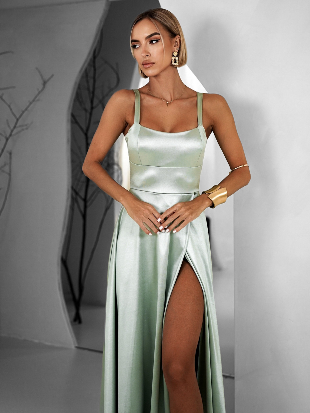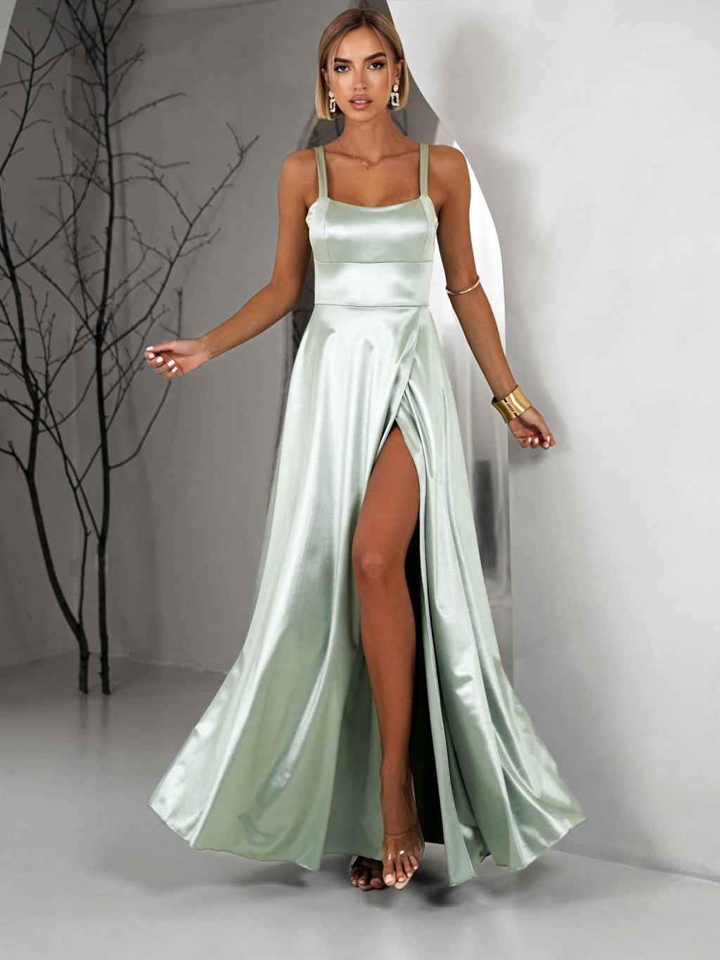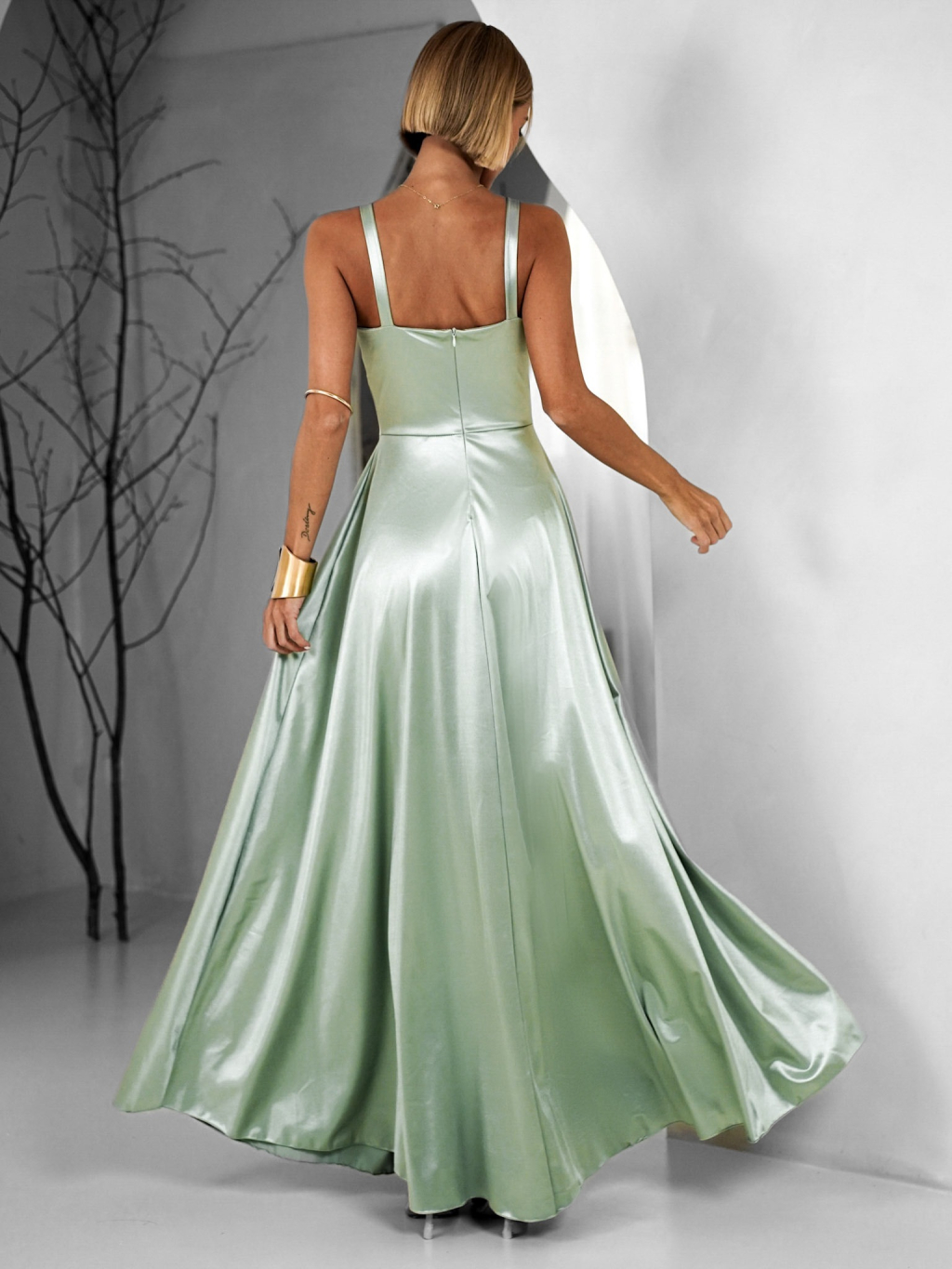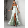 Svetlo zelené dlhé saténové šaty HELSIN