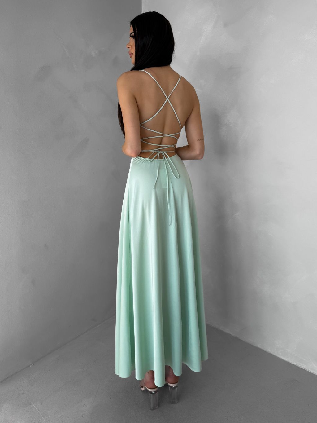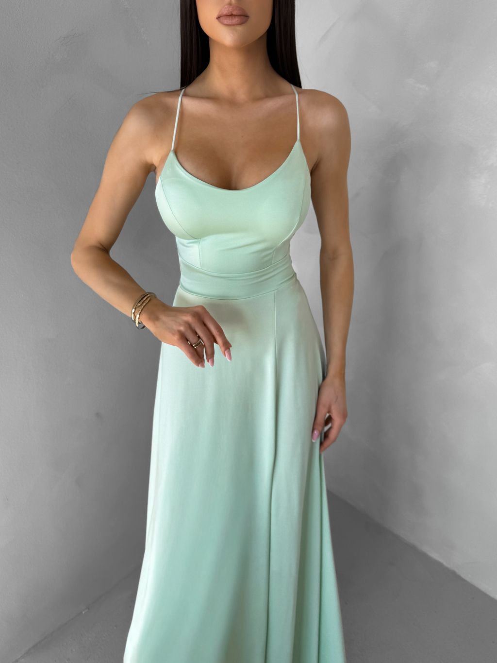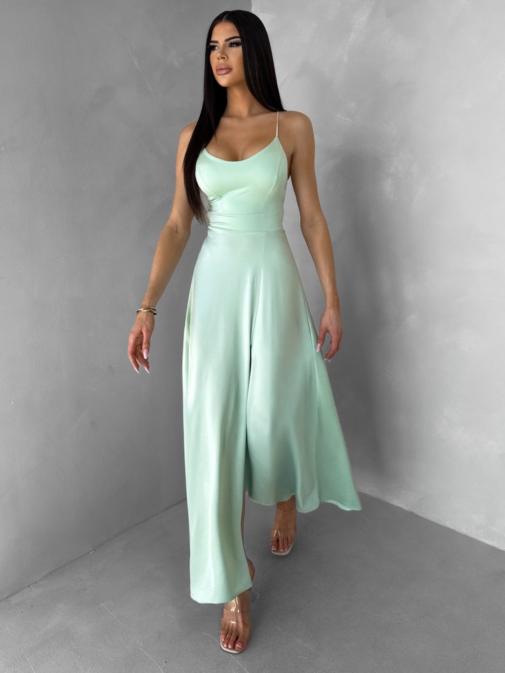 Svetlo zelené saténové šaty SIMUEL so šnurovaním