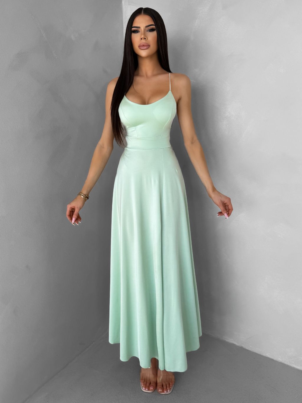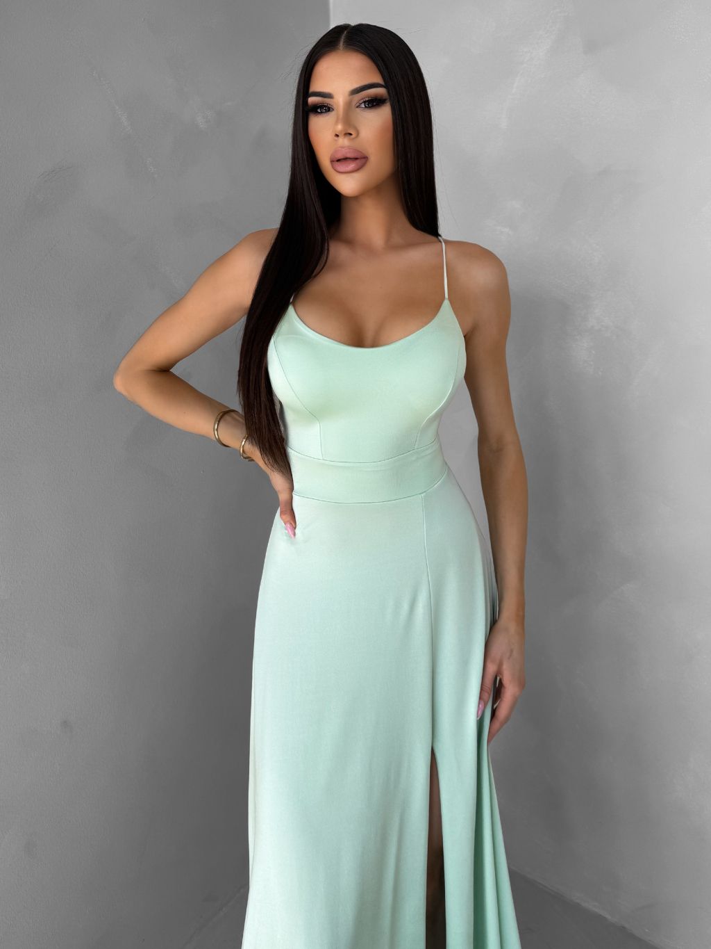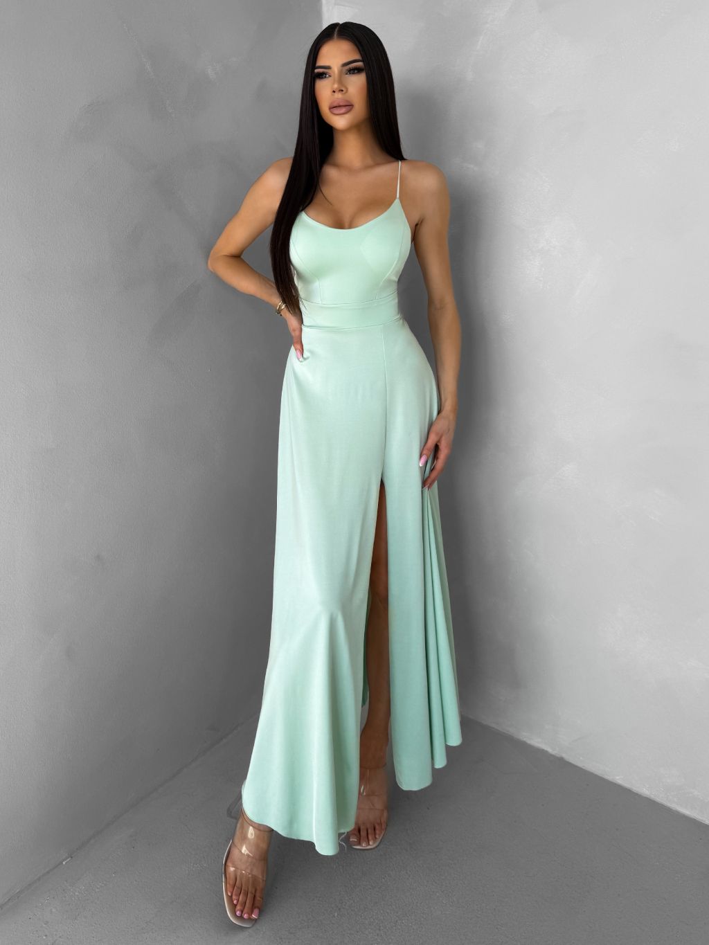 Svetlo zelené saténové šaty SIMUEL so šnurovaním
