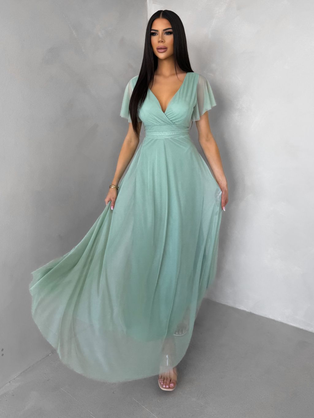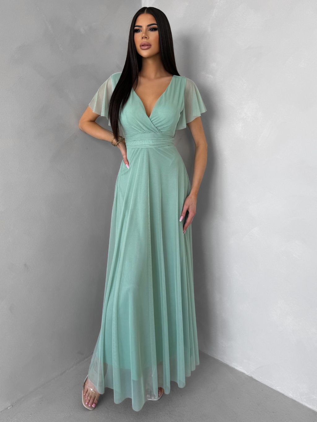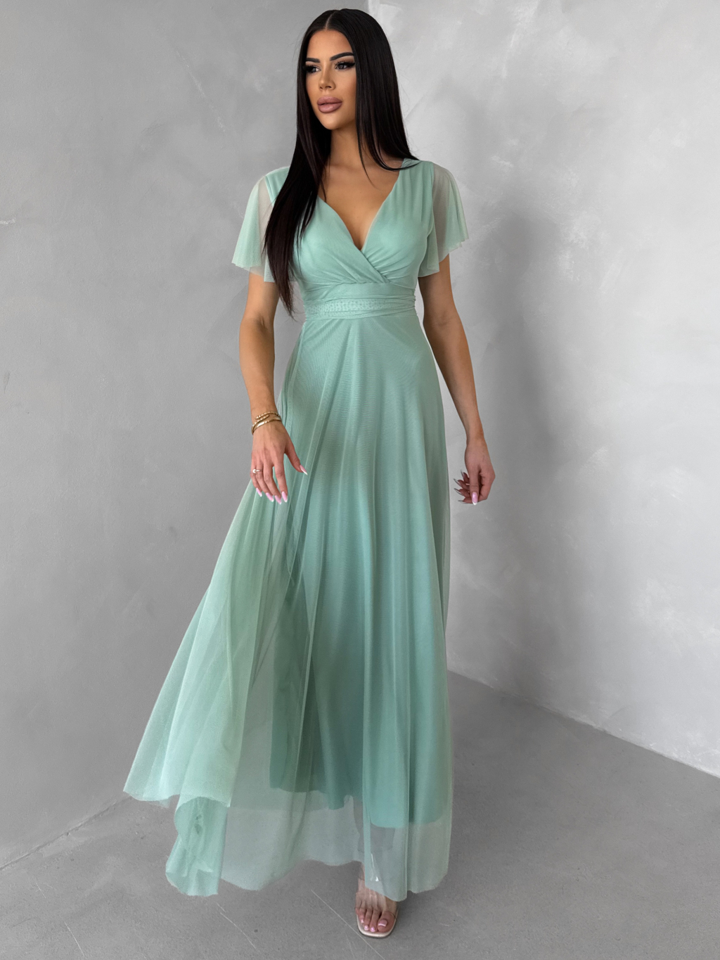 Svetlo zelené šifónové dlhé viazacie šaty VIONELA