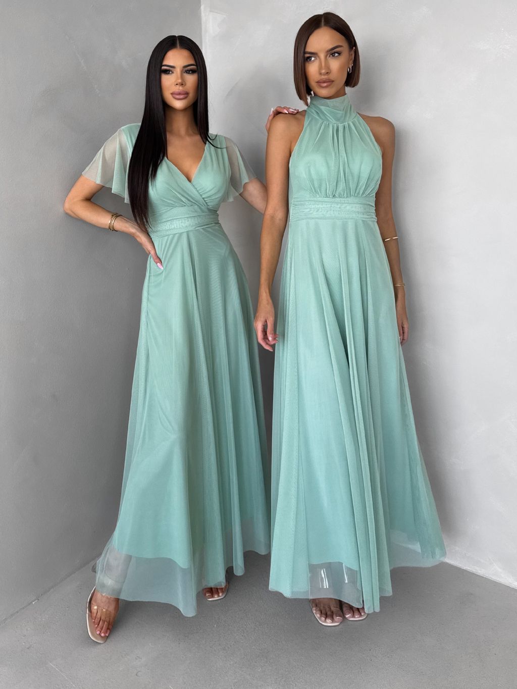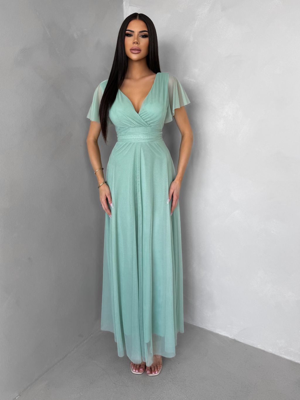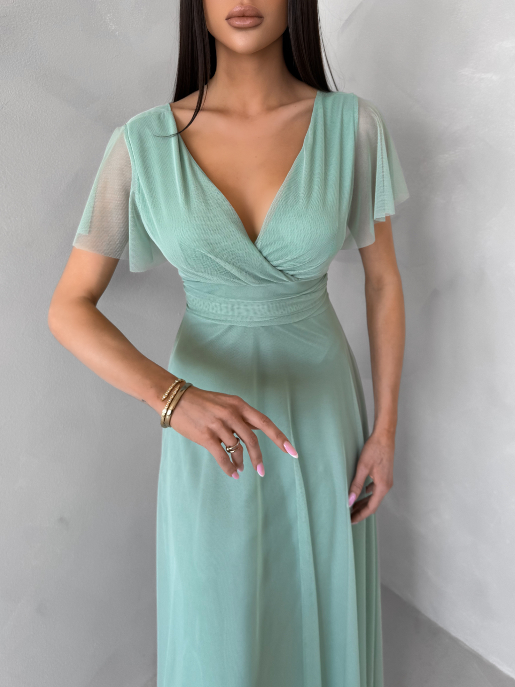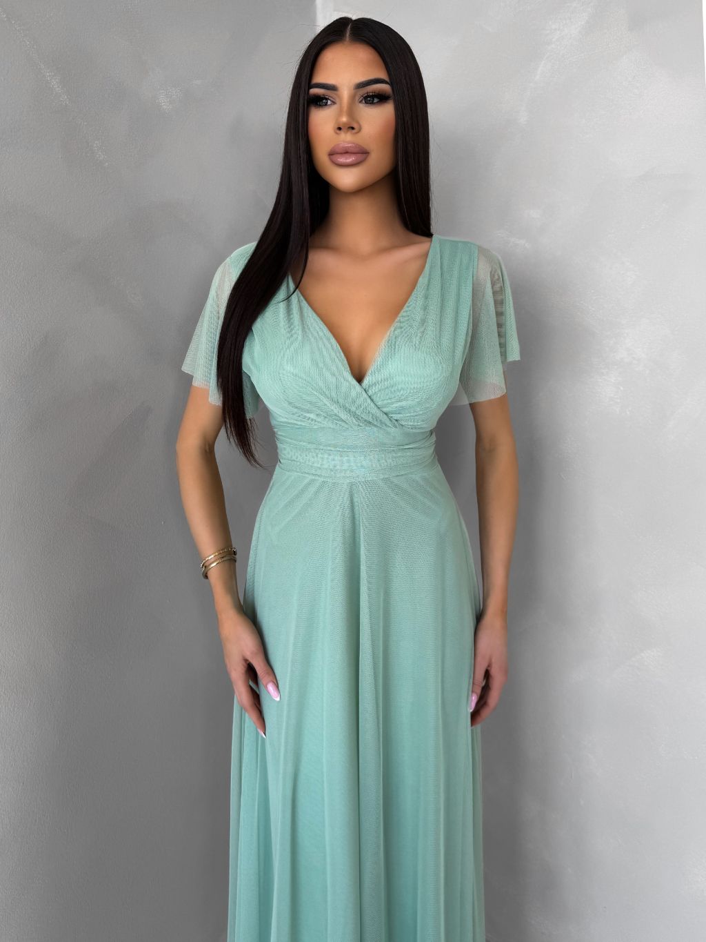 Svetlo zelené šifónové dlhé viazacie šaty VIONELA