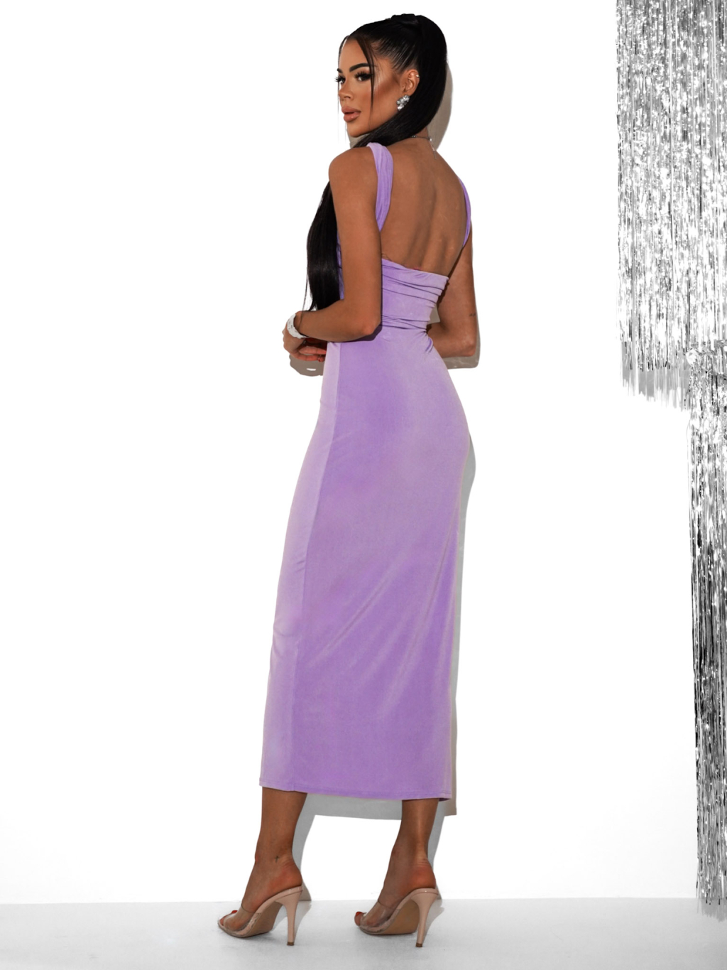 Svetlofialové koktailové elastické šaty SOLDIER
