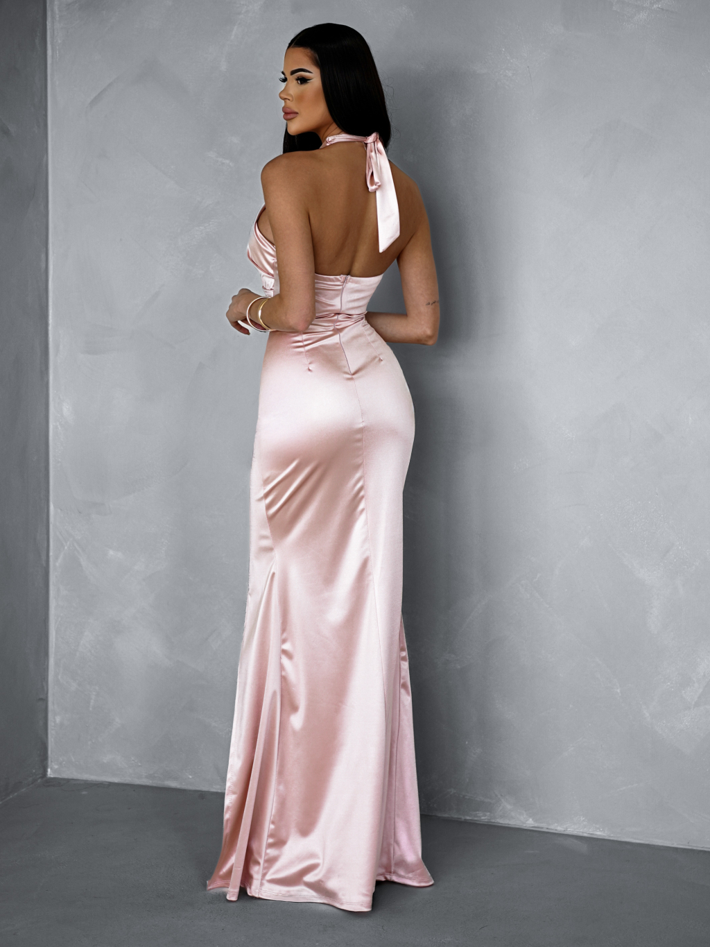 Svetloružové dlhé saténové šaty PULONA