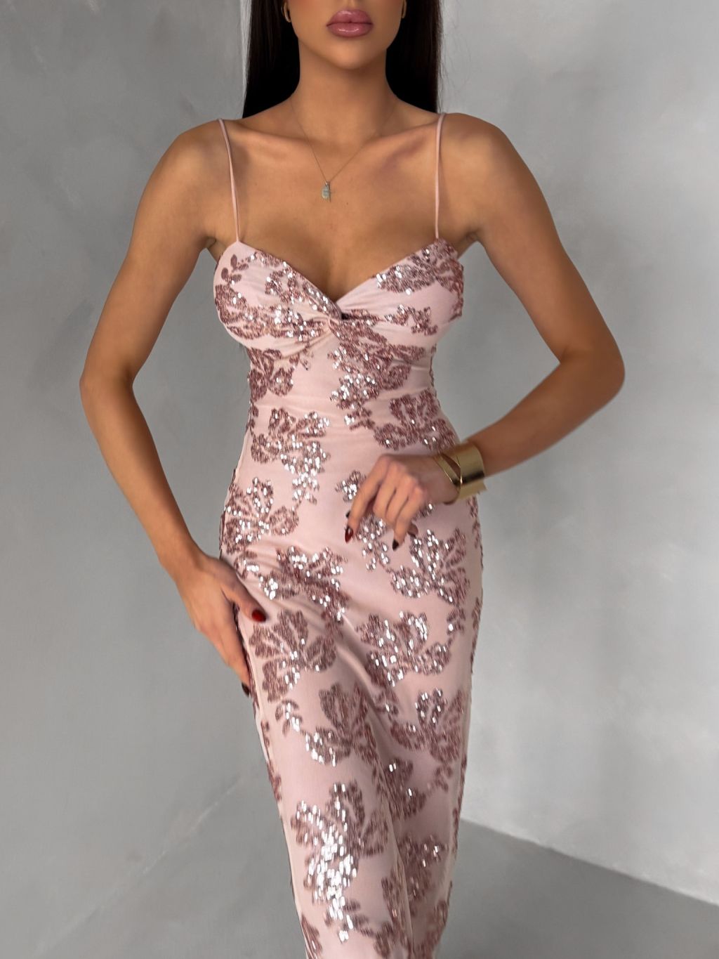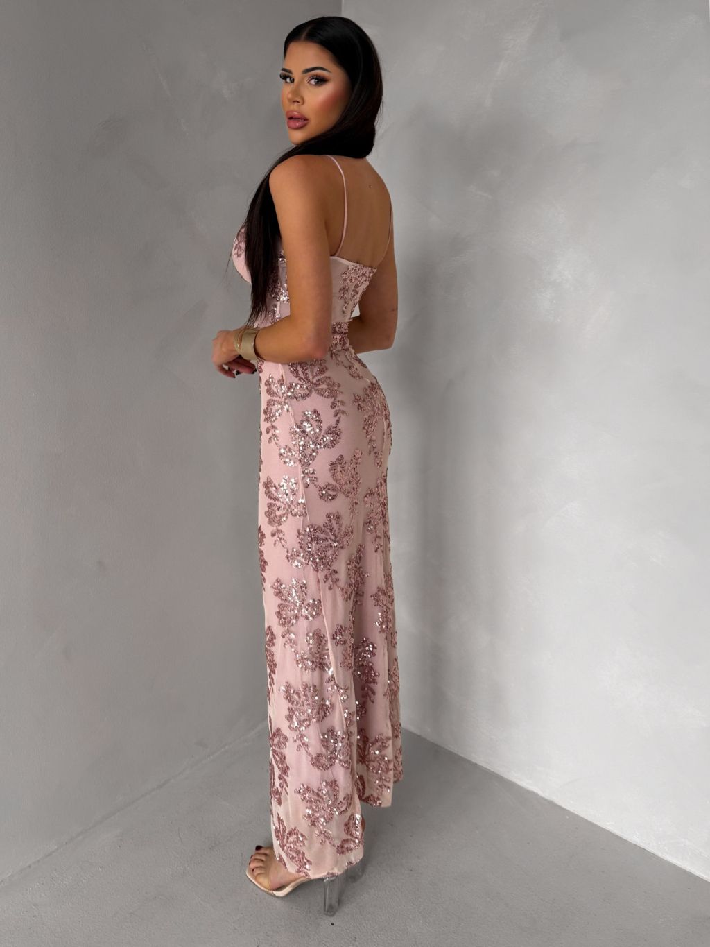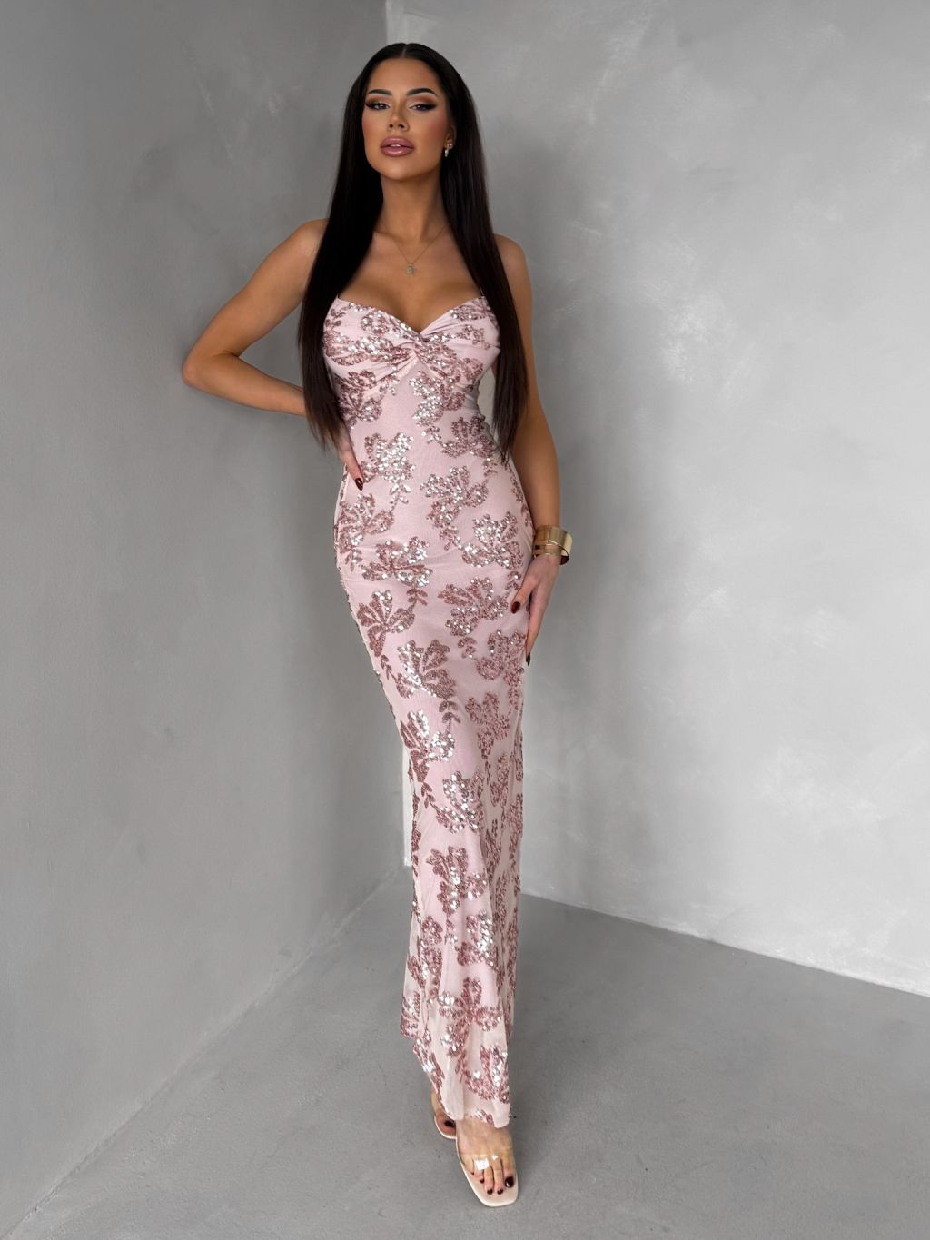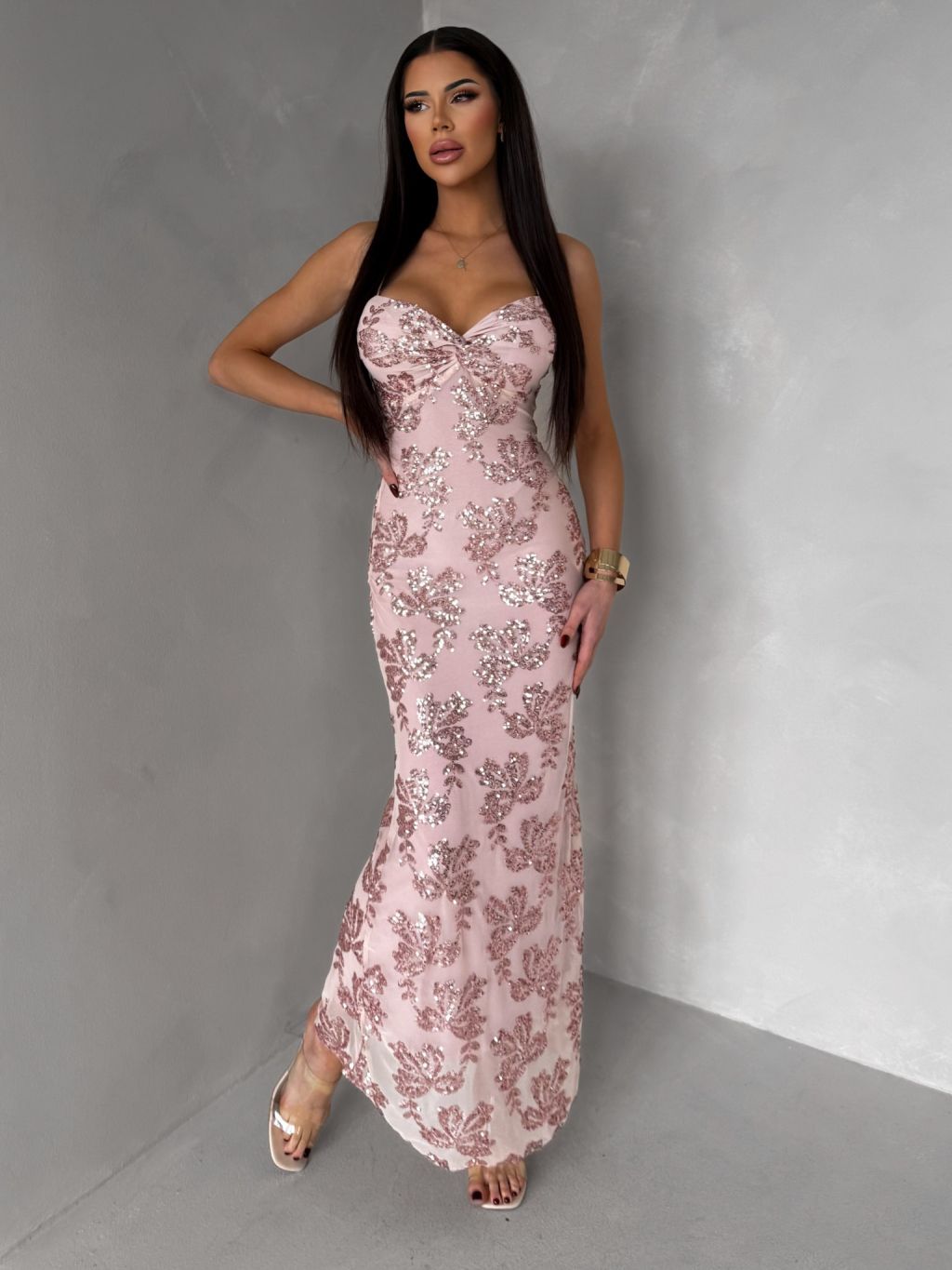 Svetloružové spoločenské dlhé plesové šaty KAILINA