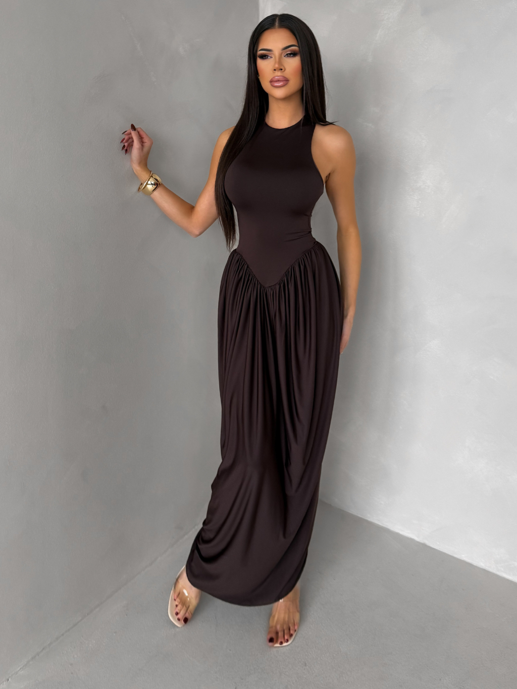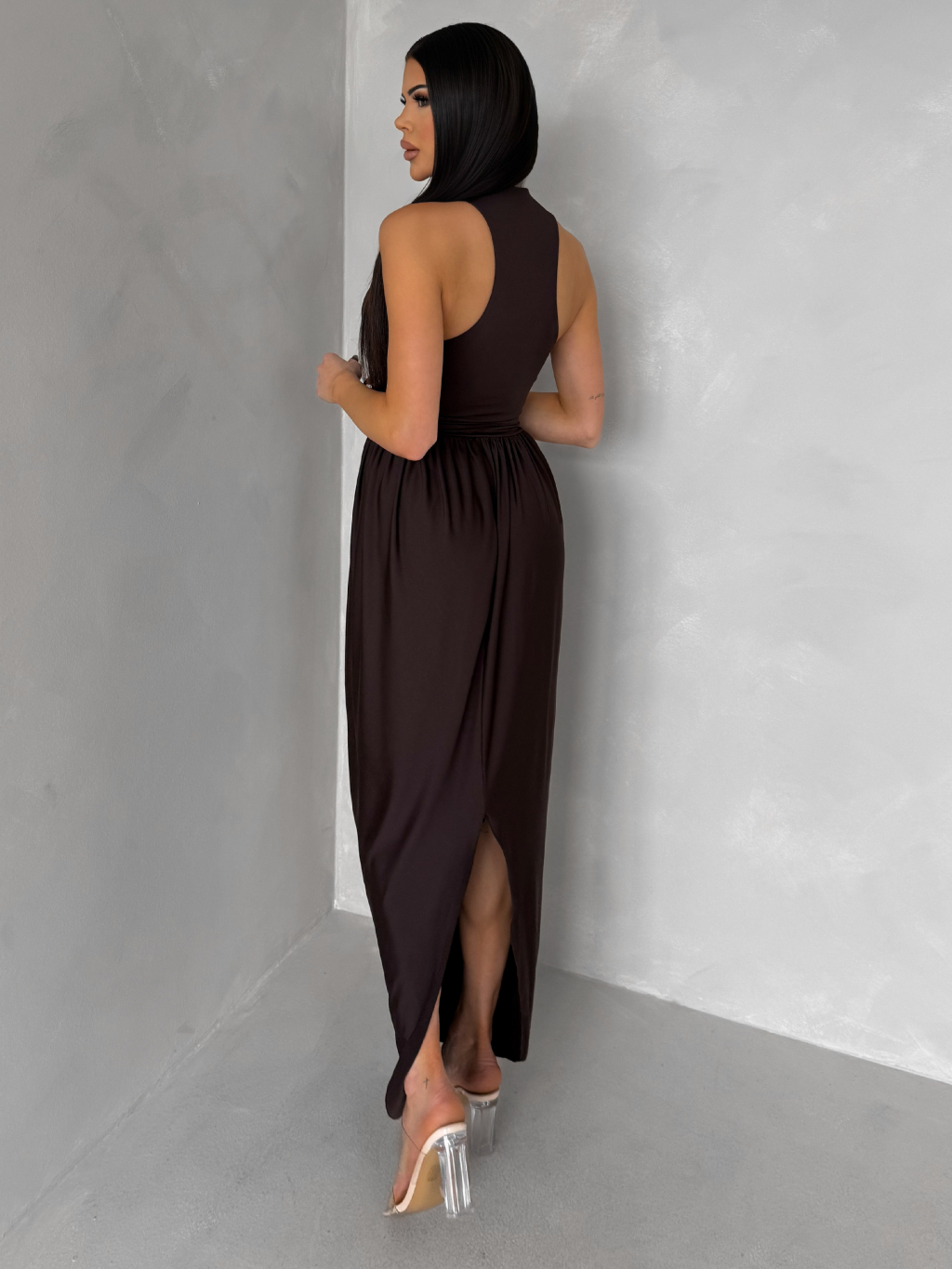 Tmavo hnedé spoločenské tvarujúce šaty ALYRION