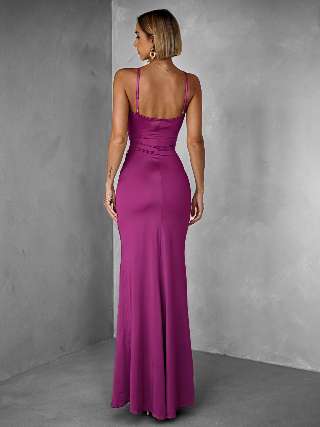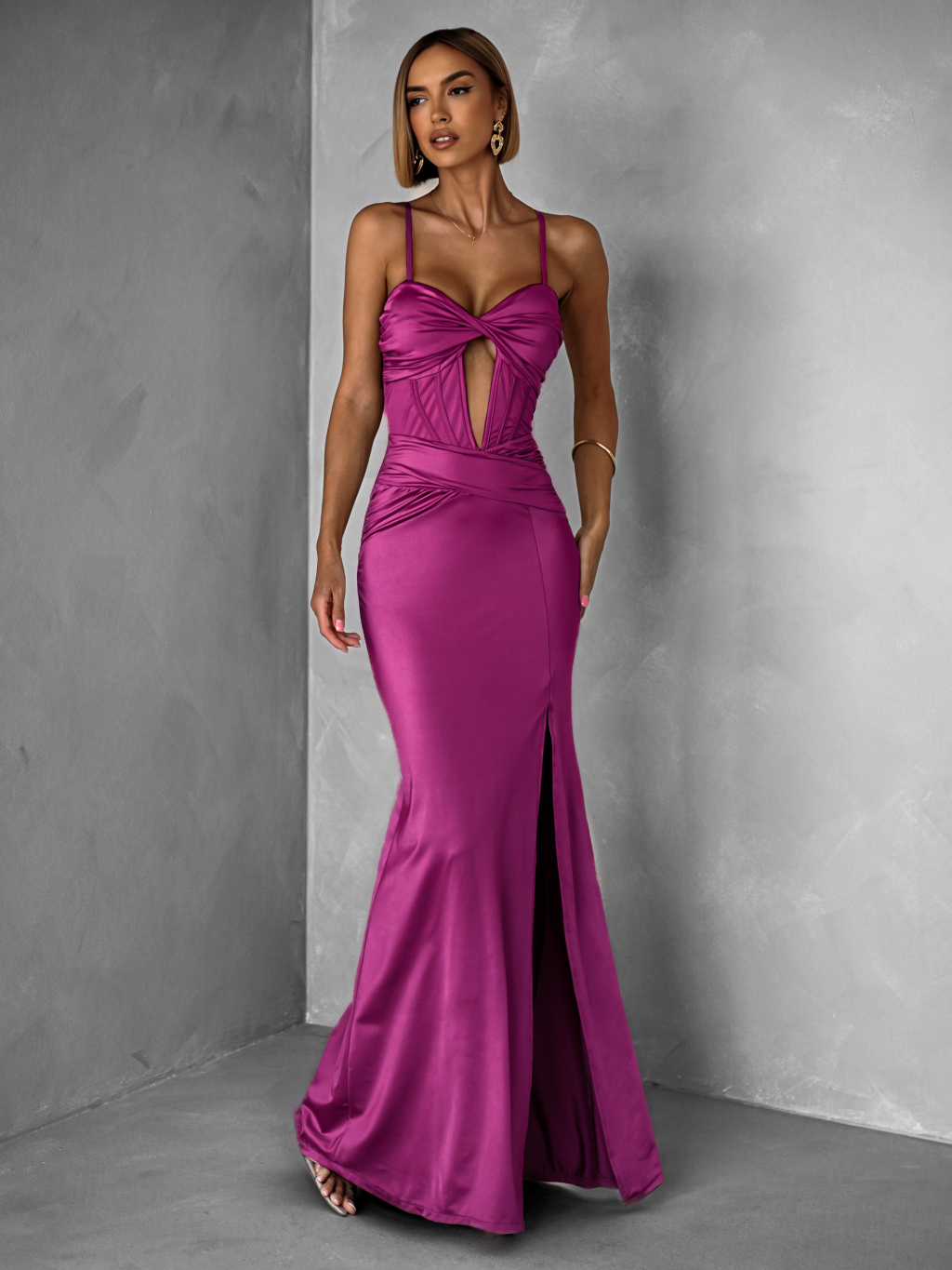 Tmavo ružové dlhé spoločenské šaty LIMONA s prestrihmi