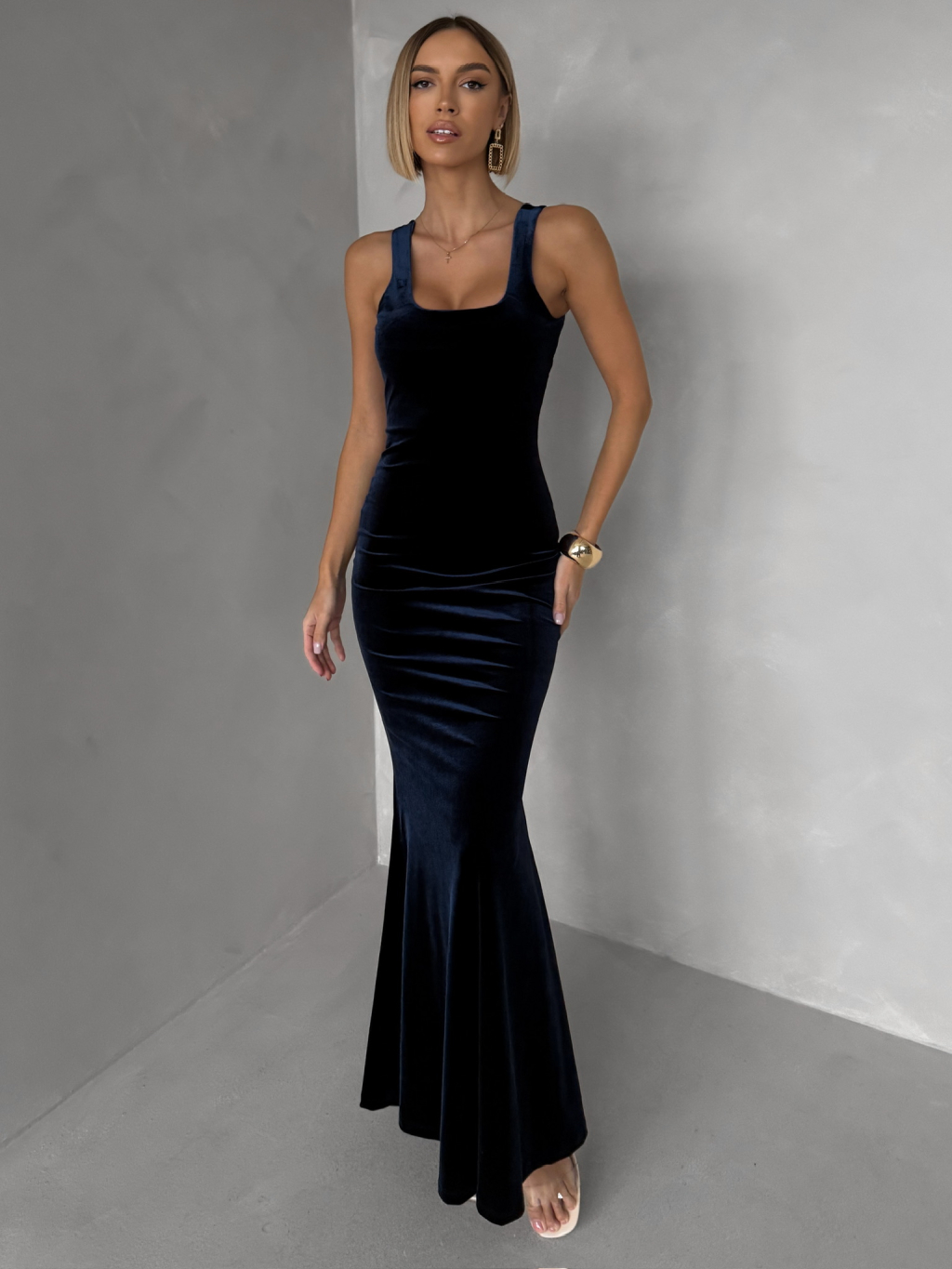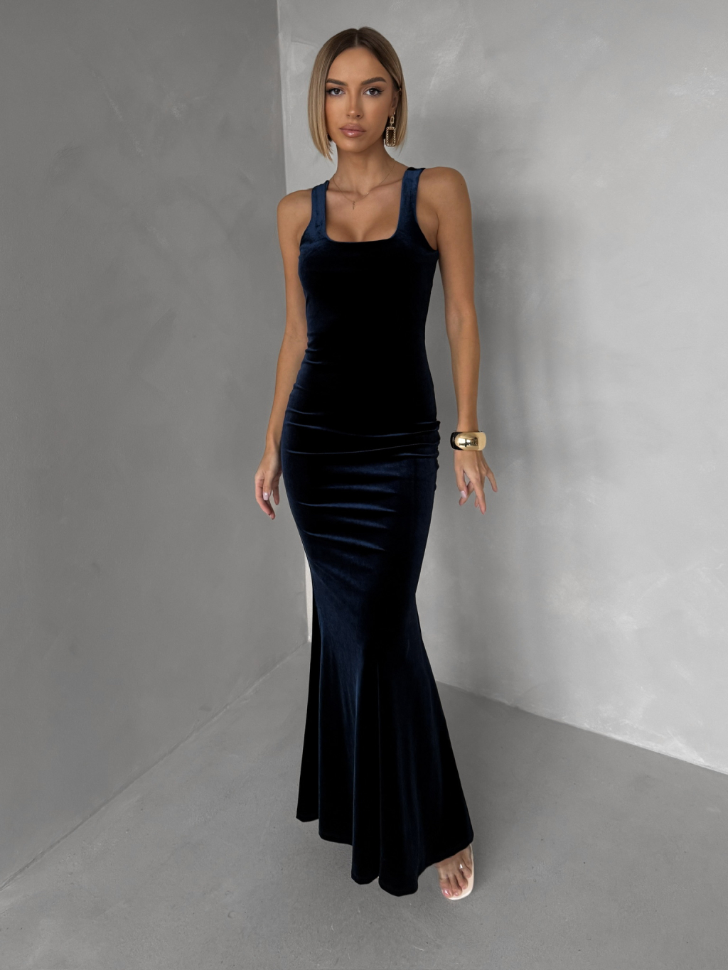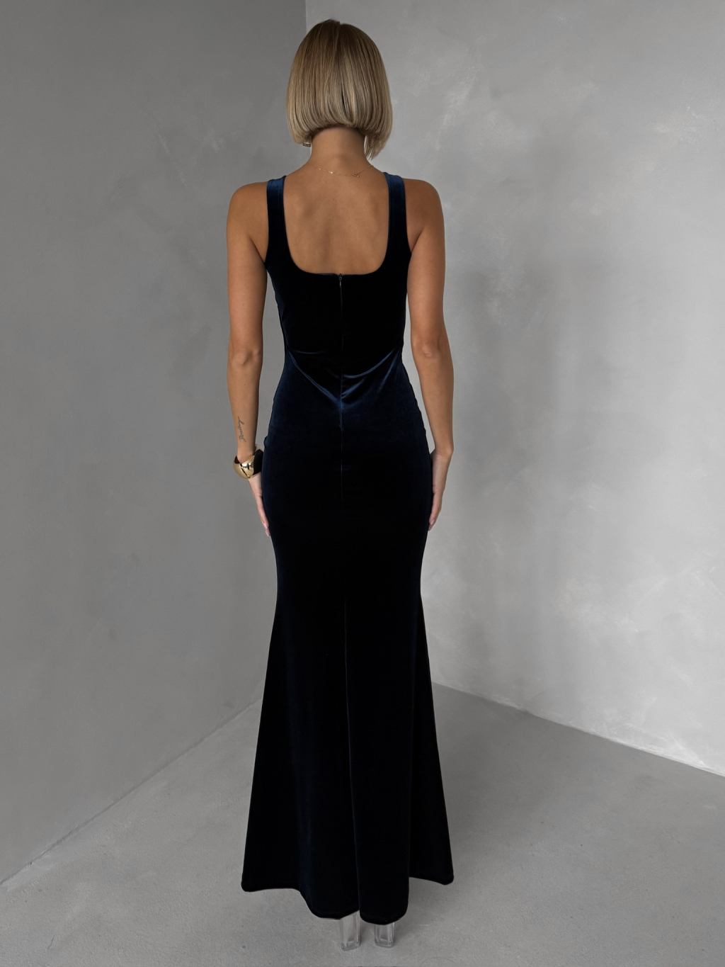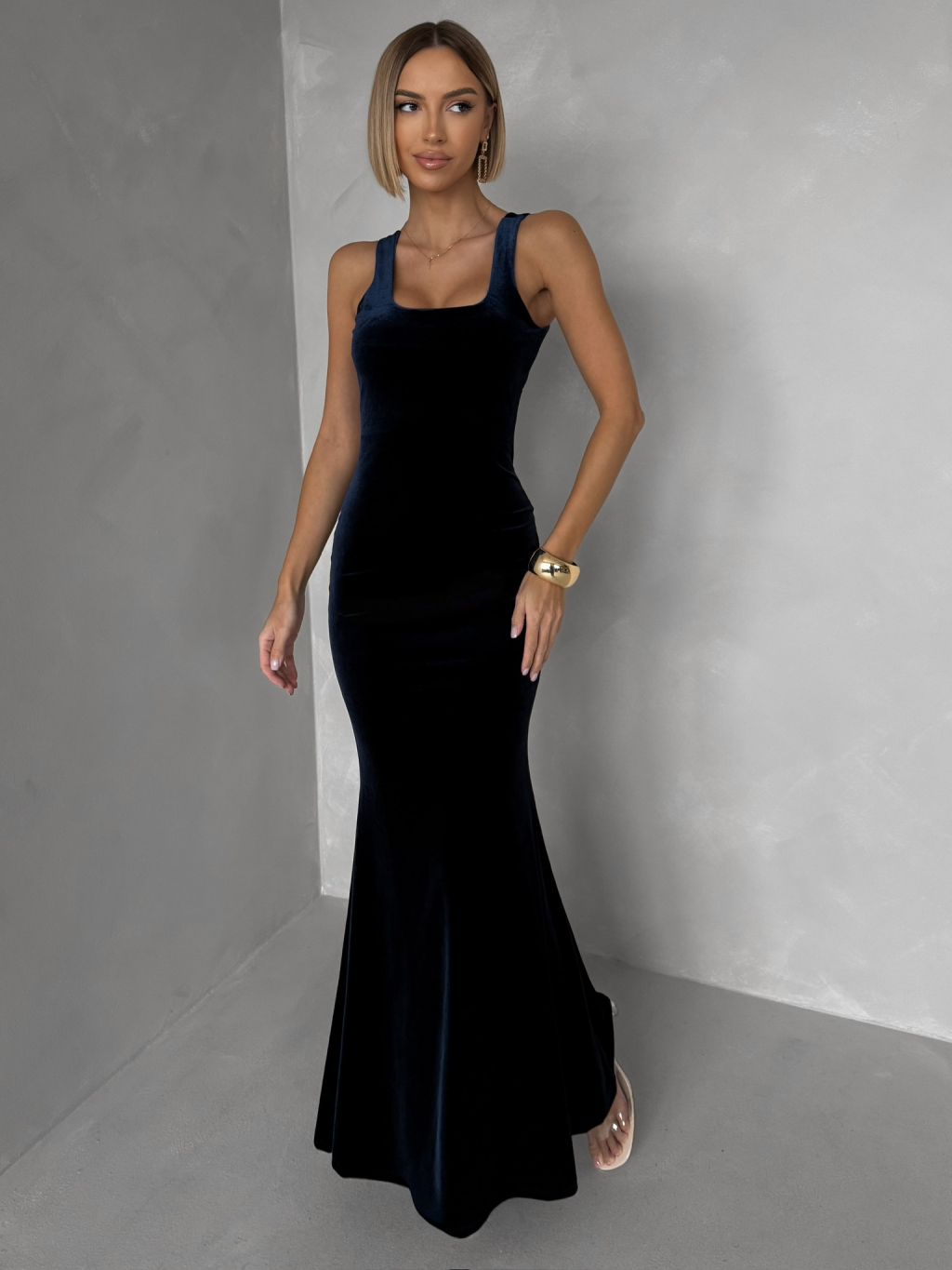 Tmavomodré dlhé zamatové spoločenské šaty UMERY