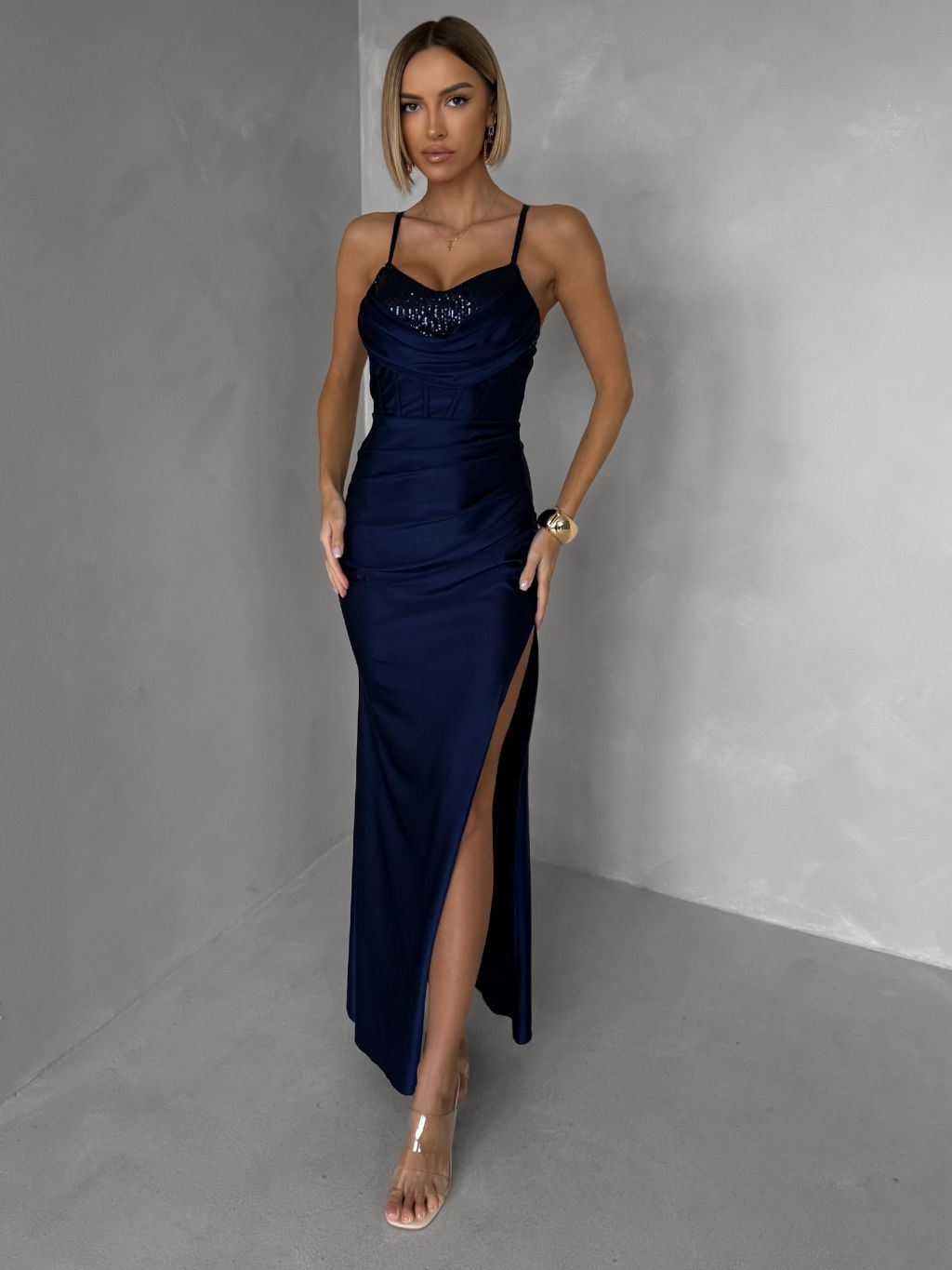 Tmavomodré spoločenské dlhé šaty FAYELA