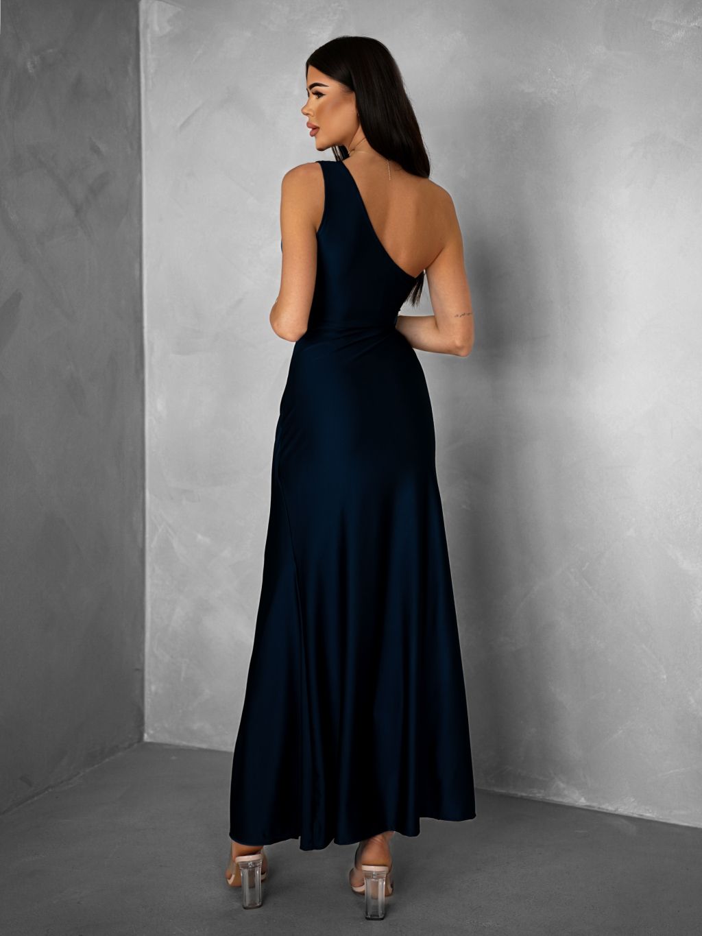 Tmavomodré spoločenské šaty FIAMMAR na jedno rameno