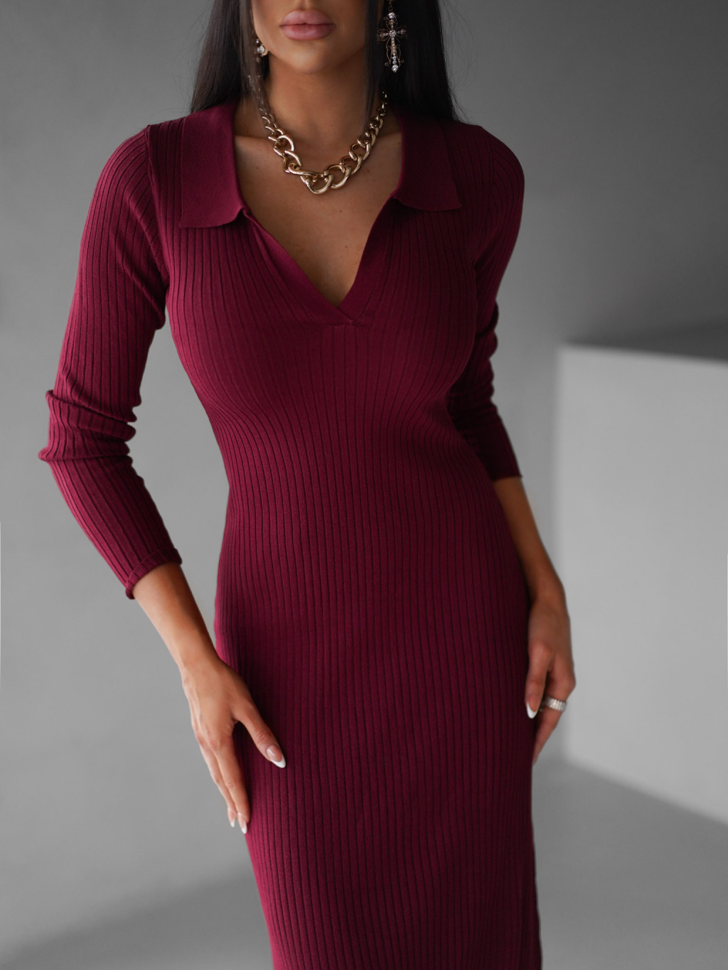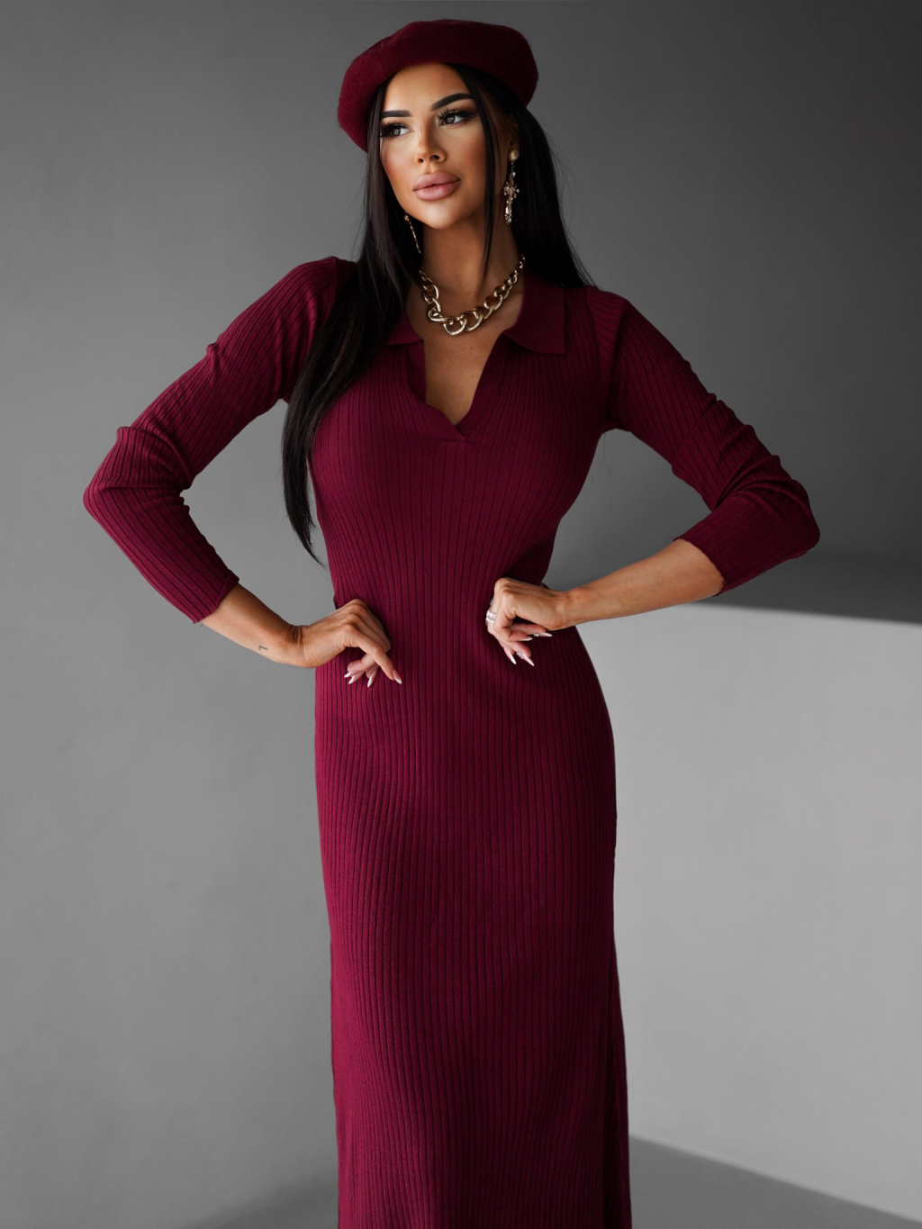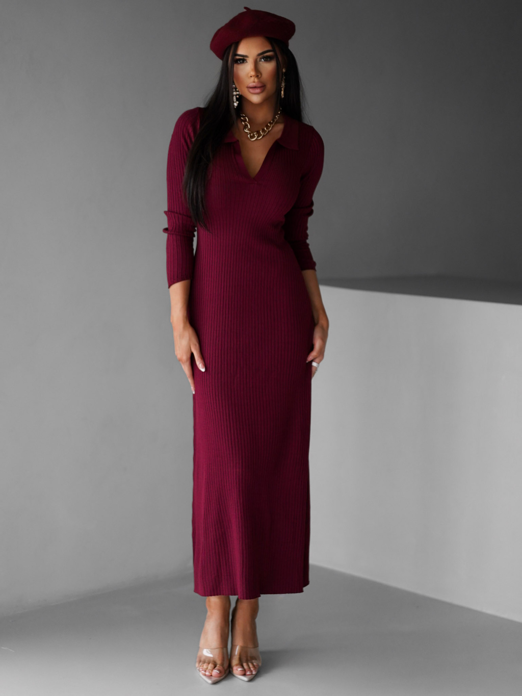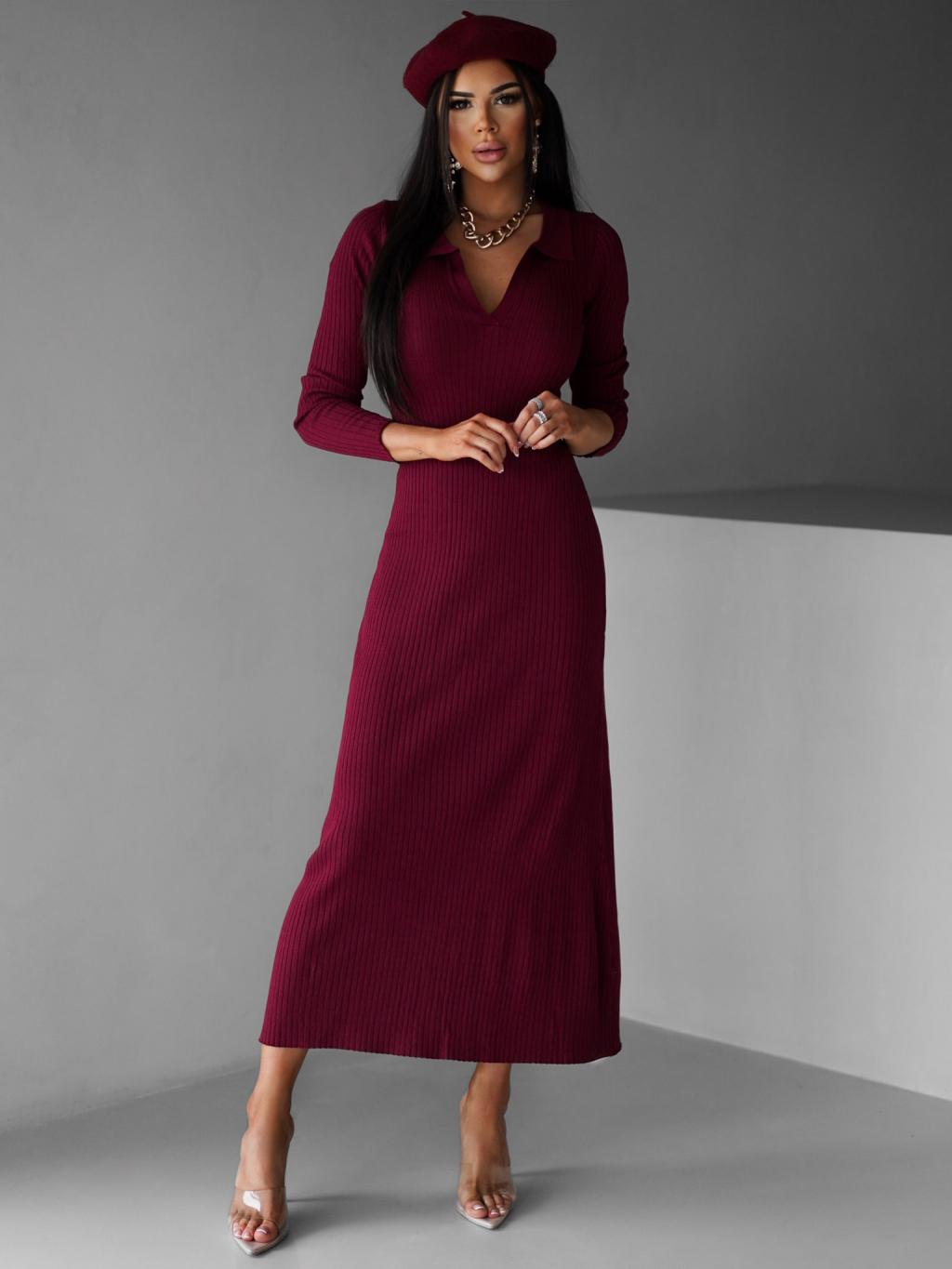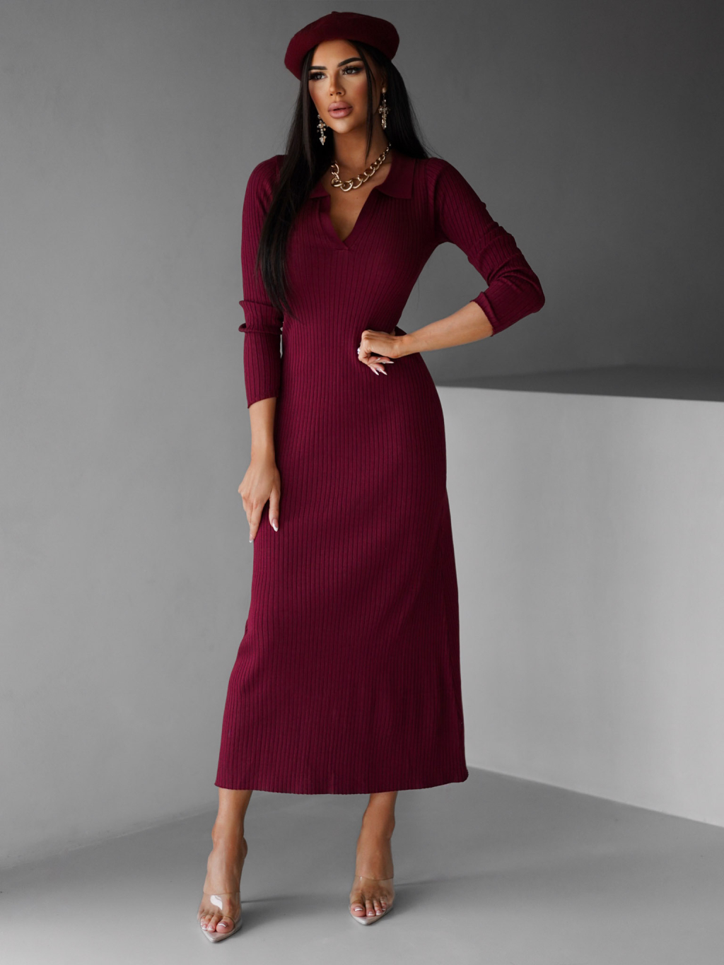 Vínové dlhé džersejové šaty ARTUDO s golierom
