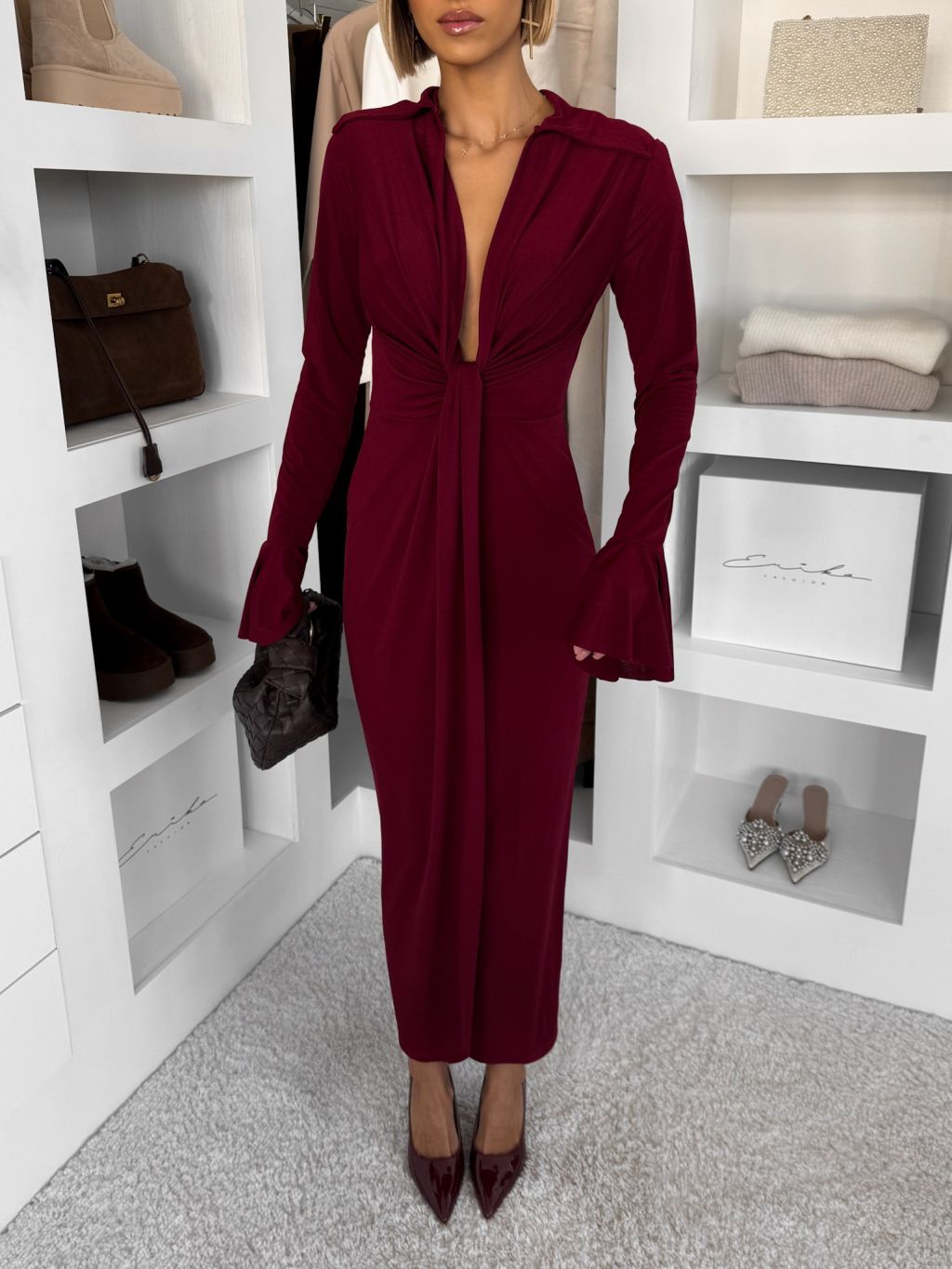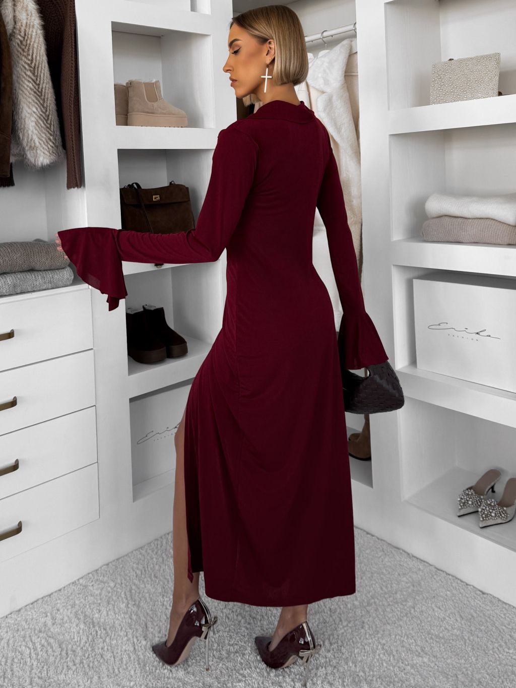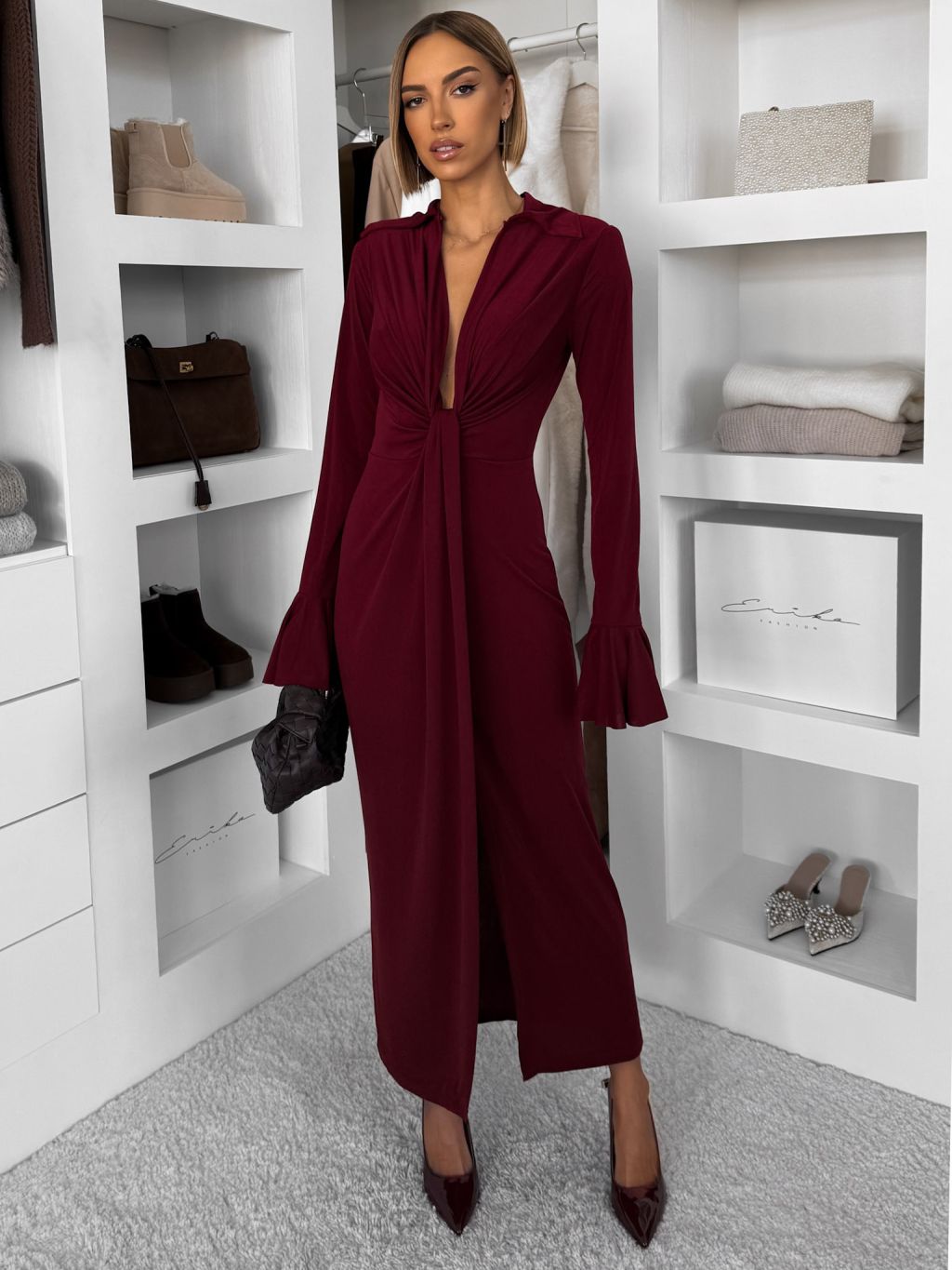 Vínové dlhé spoločenské šaty OSTIVEN s výstrihom