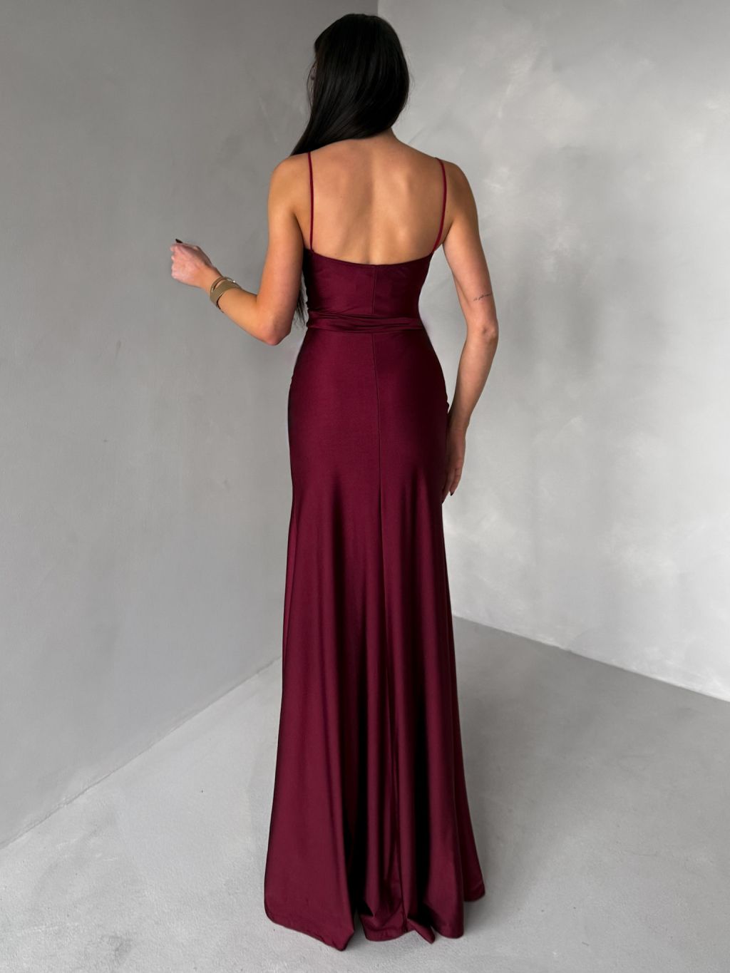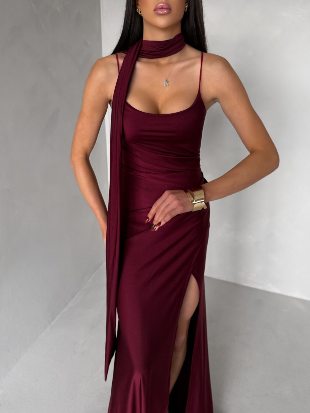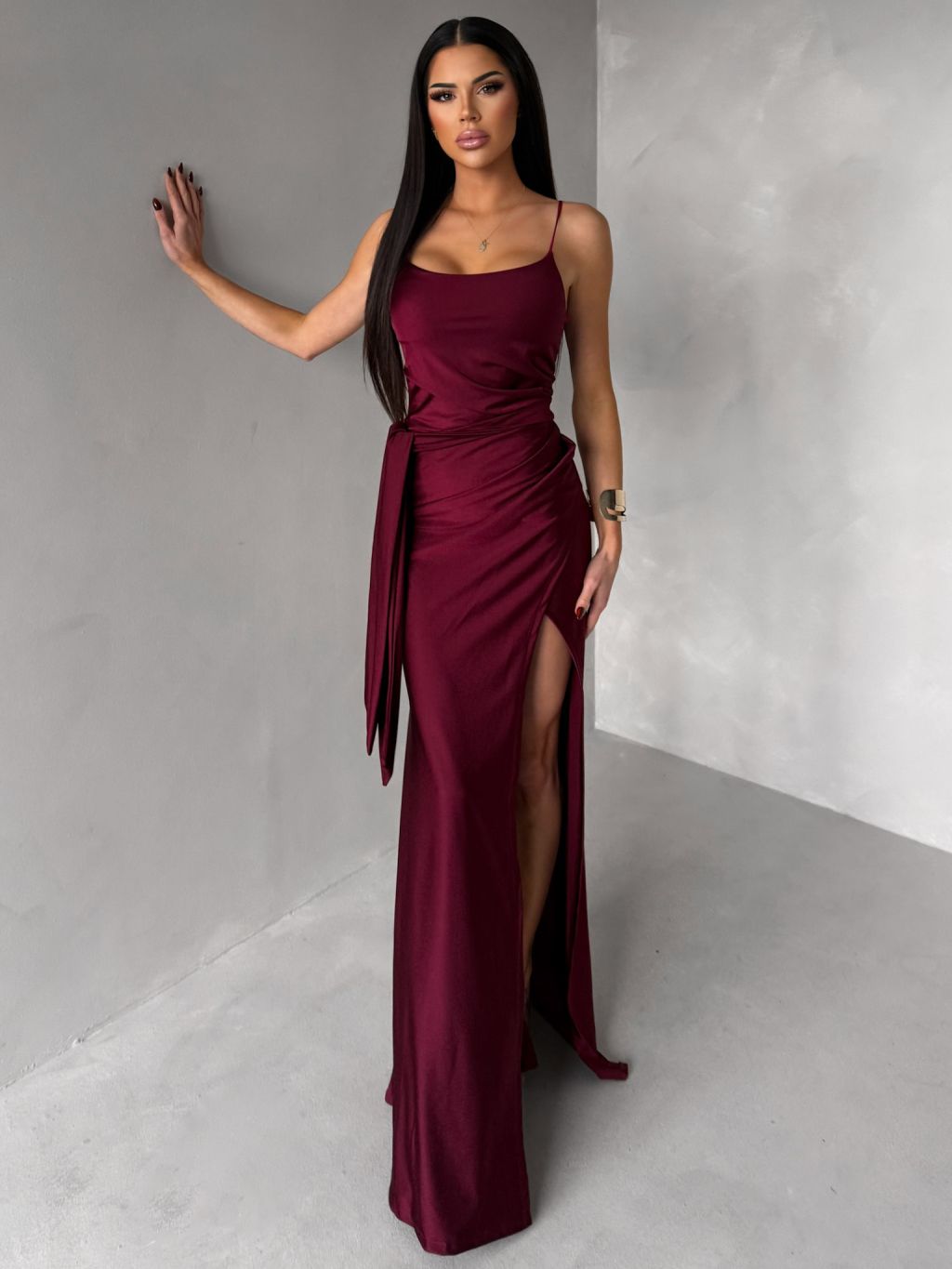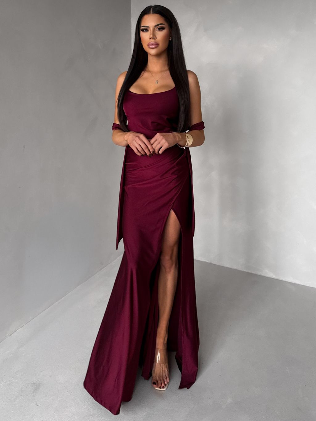 Vínové spoločenské dlhé šaty BELUNA so šálom