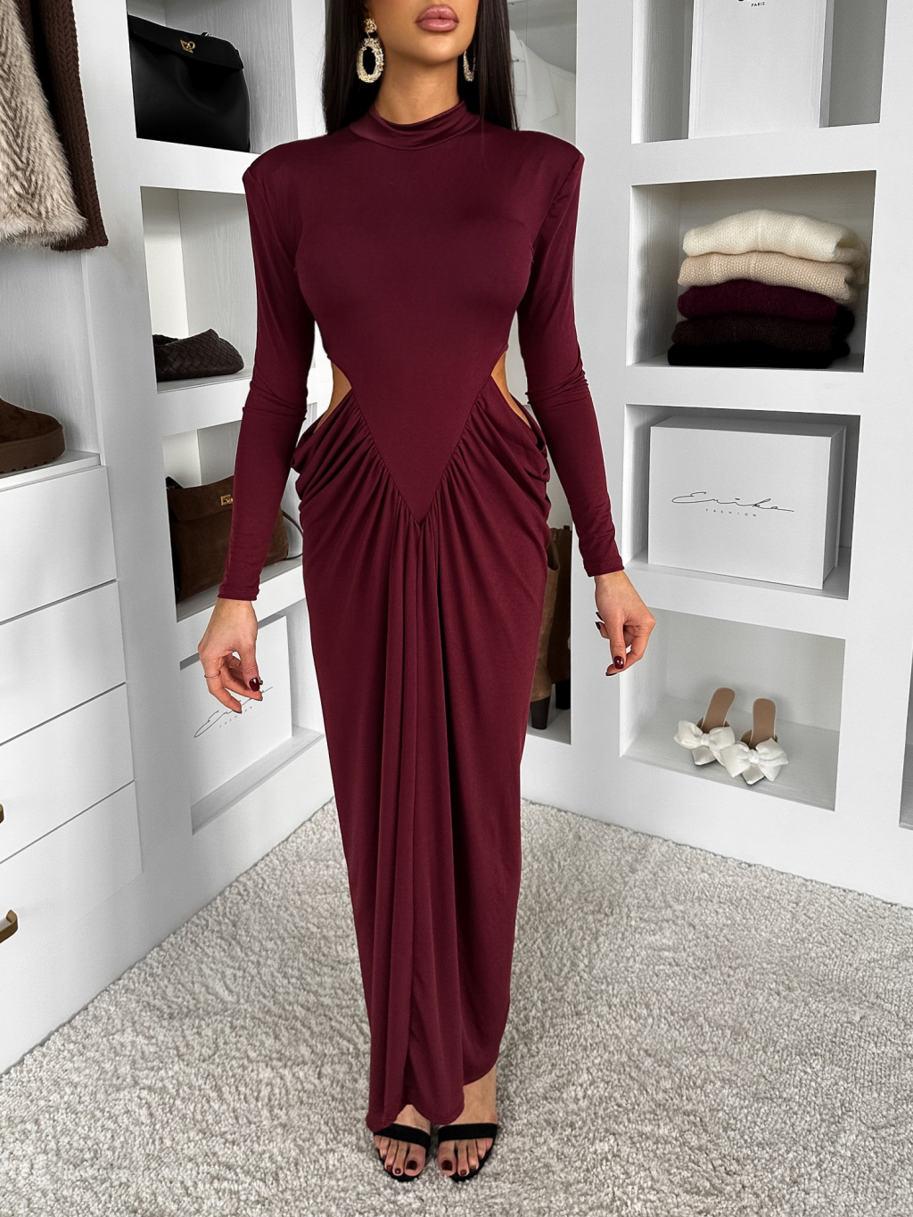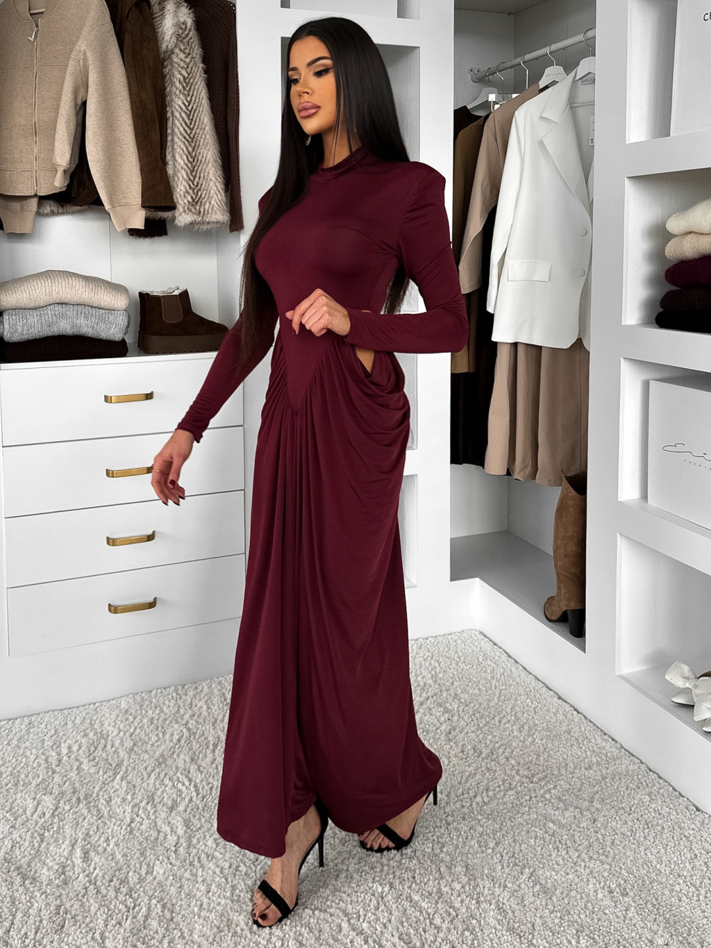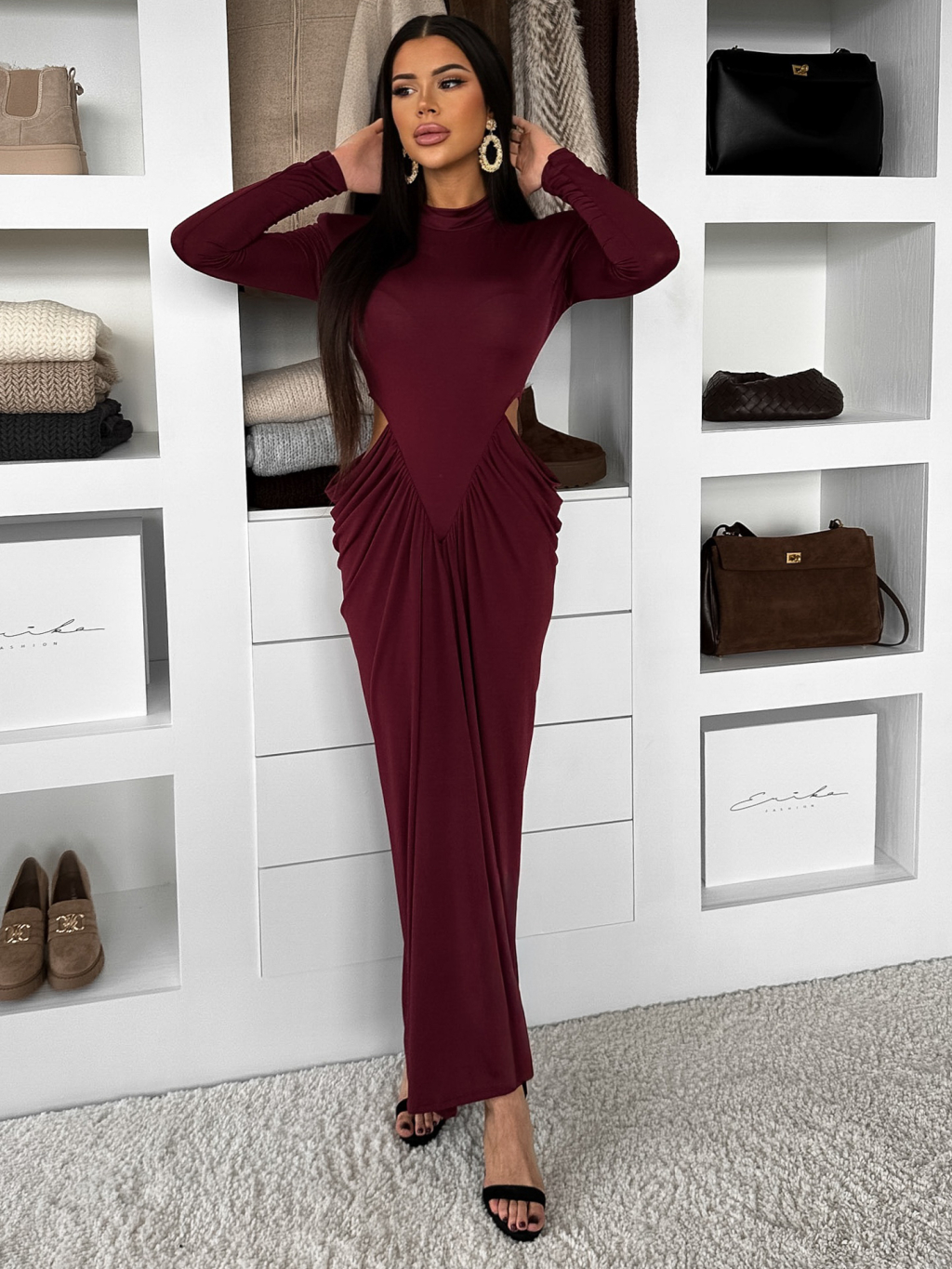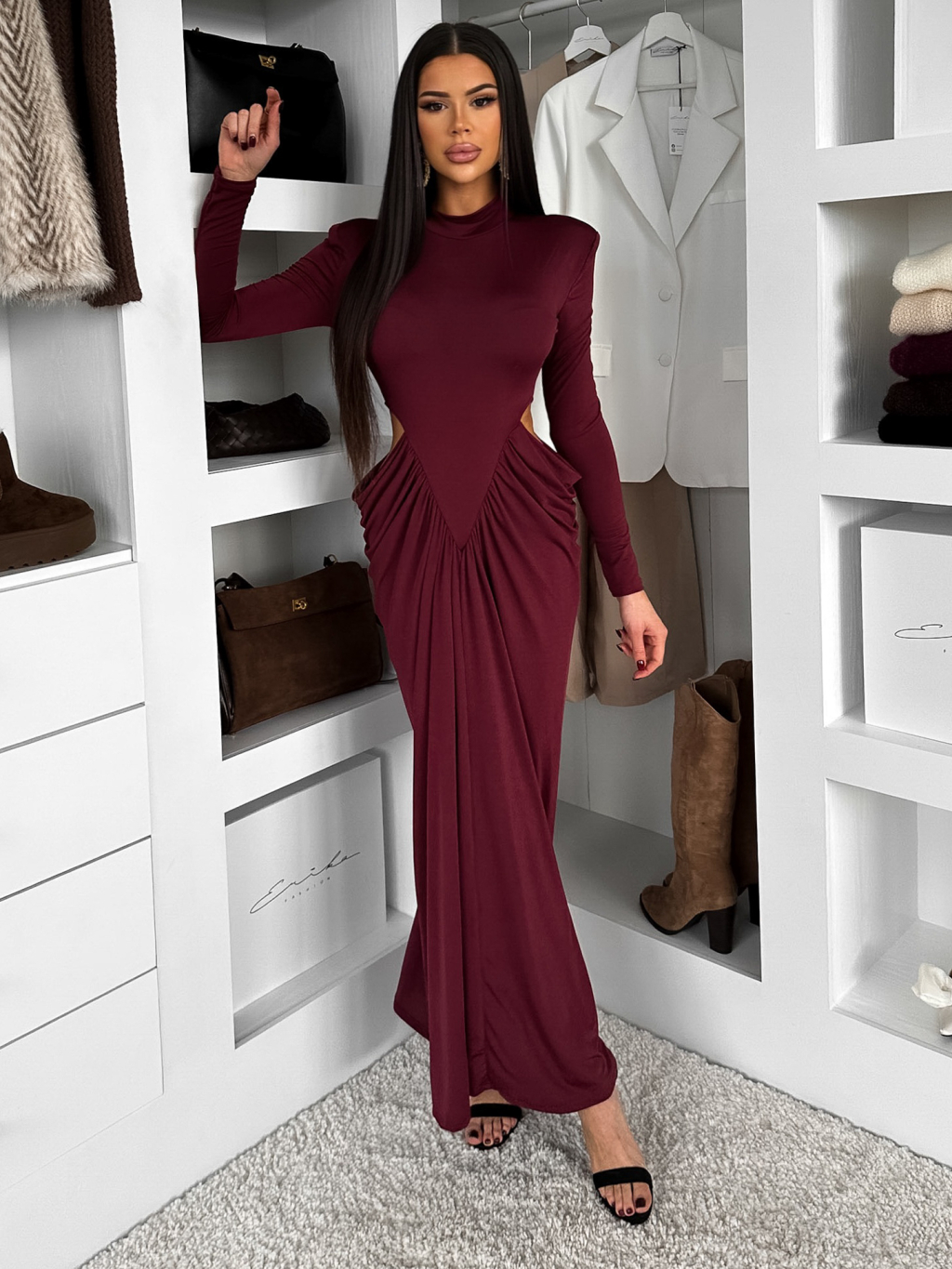 Vínové spoločenské dlhé šaty ESTAVION s prestrihmi