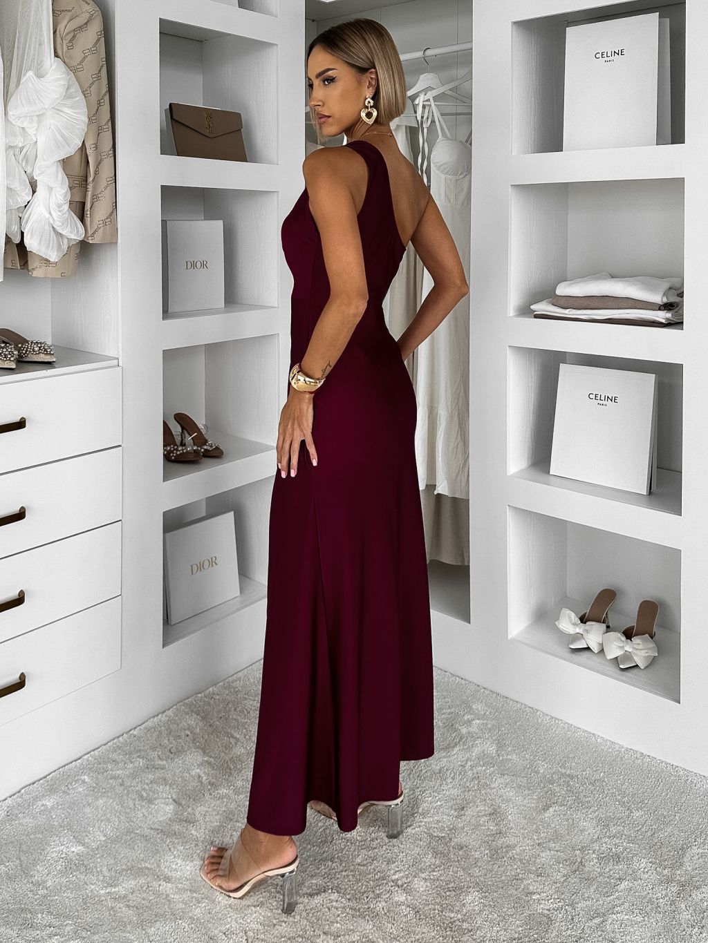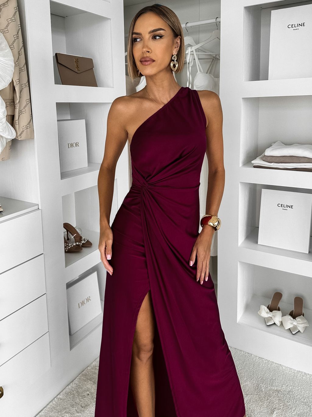 Vínové spoločenské dlhé šaty FIAMMAR s rázporkom
