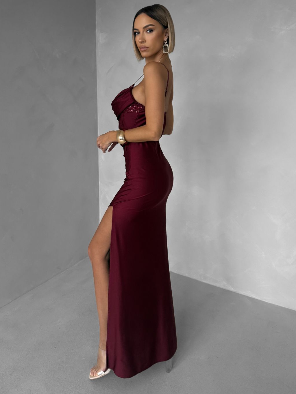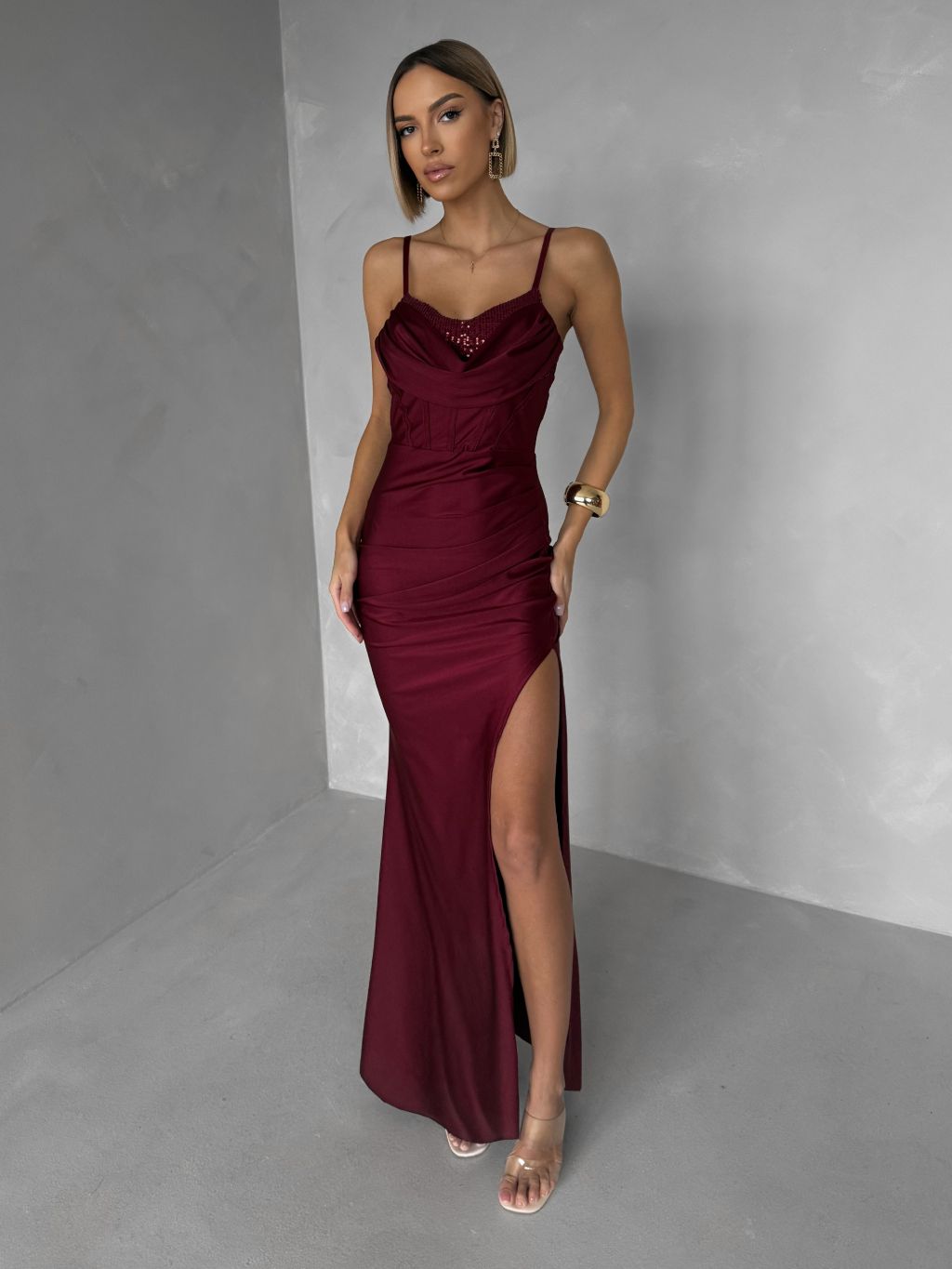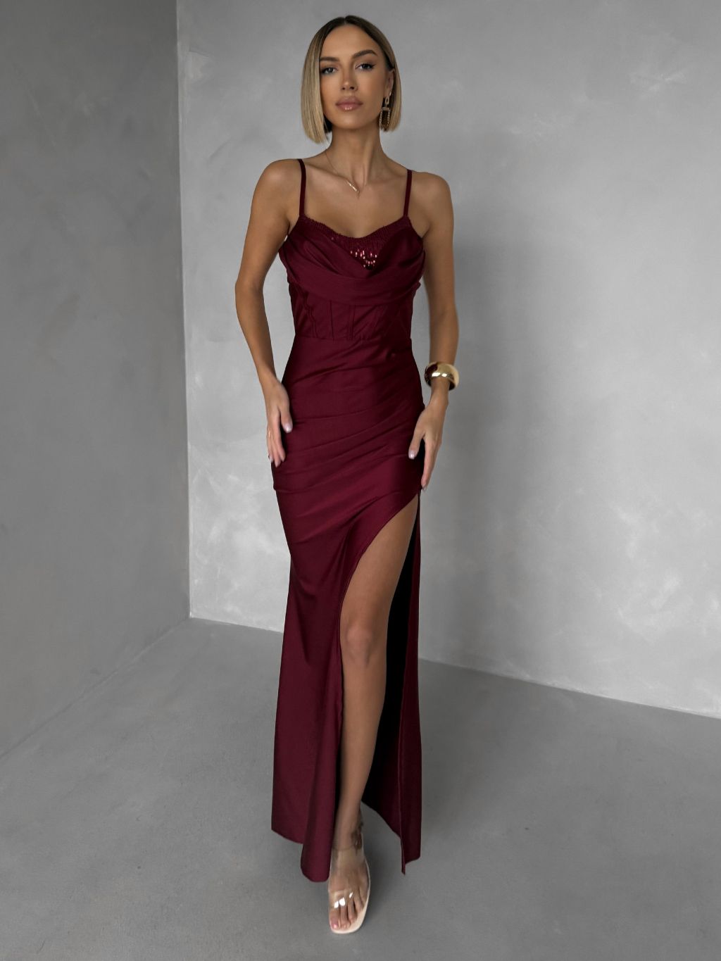 Vínové spoločenské korzetové dlhé šaty FAYELA